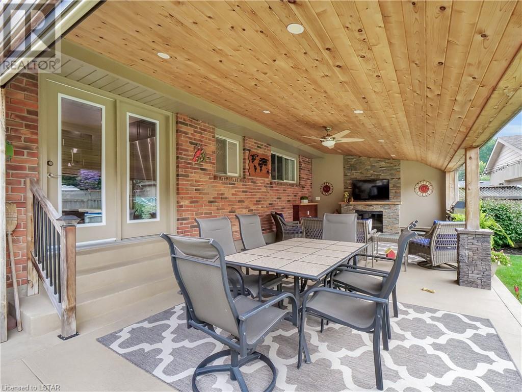 Welcome to an exceptional opportunity in the heart of London's tranquil and well-established landscaped neighbourhood of Ridgeview Heights in Northeast London. This captivating 4-bedroom, 2-bathroom home offers over 2,100 square feet of gracious living space, enveloping you in a warm and welcoming ambiance characterized by dark laminate flooring and rich, dark wood cabinetry. On the main floor, you'll find three generously sized bedrooms and a stunning kitchen, thoughtfully designed with ample cooking and storage space. Venturing to the lower level, you'll discover a fourth bedroom, an additional bathroom, and a cozy rec room, with an electric fireplace for added comfort and charm. The outdoor space is a true retreat, with a meticulously landscaped yard and a covered porch area with an electric fireplace that beckons those who relish time spent in the open air. Enjoy the pleasure of the above-ground pool, complete with a gas heater. The BBQ is thoughtfully included. Outdoor Shed is heated. Conveniently located near amenities, stores, Fanshawe College, UWO, and the University Hospital, this property offers the perfect blend of comfort and convenience. Don't miss this unique opportunity and make 467 Briarhill Ave your new haven today! (id:22211)