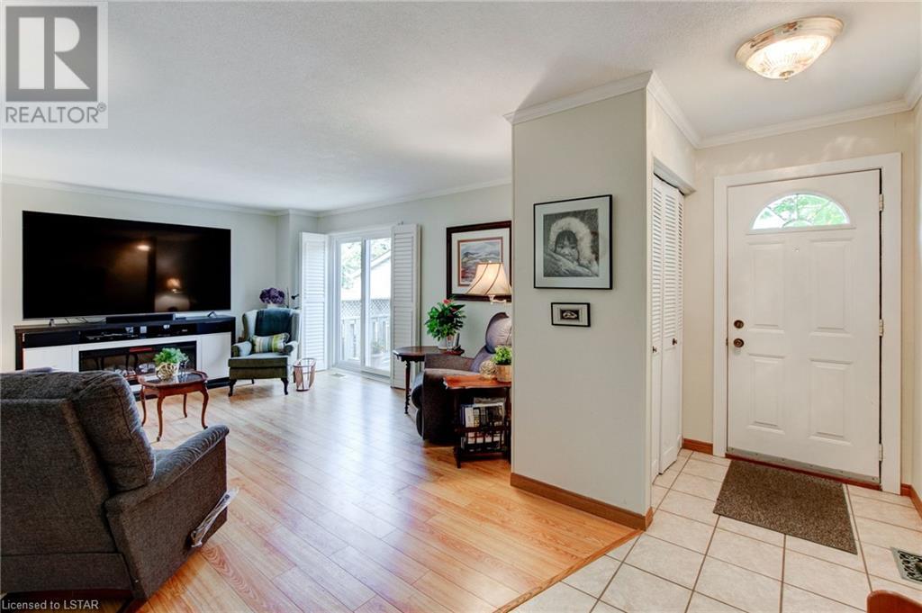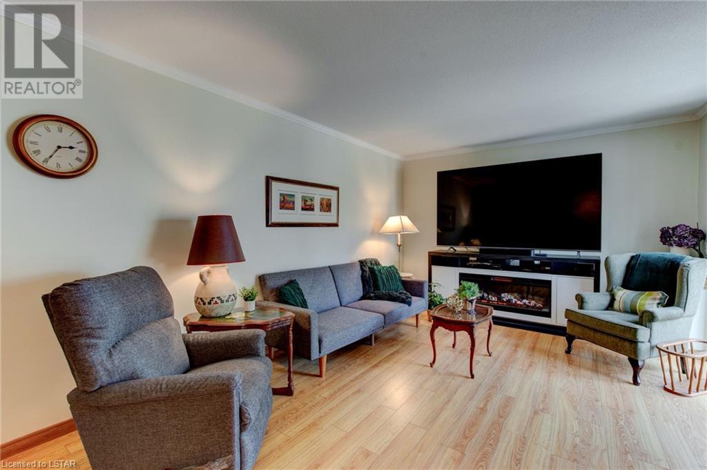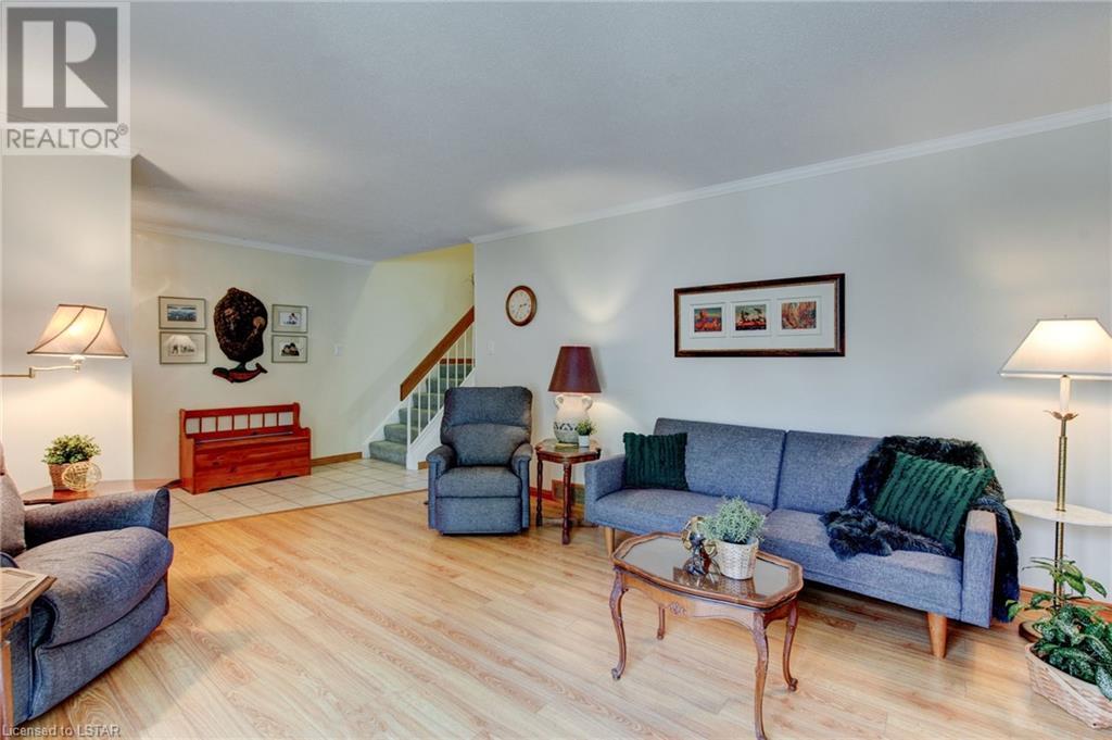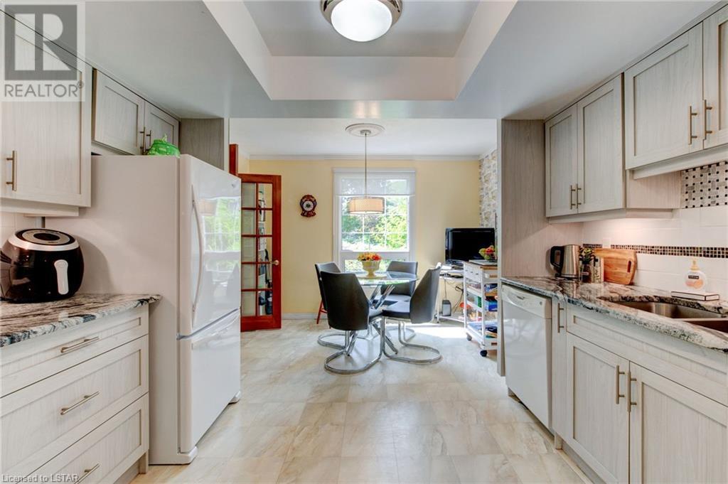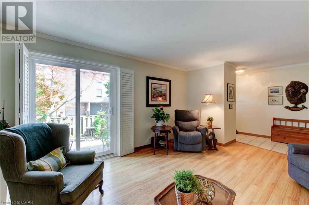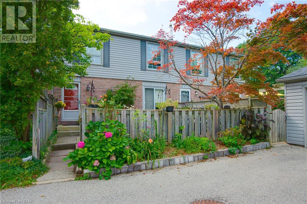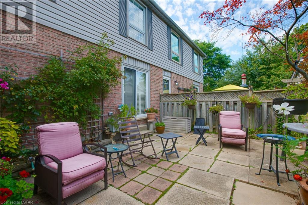 Looking for just the right home to get your family into the market? This outstanding west-end townhome is ready to welcome a new family. Located in a mature, well-maintained community in prestigeous Oakridge, this home has a great layout that’s perfect for busy families. The main level includes a warm, welcoming living room with patio door access and lots of natural light. It also offers a large formal dining room (again, tons of light!) and an awesome, cozy breakfast nook for everyday meals. The updated kitchen includes well-designed storage space in clean, modern cabinets, all framed by a stylish tile backsplash. Upstairs provides three large bedrooms, including an expansive primary with Canadian oak hardwood (2021), double closets and cheater access to an updated 3 piece main bath with large walk-in shower. The lower level has been finished with a great rec room with corner fireplace, another 3 piece bath, and a storage room/workshop with workbench included and a separate utility/laundry room. There’s more to love outside: You have walkout access to a front patio as well as rear greenspace, and an oversized detached single garage. Functional updates abound: electrical panel and electrical switches/receptacles (2023), furnace (2022), plus newer kitchen stove (2022) and fridge (2020). This home is in a sought-after neighbourhood close to parks, schools, trails, and golf at Thames Valley Golf Course. Shopping, services, and restaurants are all close at hand thanks to quick access to Hyde Park and easy access to the Wonderland South corridor. Come enjoy the cul de sac annual gathering as you meet your new neighbours. (id:22211)