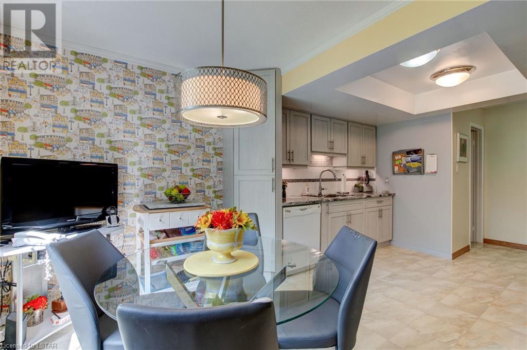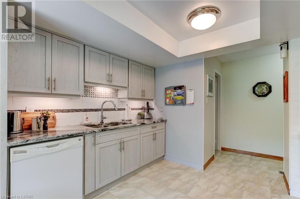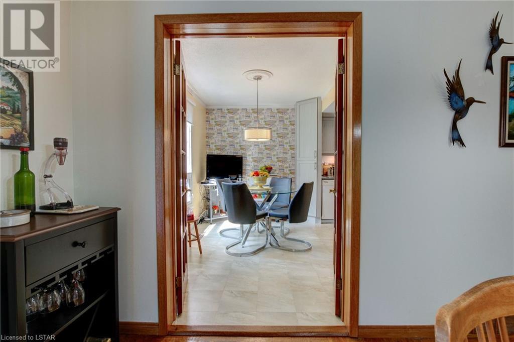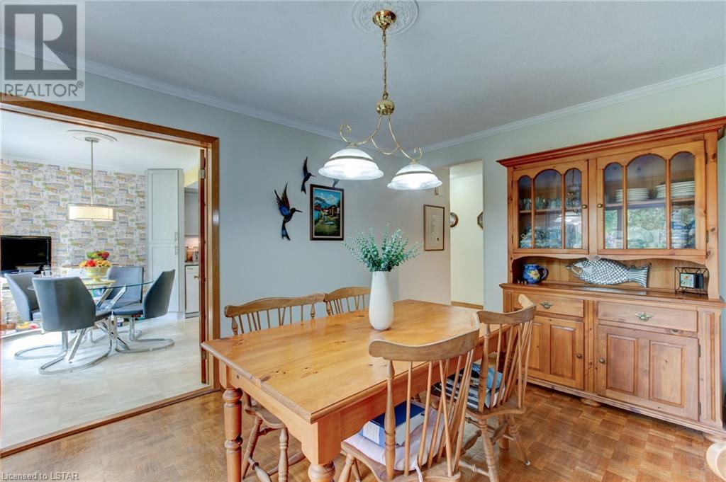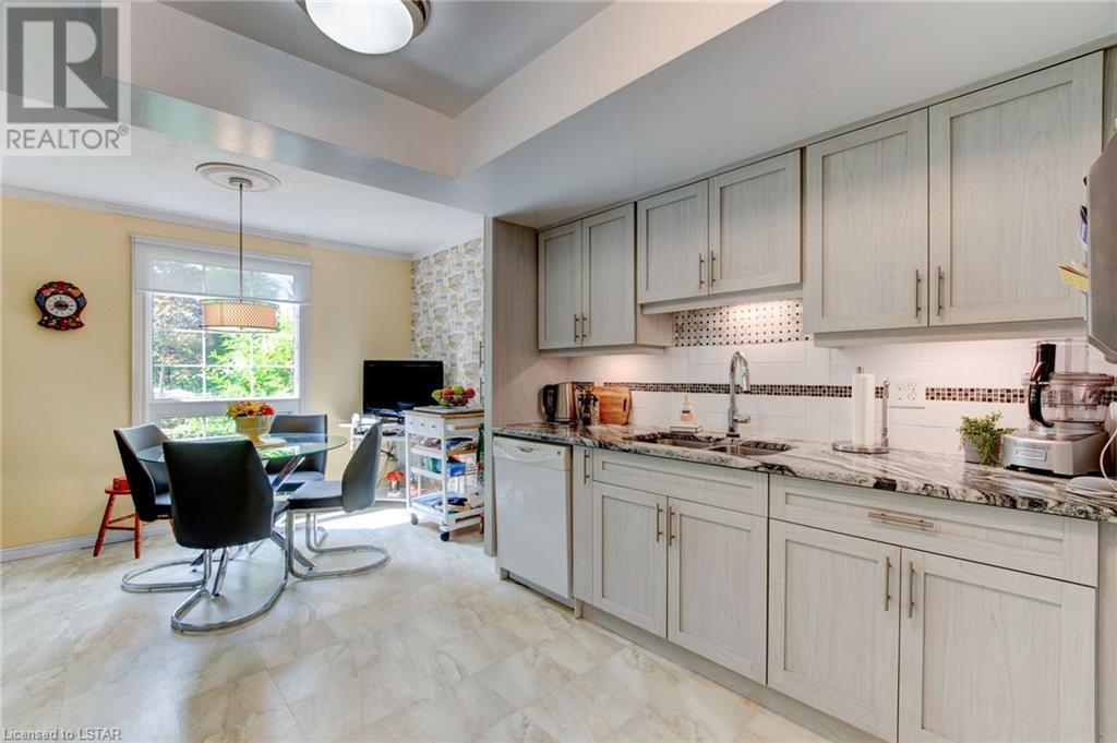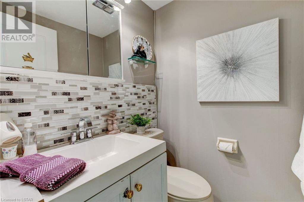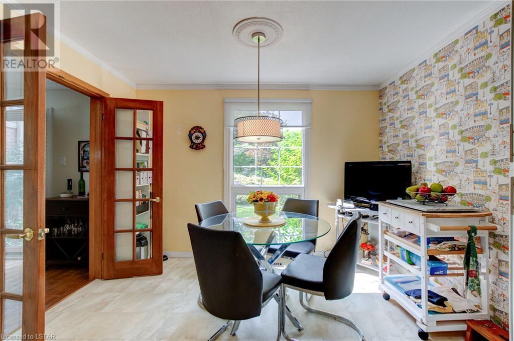 Looking for just the right home to get your family into the market? This outstanding west-end townhome is ready to welcome a new family. Located in a mature, well-maintained community in prestigeous Oakridge, this home has a great layout that’s perfect for busy families. The main level includes a warm, welcoming living room with patio door access and lots of natural light. It also offers a large formal dining room (again, tons of light!) and an awesome, cozy breakfast nook for everyday meals. The updated kitchen includes well-designed storage space in clean, modern cabinets, all framed by a stylish tile backsplash. Upstairs provides three large bedrooms, including an expansive primary with Canadian oak hardwood (2021), double closets and cheater access to an updated 3 piece main bath with large walk-in shower. The lower level has been finished with a great rec room with corner fireplace, another 3 piece bath, and a storage room/workshop with workbench included and a separate utility/laundry room. There’s more to love outside: You have walkout access to a front patio as well as rear greenspace, and an oversized detached single garage. Functional updates abound: electrical panel and electrical switches/receptacles (2023), furnace (2022), plus newer kitchen stove (2022) and fridge (2020). This home is in a sought-after neighbourhood close to parks, schools, trails, and golf at Thames Valley Golf Course. Shopping, services, and restaurants are all close at hand thanks to quick access to Hyde Park and easy access to the Wonderland South corridor. Come enjoy the cul de sac annual gathering as you meet your new neighbours. (id:22211)