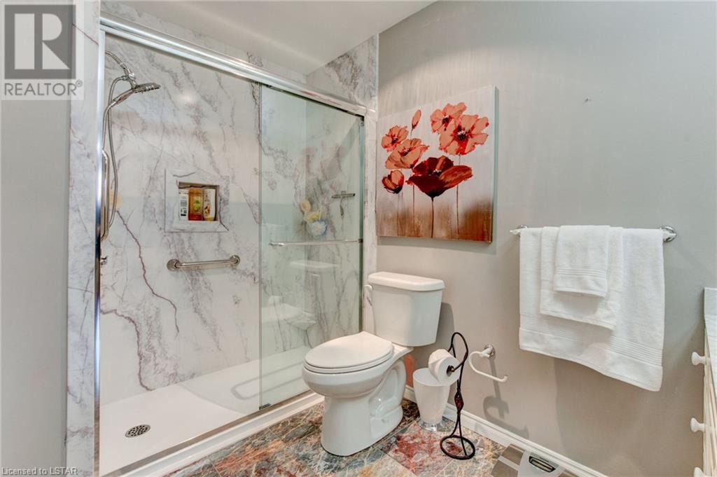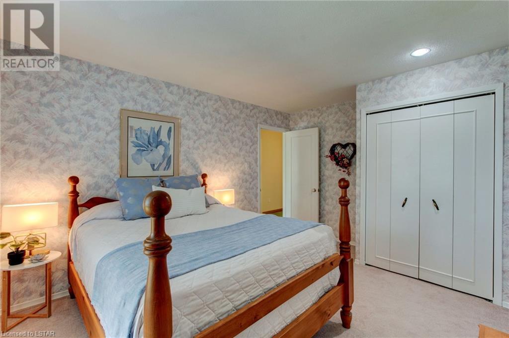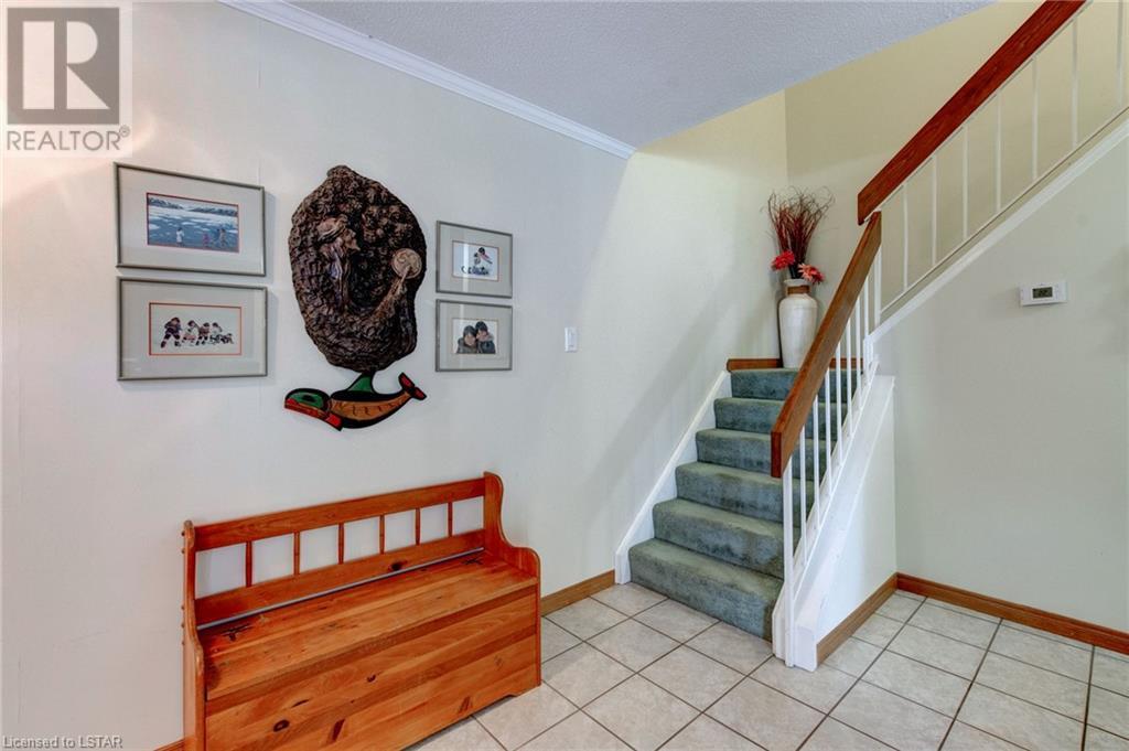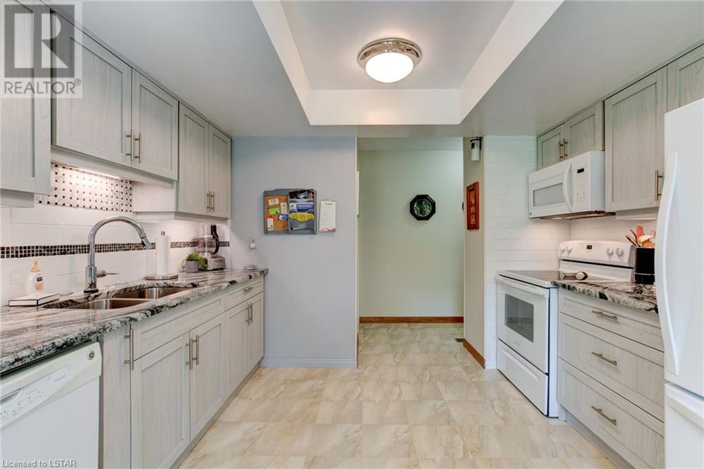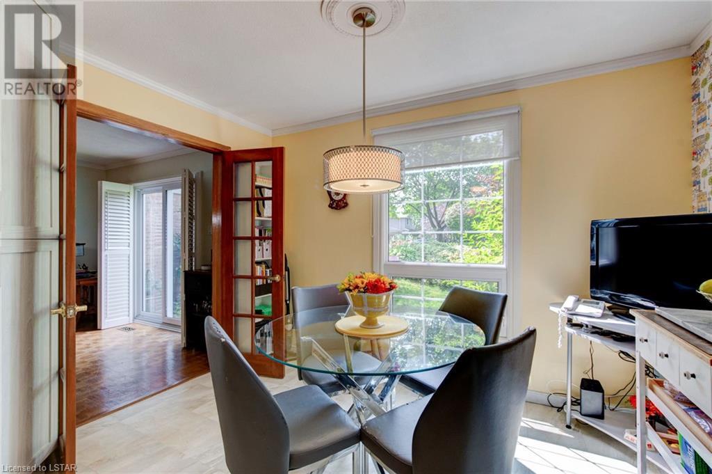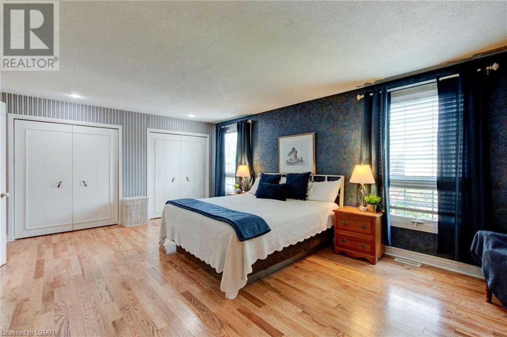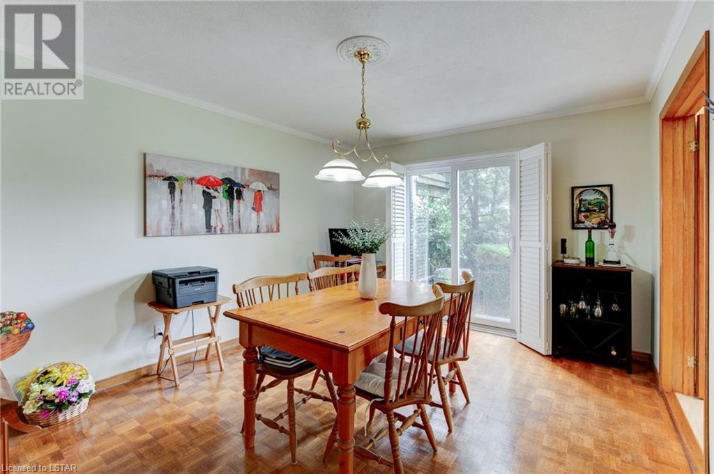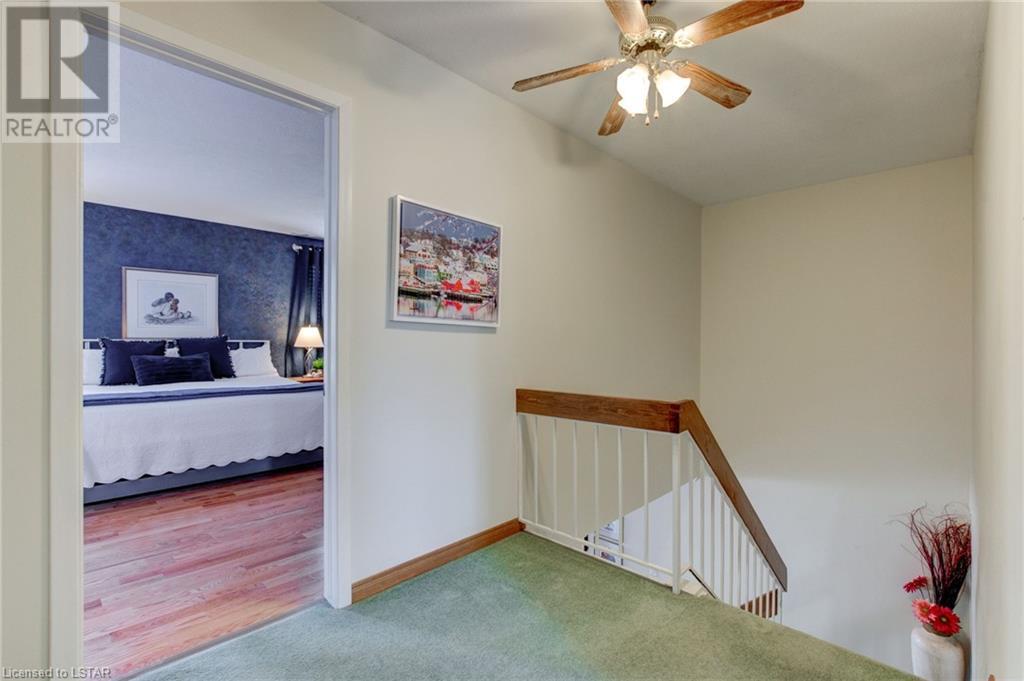 Looking for just the right home to get your family into the market? This outstanding west-end townhome is ready to welcome a new family. Located in a mature, well-maintained community in prestigeous Oakridge, this home has a great layout that’s perfect for busy families. The main level includes a warm, welcoming living room with patio door access and lots of natural light. It also offers a large formal dining room (again, tons of light!) and an awesome, cozy breakfast nook for everyday meals. The updated kitchen includes well-designed storage space in clean, modern cabinets, all framed by a stylish tile backsplash. Upstairs provides three large bedrooms, including an expansive primary with Canadian oak hardwood (2021), double closets and cheater access to an updated 3 piece main bath with large walk-in shower. The lower level has been finished with a great rec room with corner fireplace, another 3 piece bath, and a storage room/workshop with workbench included and a separate utility/laundry room. There’s more to love outside: You have walkout access to a front patio as well as rear greenspace, and an oversized detached single garage. Functional updates abound: electrical panel and electrical switches/receptacles (2023), furnace (2022), plus newer kitchen stove (2022) and fridge (2020). This home is in a sought-after neighbourhood close to parks, schools, trails, and golf at Thames Valley Golf Course. Shopping, services, and restaurants are all close at hand thanks to quick access to Hyde Park and easy access to the Wonderland South corridor. Come enjoy the cul de sac annual gathering as you meet your new neighbours. (id:22211)
