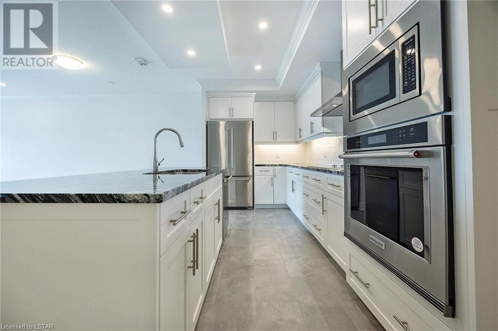 Absolutely gorgeous 2+1 bedroom in most recent TriCar building next to Sunningdale Golf and Country Club. Absolutely no expense sparred in this building and more importantly this particular unit. Features include 2 full bedrooms with a separate den and loads of privacy for everyone. Open concept upgraded kitchen with full appliances including stove oven dishwasher and microwave along with stainless steel side by side fridge overlooking dining area and great room and fireplace with leading double doors to glassed terrace with relaxing space for those evening sunsets, 2 full baths ensuite includes separate shower double sink and soaker tub. The amenities of this building are out of this world. They include a golf simulator, entertainment room for those large events, guest suites for overnight guests, well equipped gym, billiards room and outdoor tennis courts with ample visitor parking. Underground parking includes 2 oversized spaces side by each parking spots 26 and 27. This condo unit will not disappoint!!! (id:22211)