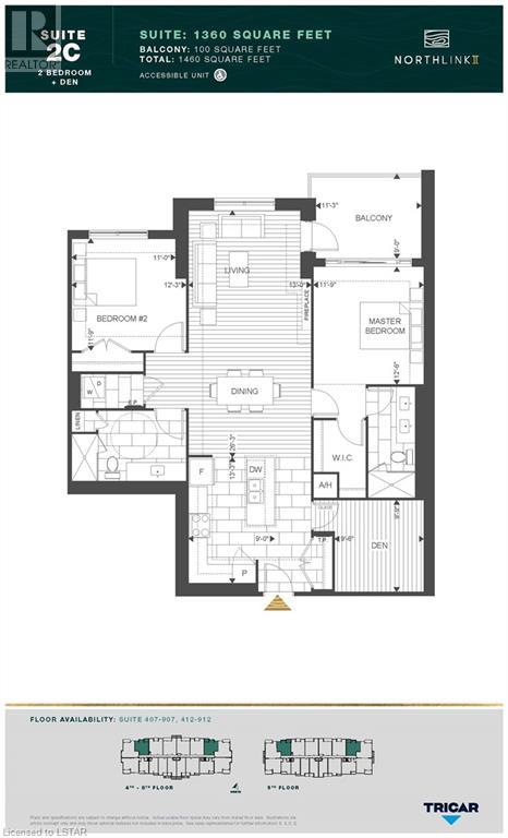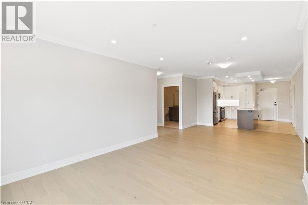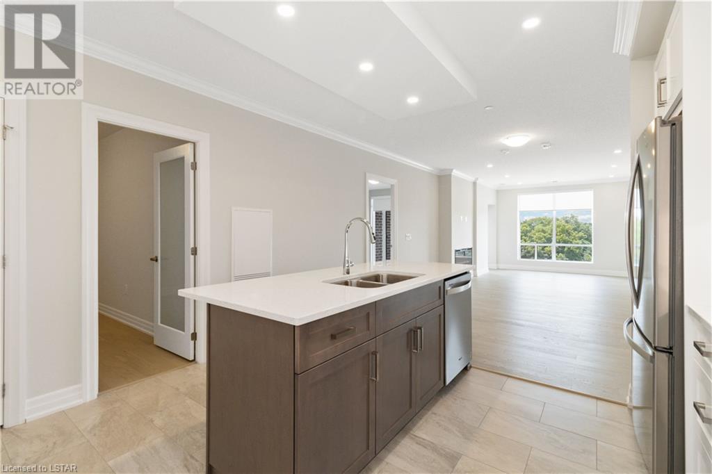 This Brand New N facing, 5th Floor Northlink 2 Condo offers 1460 Sq/ft of living space in 2 BEDROOMS + DEN, 2 bathrooms, 2 car spots and a X Large locker and features one of the best layouts being wheelchair accessible while boasting views on Sunningdale Golf and Country club. As you enter, the upgrades are evident from the onset, with oak flooring run throughout the main living areas. An upgraded Kitchen with Quartz Counters and white cabinetry, Stainless Steel Appliances, and a large island provides a great space to eat/entertain. A large dining space comfortably sits a table for 6 people. 2 large bedrooms and a dedicated den or 3rd bedroom/nursery, This unit also has a true walk-in laundry room with ample storage (not a closet). Enjoy the state-of-the-art amenities on the main floor including fitness room, residential lounge, dining room, golf simulator, sport court and guest suite. Condo fees cover water, heat and AC and internet. This prime location is near to all that Masonville has to offer, and the Building catchment allows for access to top schools and Western. This unit is truly not to be missed. (id:22211)