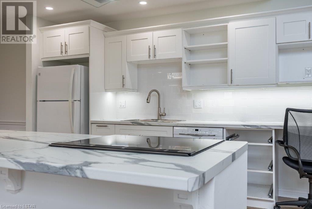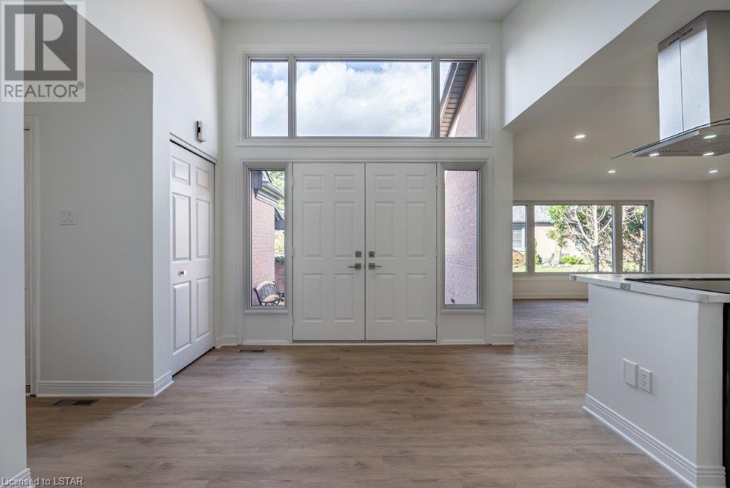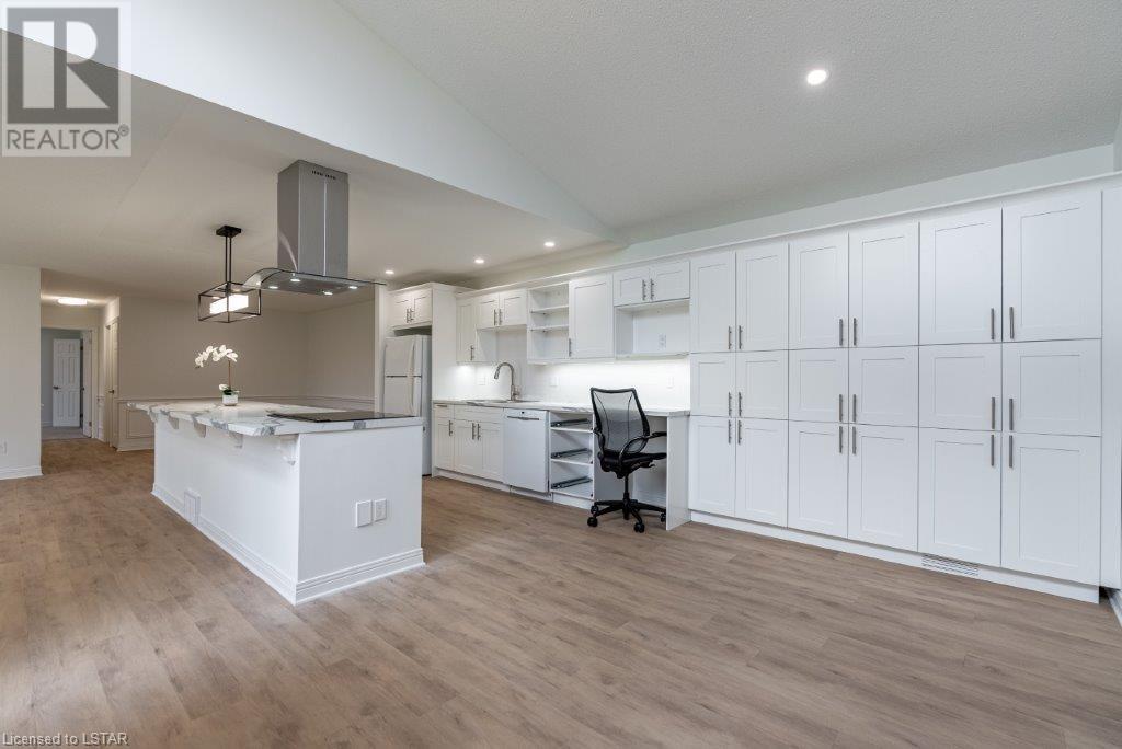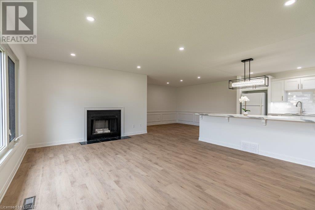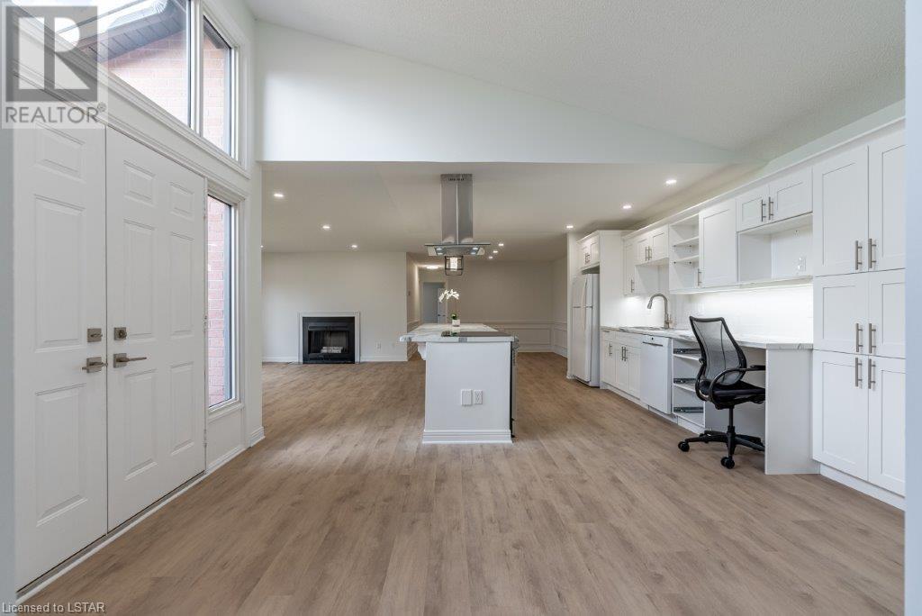 Just move in and enjoy this totally renovated condo in one of the most sought-after condo corporations in London. This is one of the largest floor plans, 1587 sq ft on the main floor. It has been totally renovated. The kitchen features a huge island ideal for entertaining, new appliances, and loads of cupboards. Large dining/living room with wood fireplace for cozy winter nights. The main floor office/den is ideal for anyone who works from home or just wants a private space. The master bedroom has a large walk-in closet that could be turned into main floor laundry. The updated ensuite is sure to please. The second bedroom makes a great guest room and is directly across from the main bathroom. The unfinished basement has 2 egress windows so could be 2 more legal bedrooms if needed. The lovely courtyard is great for relaxing in the summer. Large 2 car garage with inside entry. This is a lovely condo and close to Remark, Shopper’s Drug Mart, The Super Store and many more shops. Close to Springbank Park and Sifton Bog. Don’t miss this opportunity to live in one of the best condo complexes in the city. (id:22211)