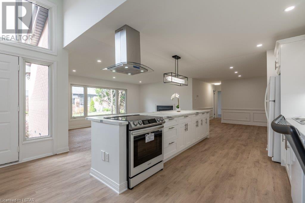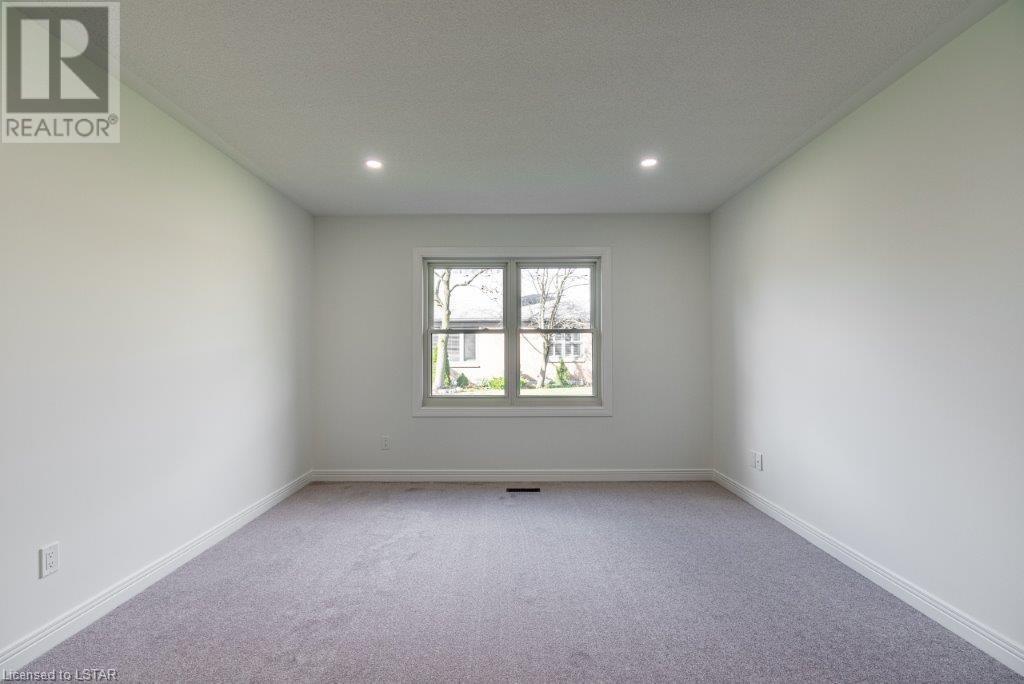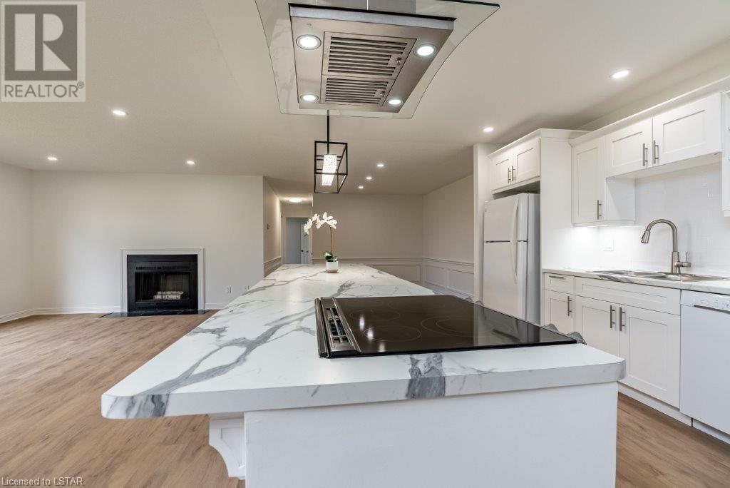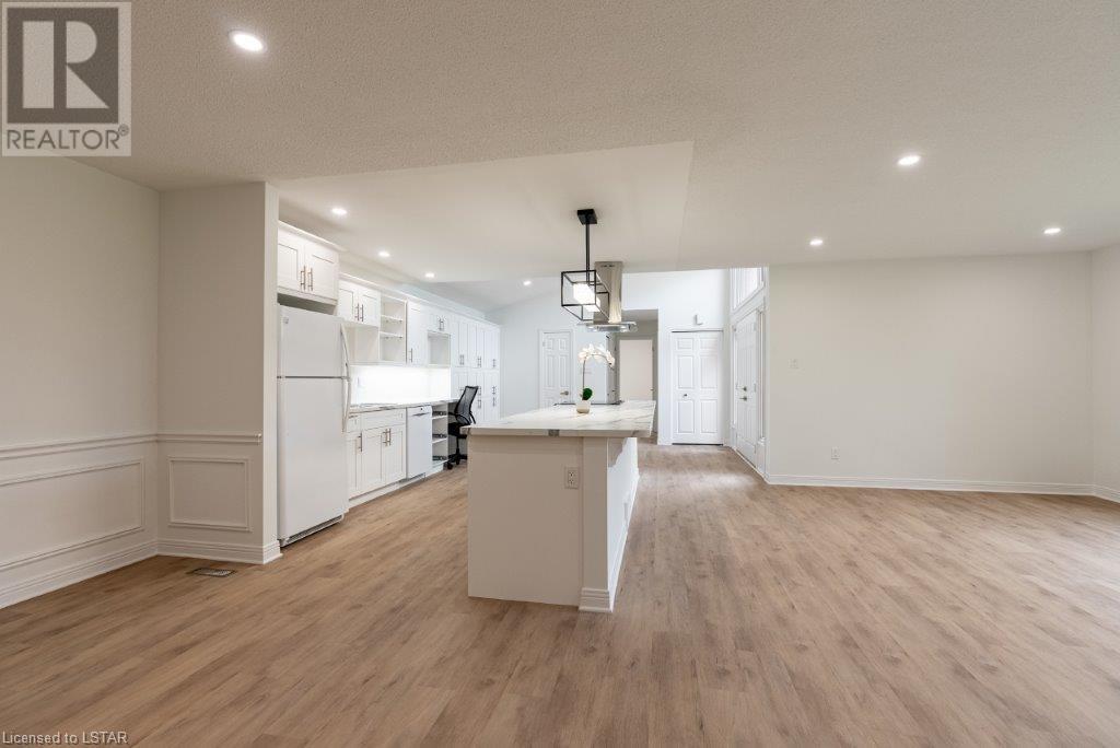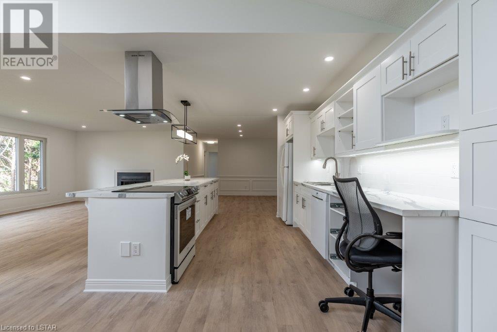 Just move in and enjoy this totally renovated condo in one of the most sought-after condo corporations in London. This is one of the largest floor plans, 1587 sq ft on the main floor. It has been totally renovated. The kitchen features a huge island ideal for entertaining, new appliances, and loads of cupboards. Large dining/living room with wood fireplace for cozy winter nights. The main floor office/den is ideal for anyone who works from home or just wants a private space. The master bedroom has a large walk-in closet that could be turned into main floor laundry. The updated ensuite is sure to please. The second bedroom makes a great guest room and is directly across from the main bathroom. The unfinished basement has 2 egress windows so could be 2 more legal bedrooms if needed. The lovely courtyard is great for relaxing in the summer. Large 2 car garage with inside entry. This is a lovely condo and close to Remark, Shopper’s Drug Mart, The Super Store and many more shops. Close to Springbank Park and Sifton Bog. Don’t miss this opportunity to live in one of the best condo complexes in the city. (id:22211)