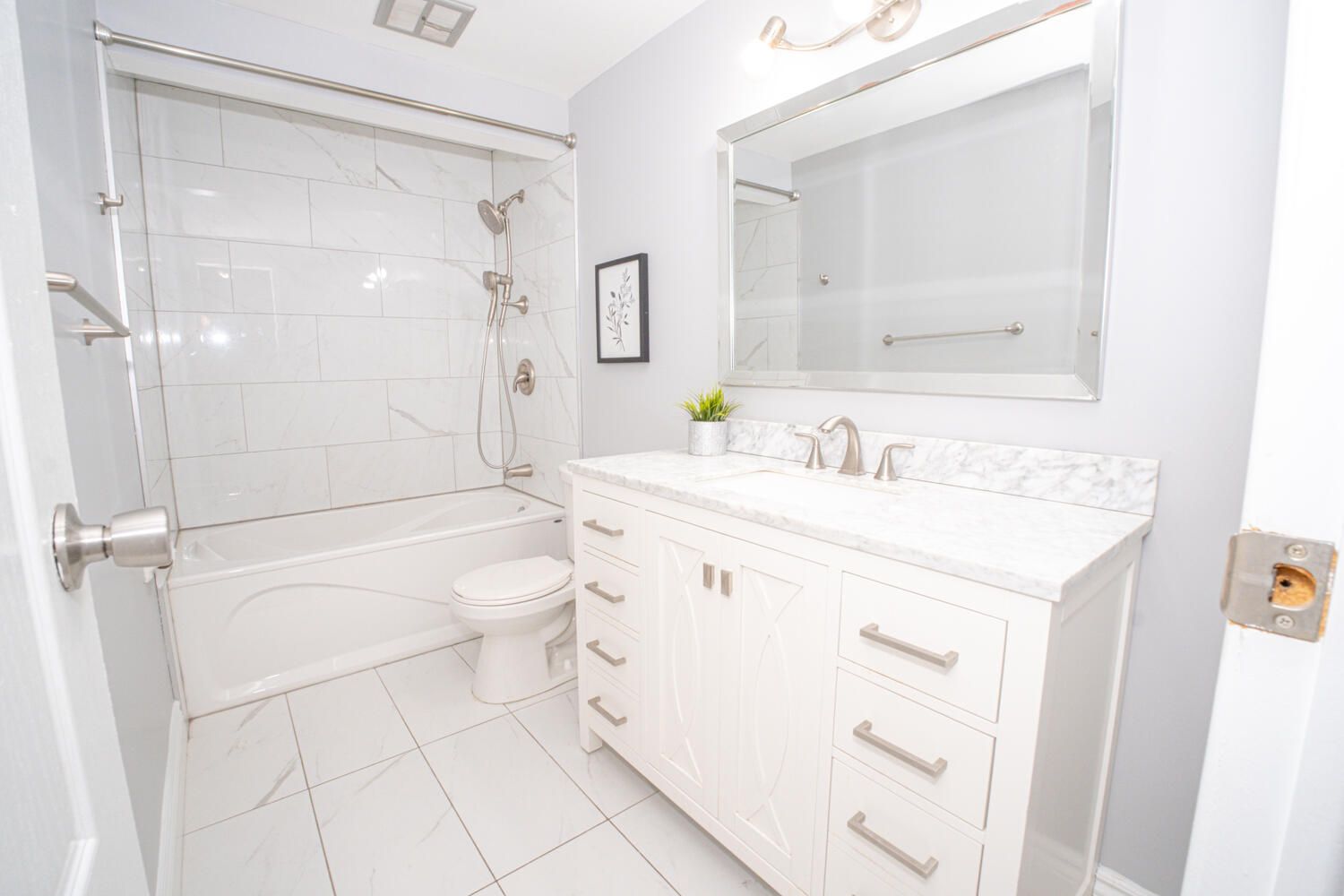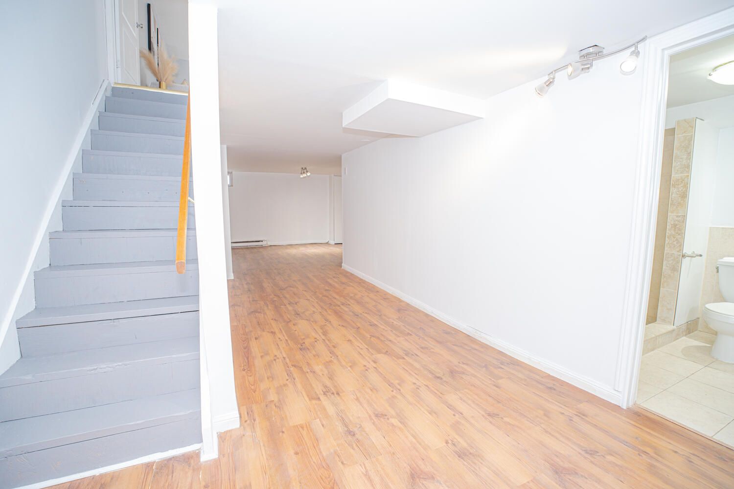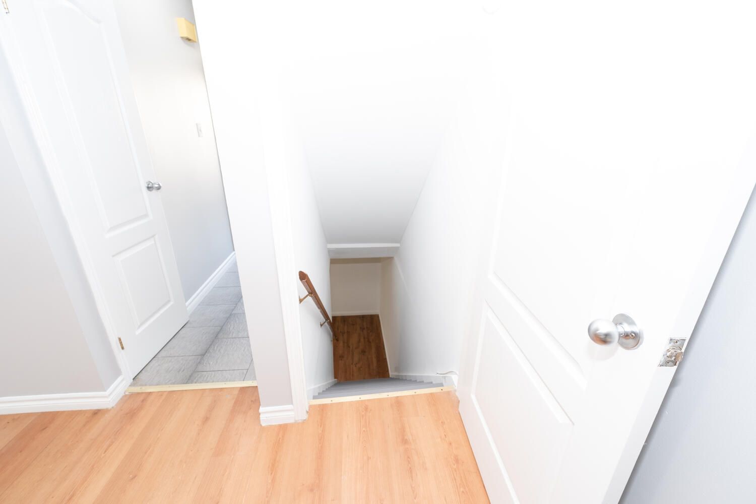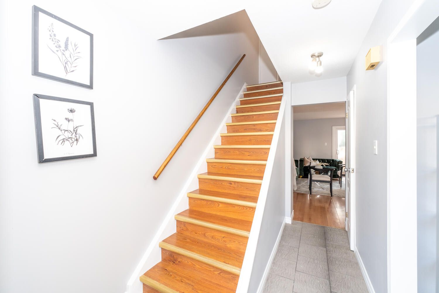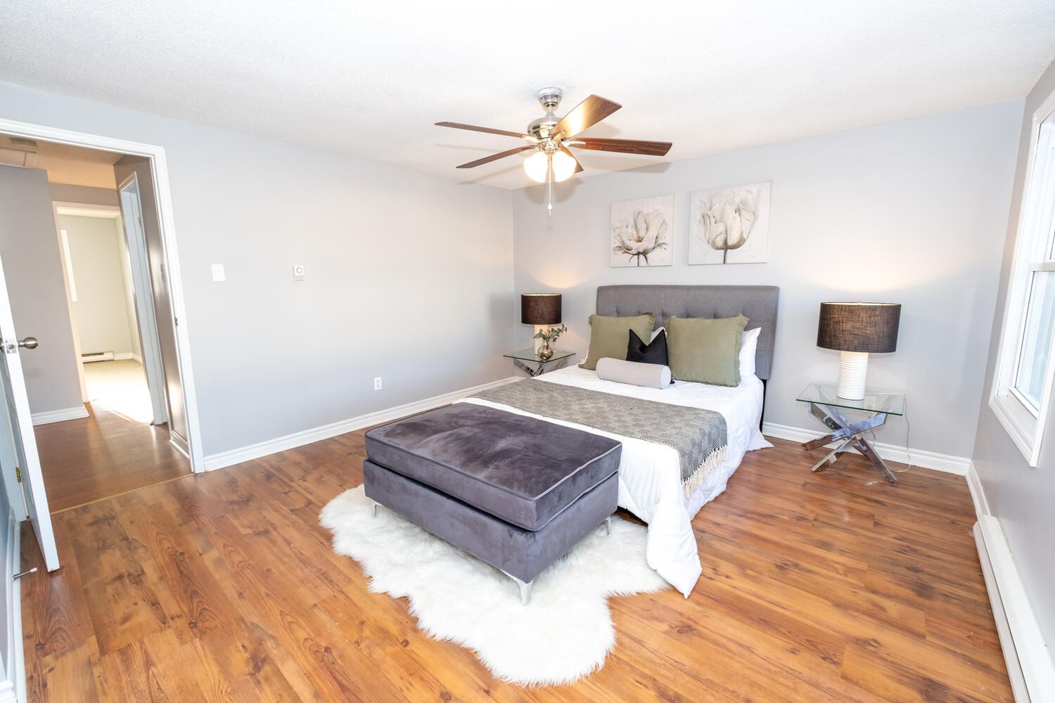 This attractive 3-bedroom, 3-bathroom townhouse is situated in the desirable White Oaks neighbourhood. It offers a low monthly condo fee , making it an excellent choice for first-time homeowners, professionals, or investors. The residence boasts an updated kitchen with a new quartz countertop, a double sink, and a brand-new, unused cooking range and dishwasher (2024). The laundry appliances (2022), refrigerator (2022), and completely renovated bathrooms with large, high-quality vanities are part of the recent upgrades. The open-plan living and dining areas have been newly painted. This unit features 3 ample bedrooms and is unique with its 2.5 bathrooms. The finished basement provides an ideal space for family entertainment, and the private, fenced backyard is perfect for morning relaxation. Additionally, there is a green space behind the property for tranquil strolls. Its prime location is within walking distance to White Oaks Mall, the library, community center, and bus routes, plus it's just a short drive to the 401.