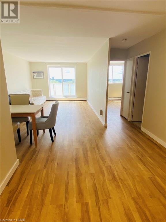 Attention: First Time Homebuyers and Investors!!! Check out this Penthouse suite on the top floor, with amazing views of the city and downtown area! Located close to shopping centres, Fanshawe College, schools and bus transit and is in a safe and convenient location in London. This spacious 1 bedroom apartment comes fully furnished and is perfect for young couples or investors looking for an easy to rent, condo. Updated vinyl flooring, painted and clean unit, ready for its new owners. Condo fees include hydro, heat, water, parking, building and land maintenance and insurance. The Condo Corp. will do all of the exterior maintenance, repairs and upgrades! All you have to do is enjoy! (id:22211)