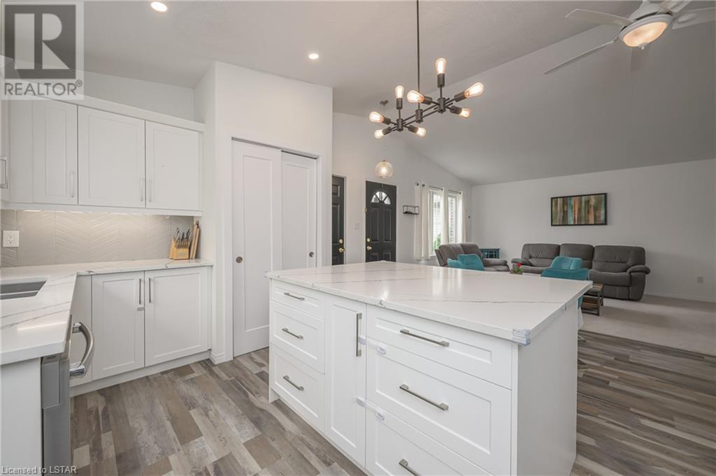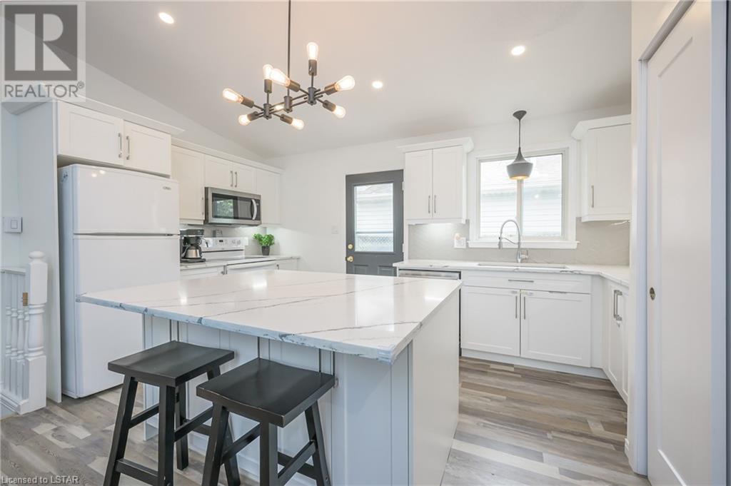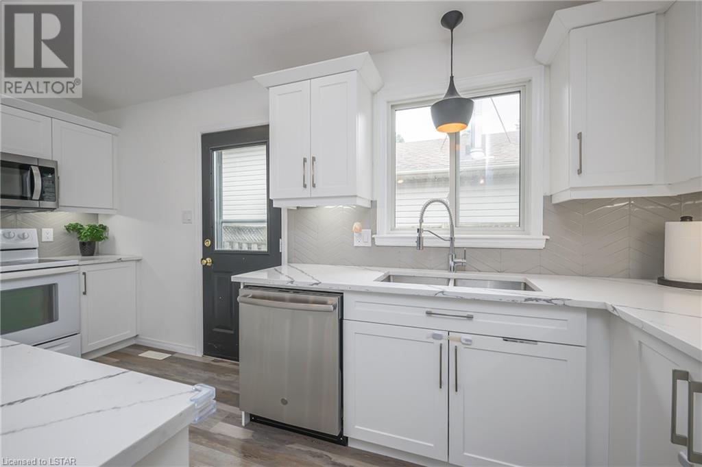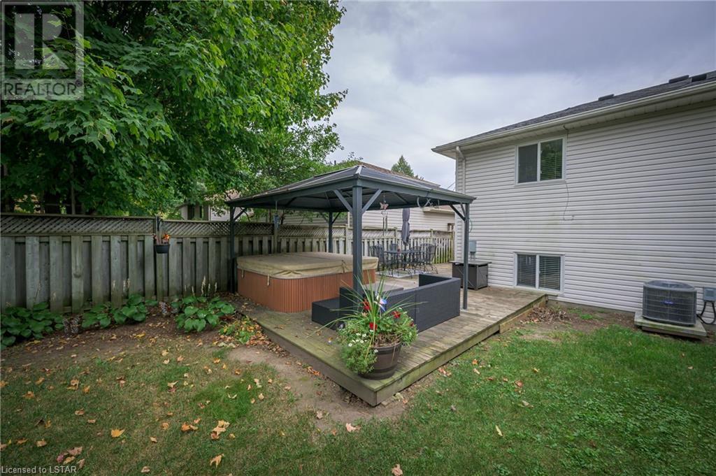 598 Talltree Crescent is found in the Trafalgar Heights neighbourhood with close proximity to Argyle Mall, Fanshawe College, and the highway making it an ideal location for students, families and commuters. This beautifully updated backsplit has 4 bedrooms, 2 bathrooms, a family friendly floorplan, private fully fenced backyard (with a hot tub & gazebo) plus an attached double car garage. When you first enter the home, you will fall in love with the cathedral ceiling and open concept main floor that features a newly renovated kitchen (2022) with quartz counter tops, soft close cabinetry, and a large island that flows into your dining and living room area making it the perfect place to gather with friends and family. Upstairs you will find two bedrooms and a full bathroom with an updated vanity (2022). On the lower level there is an additional bedroom and large family room for relaxing, and the basement is complete with another full bathroom and bedroom including a newly installed egress window (2021). Other notable mentions: New A/C (2021), New Furnace (2022), New Hot Tub Motor (2022) & New Garage Door Chain (2023). This home offers so much value, many updates and is in a great location so don't hesitate to plant your roots here at 598 Talltree Crescent! (id:22211)