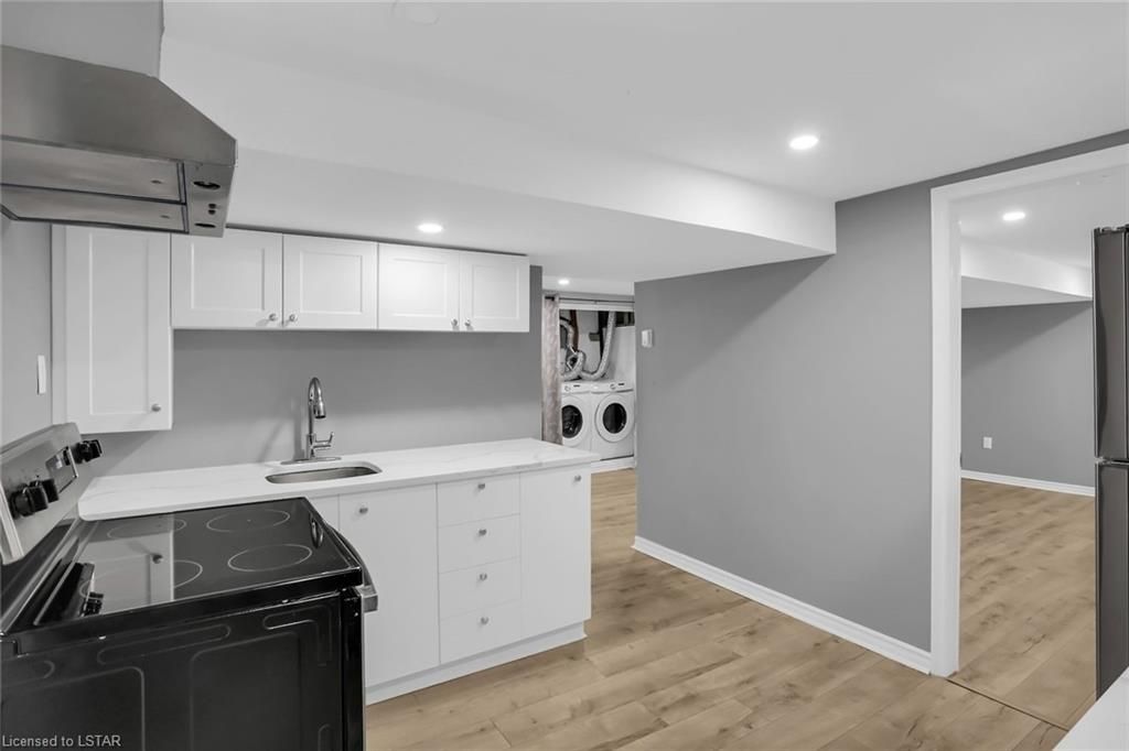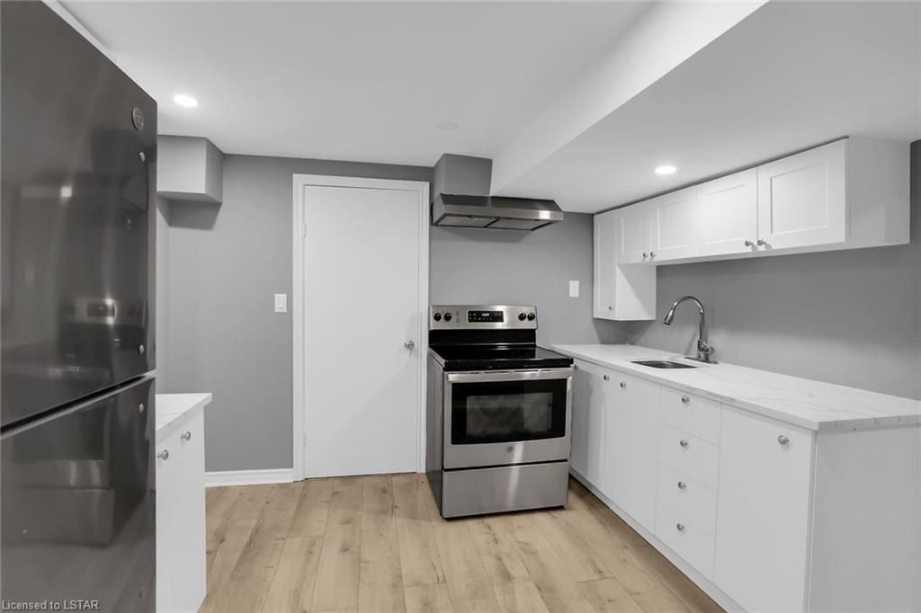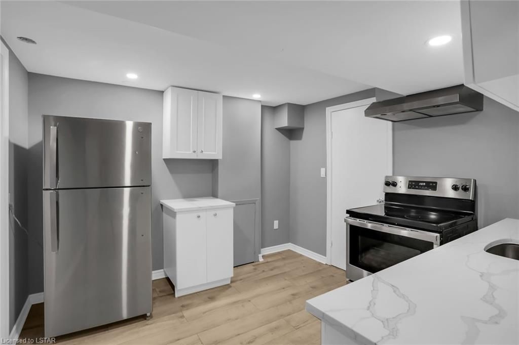This bungalow nestled on a park-like 54x229 ft lot, providing your own private backyard oasis in the heart of the city. This home seamlessly combines modern upgrades with charming ambiance. The inviting covered front porch, overlooking a lovely garden, creates a perfect outdoor space. Inside, the main floor features a bright and spacious living room and dining room. The kitchen has been fully renovated and updated in 2021. You'll find three cozy bedrooms and a four-piece bathroom. The lower floor offers a comfortable living/dining area, a second kitchen, two bedrooms, and a three-piece bathroom. The added convenience of laundry facilities on both floors makes it ideal for an in-law suite. Located close to shopping, amenities, and with quick access to Highway 401, Western University, Fanshawe College, and Downtown London.