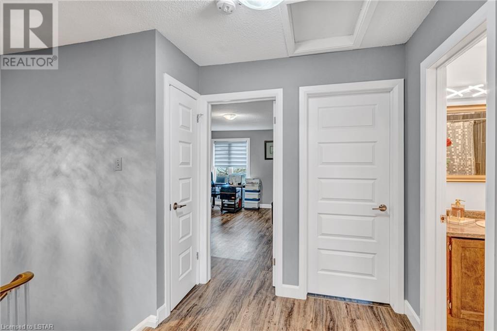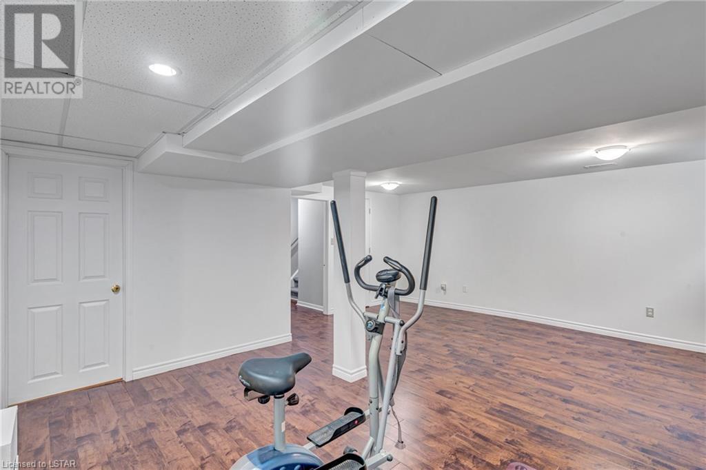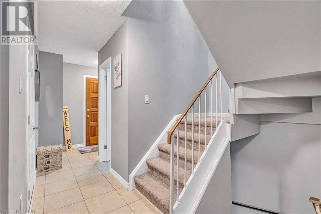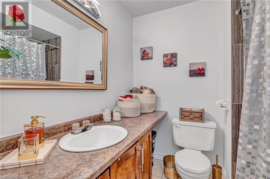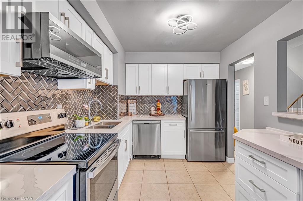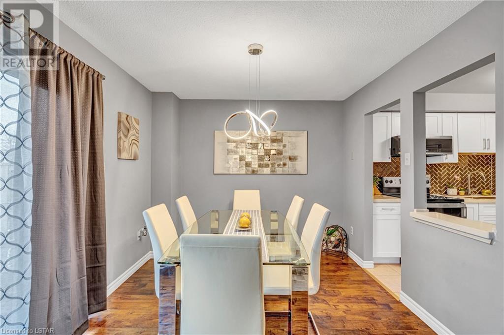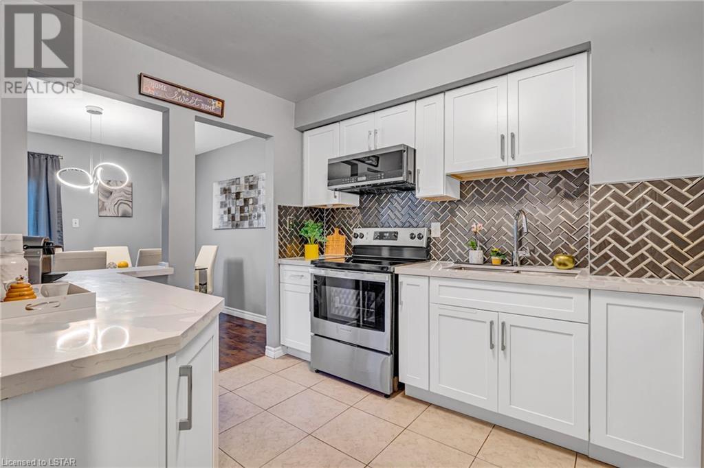 Seeking low-maintenance & balance between space & convenience? Find it in this updated 3 beds, 1 ½ baths townhome in a well managed complex! The open floor plan layout maximizes the available space and creates a seamless flow between the rooms. The kitchen is equipped with modern appliances, ample cabinetry, glass tile backsplash, breakfast bar quartz countertops and extra counter space for meal preparation . Painted throughout with neutral color. Modern lighting. Single car garage with inside entry. Open concept large living room to formal dining with triple patio doors leading the enclosed private patio with interlock stones, providing an outdoor space for relaxation or entertainment, backing to Osgoode drive and exit gate (No neighbors or buildings at back).The second level is a must see with updated 5 panels doors, oversized Master Bedroom with large closet & double patio doors to a 11.5 x 7.6 balcony where you can enjoy a morning or afternoon coffee in this quite complex. Two other bedrooms well-proportioned and a 4 piece bath complete this level. Solid Floors throughout. The finished basement showcases huge open great room that could be set up as 2 different rooms, Den/Exercise area/games room, plus family room, suitable for different family needs. 2 minutes walk to plazas and amenities, close to white oaks mall, walking distance to Westminster Park Optimist Club and Pool, easy access to 401. A true ready to move in! (id:22211)