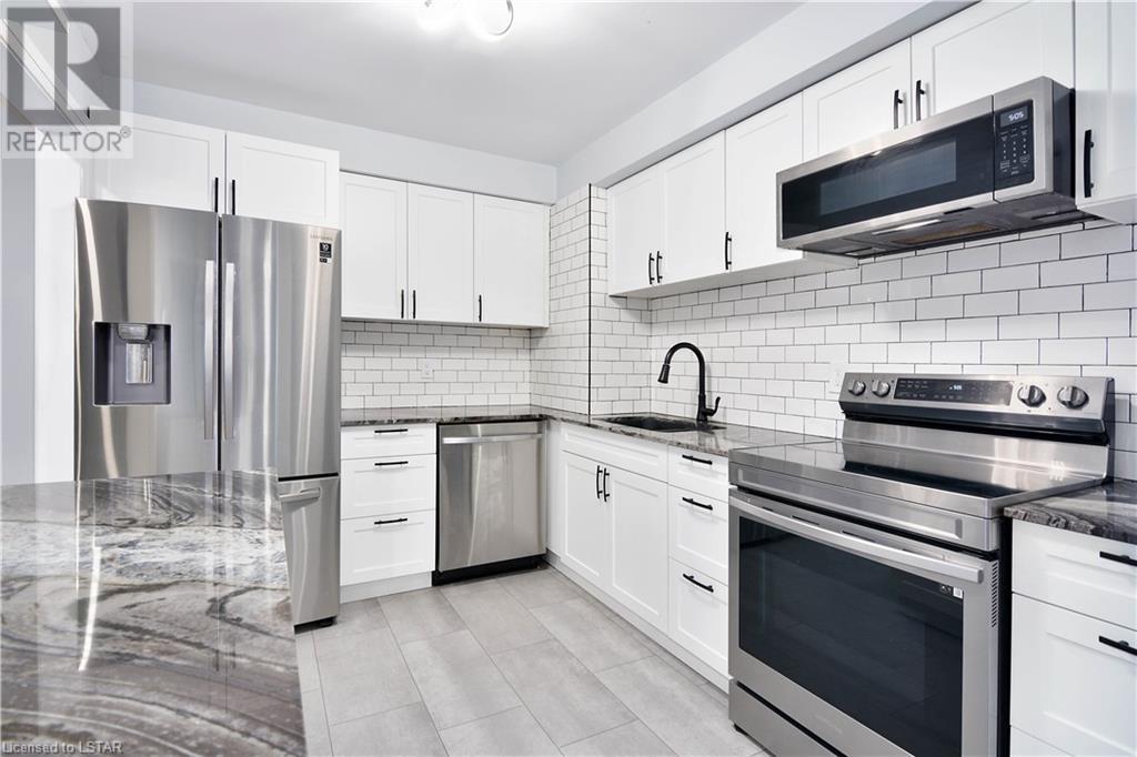 Move-in ready townhome with second floor balcony off the primary bedroom is now up for grabs! Fresh renovations to flooring, fixtures, and a brand new kitchen complete with tile, backsplash, appliances, and marble counters, you'll be happy to entertain your family and friends! Bright and welcoming, enjoy entertaining throughout the basement family room or main floor living space with the option of exiting out your rear patio doors to a fully fenced backyard with no rear neighbouring lot! Excellent privacy! All 3 bedrooms are large compared to your typical townhome with the primary bedroom taking the cake thanks to its oversized closets, double door entry, and balcony. For the finishing touches, enjoy central air cooling, forced air gas heating, a private driveway and single car garage, this style of townhome is the one for you! Located near shopping, schools, easy 401 access, and more. Book today! (id:22211)