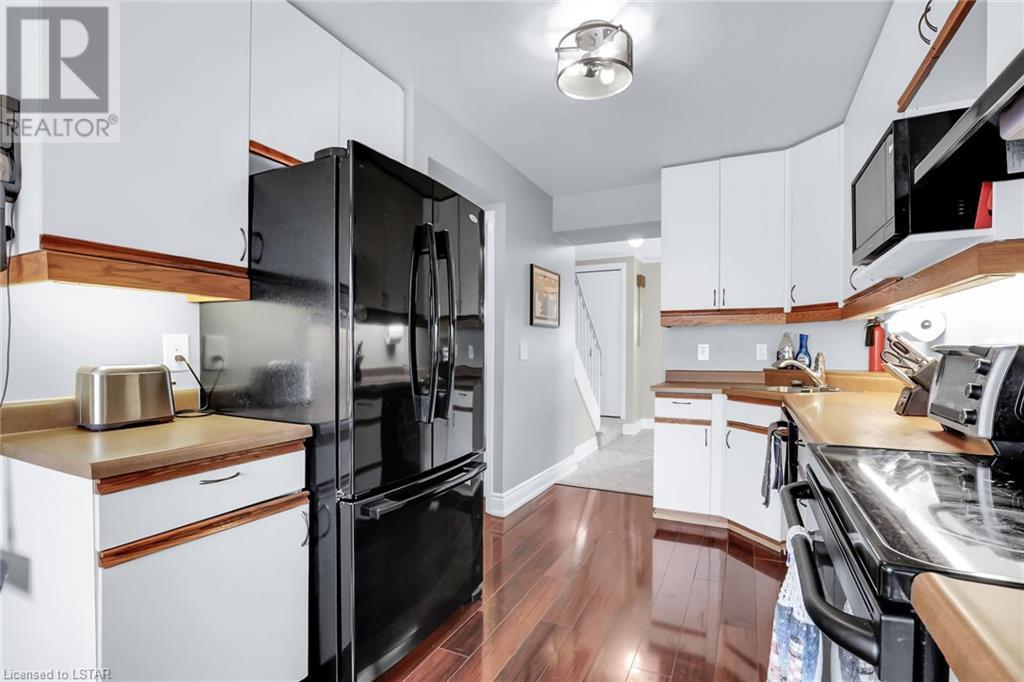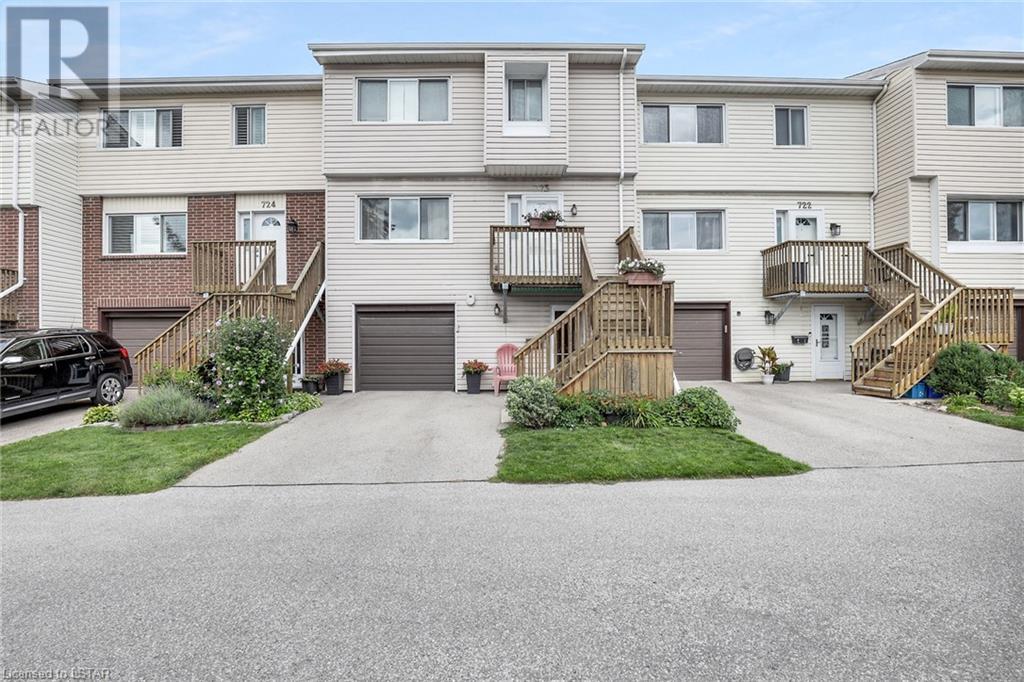 This spacious 3 bedroom condo is walking distance to LHSC and Parkwood Hospital, has 2.5 baths, including an updated ensuite bathroom & an updated 4 piece bathroom. It has a 1 car garage, walk-out to covered patio area, is tucked into a quiet spot at the back of the complex and is one of the few in the complex that has a private deck off the second floor looking onto mature trees. The main level has laundry, inside entry for garage with steel fire door, a rec room with new flooring, walk-out to the covered patio area and a bonus room with gas fireplace which can be used as an office or exercise area. On the second floor you’ll find a powder room, kitchen and separate dinette with plenty of cabinets and you’ll be pleased with the bright spacious living room and dining room with patio doors leading out to an amazing deck with plenty of space and privacy. On the top floor the spacious master bedroom has an updated 3 piece bathroom and 2 closets, one being a walk-in closet. You'll also find 2 more good sized bedrooms and another updated 4 piece bathroom (both baths renovated in 2020 for over $15,000). This condo complex has an in-ground pool to cool off on those hot summer days. If you work at LHSC or Parkwood you'll love the location of this spacious condo as it's also close to shopping & many other amenities with easy access to Hwy 401. Furnace and A/C approx. 8 years old. (id:22211)
