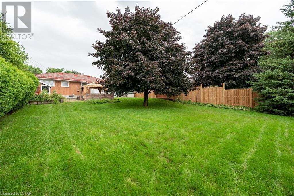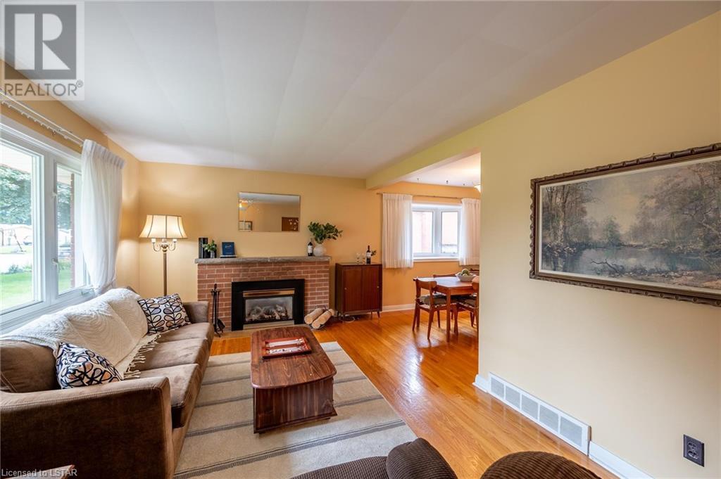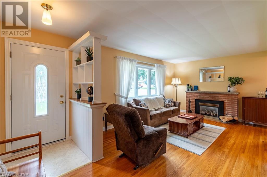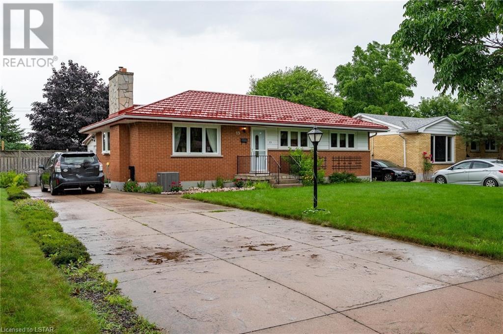 Welcome to this well maintained bungalow home located on a quiet crescent, in Huron Heights, with easy access to the 401 and close to parks, schools, shopping, and amenities. Just steps away from stronach park and Fanshawe College. Recent upgrades included new AC (2023), Metal roof (2009 with 50 year transferable warranty). You'll also appreciate the large stamped concrete driveway that can accommodate up to 5 cars. The main level has a traditional layout, living room with a gas fireplace, adjoining dining room, kitchen, bathroom, and 3 bedrooms. Refinished original hardwood flooring throughout main floor. The lower level is partially finished with a large recreation room, office area, 3 piece bathroom and large laundry room/rec room area. Enjoy your summer nights in your fully fenced yard with patio, gazebo and bonus two season sunroom! (id:22211)