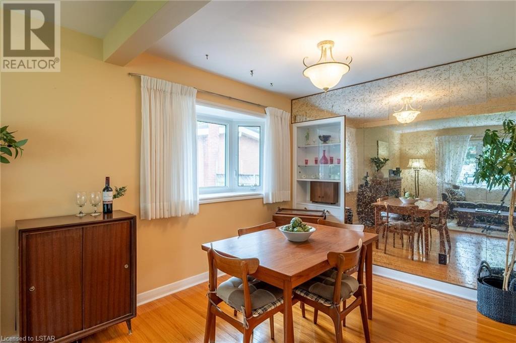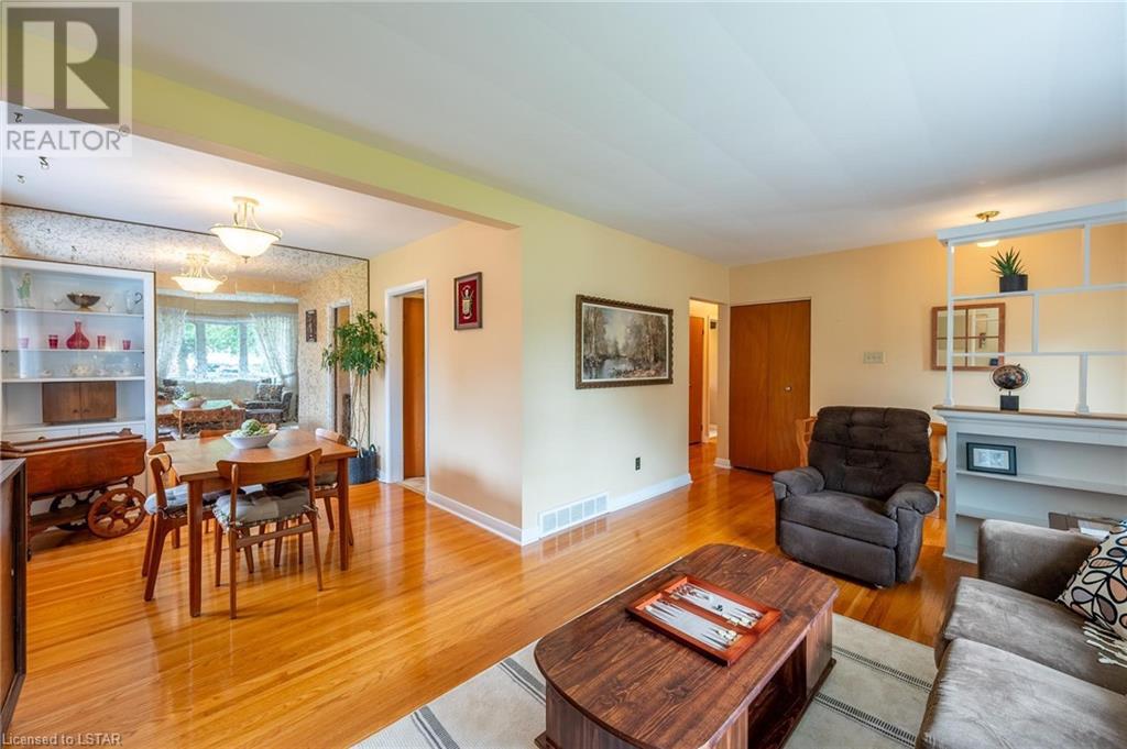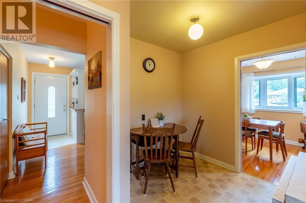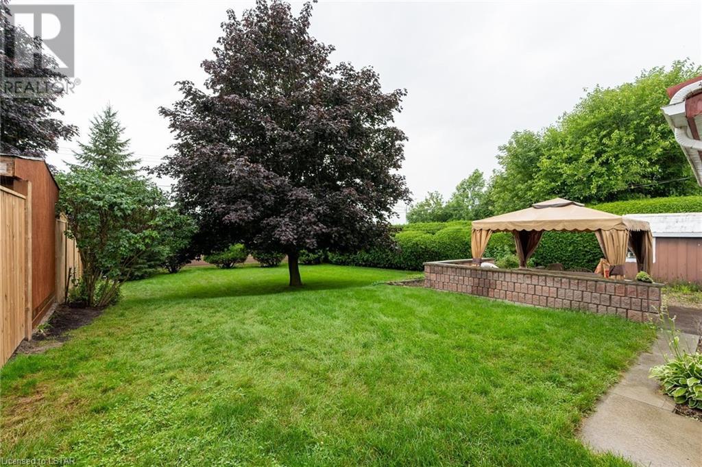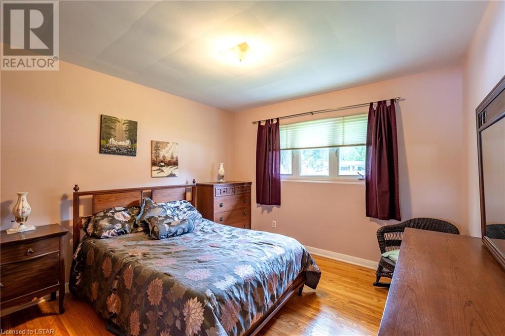 Welcome to this well maintained bungalow home located on a quiet crescent, in Huron Heights, with easy access to the 401 and close to parks, schools, shopping, and amenities. Just steps away from stronach park and Fanshawe College. Recent upgrades included new AC (2023), Metal roof (2009 with 50 year transferable warranty). You'll also appreciate the large stamped concrete driveway that can accommodate up to 5 cars. The main level has a traditional layout, living room with a gas fireplace, adjoining dining room, kitchen, bathroom, and 3 bedrooms. Refinished original hardwood flooring throughout main floor. The lower level is partially finished with a large recreation room, office area, 3 piece bathroom and large laundry room/rec room area. Enjoy your summer nights in your fully fenced yard with patio, gazebo and bonus two season sunroom! (id:22211)