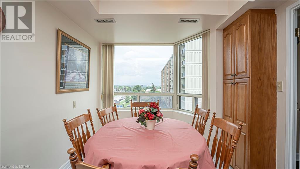 Bright, quiet and spacious 1440 sq. ft. 3 bedroom and 2 full bath corner unit condo with open concept living and dining room facing East. Large primary bedroom with 4 piece ensuite bathroom, and walk in closet. The kitchen features lots of cabinet space, including a floor to ceiling pantry and sunny breakfast nook overlooking London. The condo has in-suite laundry, comfortable central air and forced air gas heating, plus 1 reserved covered parking spot. The Westford is a well maintained building with many amenities including exercise room, sauna, hot tub, pool table, party room with seating, dinning and kitchenette including roof top with magnificent views, barbeque and lounge area. Great location close to shopping, cinemas and public transit. Come and view as it will not last long on the market! (id:22211)
