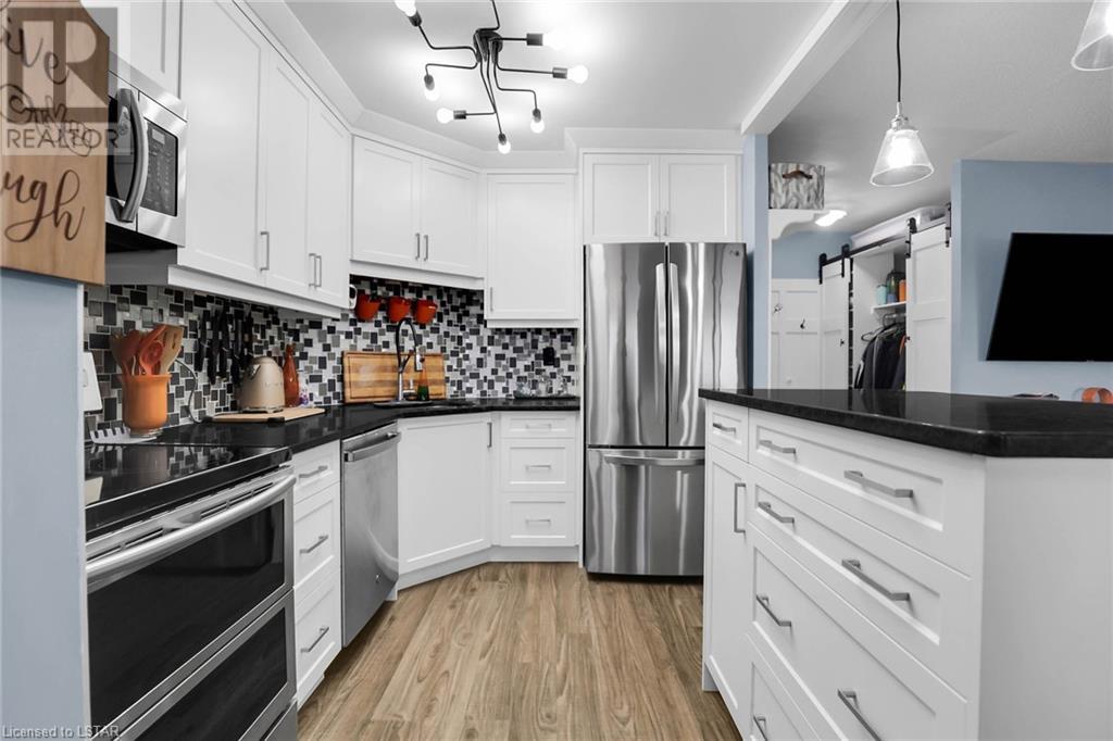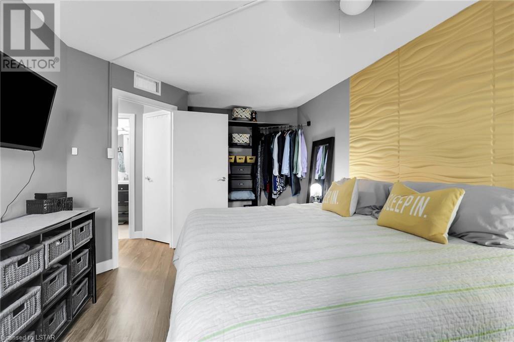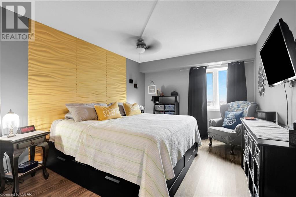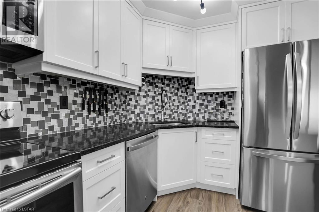This tastefully updated 2 bedroom unit in Roseland Park towers is located on the 9th floor and is sure to impress. It features a newer kitchen done be Cardinal Fine Cabinetry including granite counter tops and newer SS appliances, newer bathroom with an elegant vanity, all matching newer smooth surface flooring, custom closets in the foyer, updated light fixtures, neutral tones and custom forming. The apartment comes with central air, a newer furnace and in-suite laundry. Just move in and enjoy. This well run condominium gives you access to a heated salt water pool, tennis court, gym and sauna. Great proximity to Victoria Hospital, Parkwood, Westminster Conservation Area, a nearby dog park and just a short drive to the highway. Sure to go quick! Kitchen (2017), flooring (2017), bath (2017), fridge & dishwasher 2022 (id:22211)