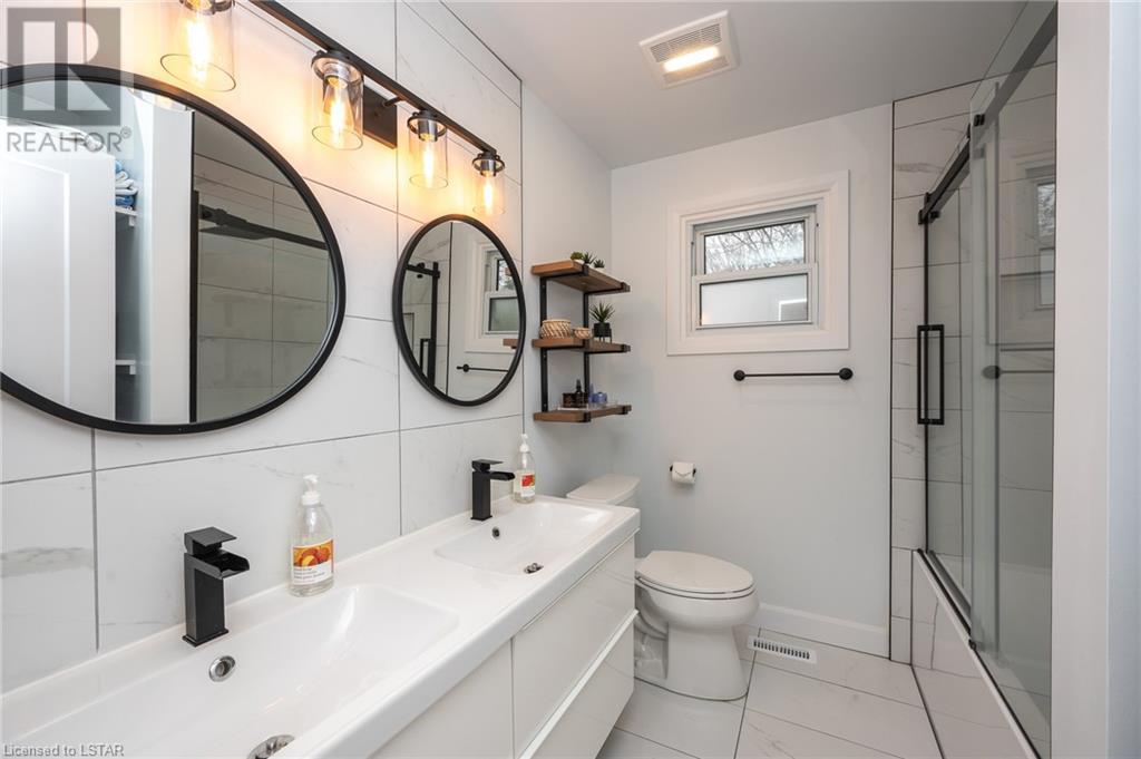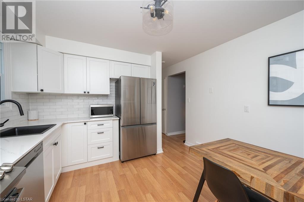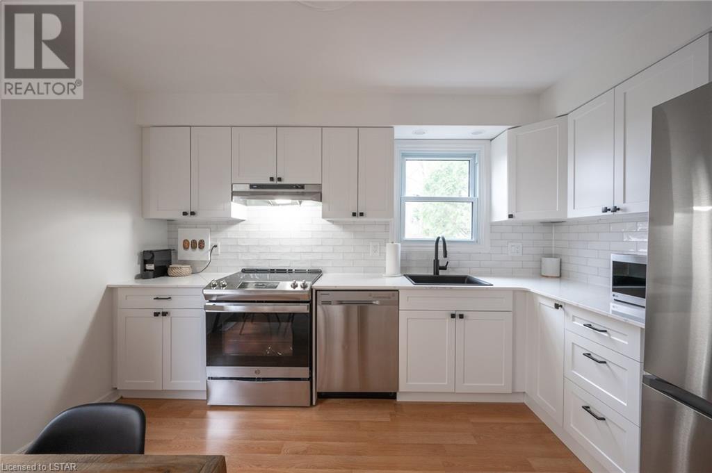 This beautifully renovated and well maintained semi-detached home is move in ready! This fresh and inviting home features a bright and updated eat- in kitchen, fully updated one and a half bathrooms, three bedrooms, a large main floor family room, lower level great room with walkout access to a large fenced in backyard and a single car garage with direct entry to the home. Located in the heart of London. 5 minute walk to Victoria Hospital, beautiful Roundtree Park, daycare and school. Many recent updates including: Shingles 2020, Eavestroughs 2019, Downstairs bathroom 2019, Upstairs bathroom 2022, Kitchen 2021. (id:22211)