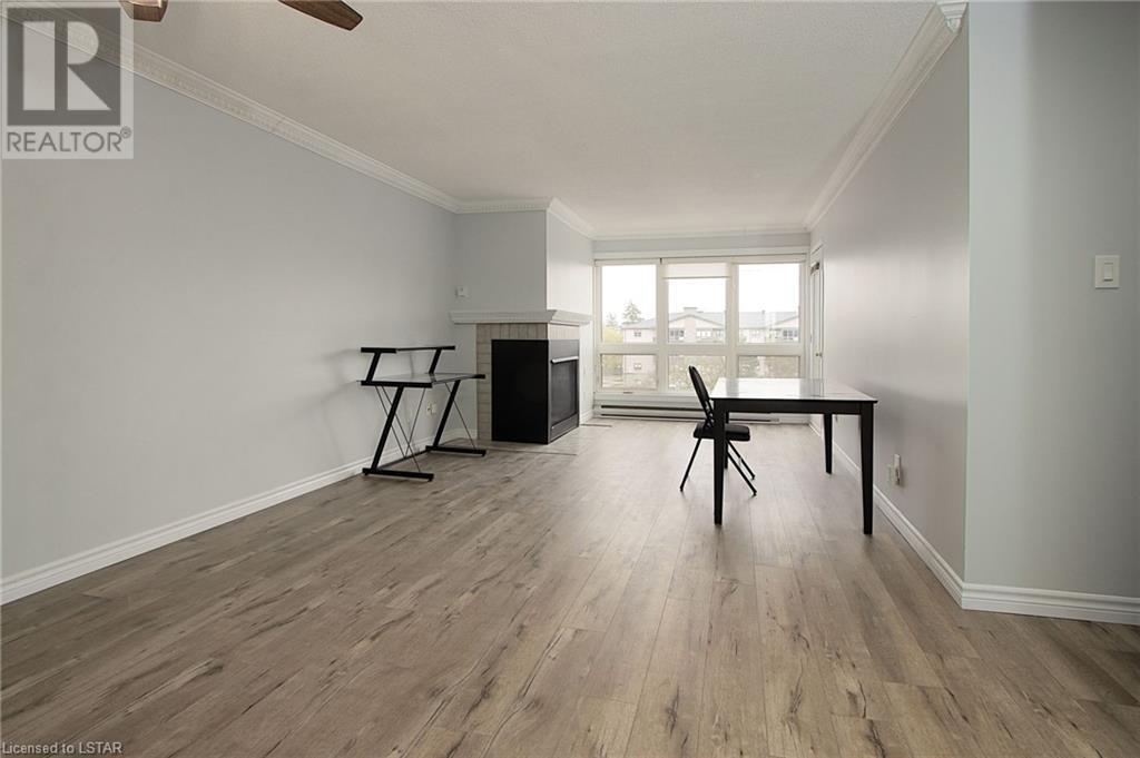 Masonville Gardens. Rare opportunity to own a 3-bedroom unit which has been fully refurbished top to bottom. This is the largest floor plan in complex and these units do not come up very often but are very popular as it allows you to obtain additional income from the extra bedroom. Two full baths, including full 4-piece ensuite, gas fireplace and outdoor balcony. Prime North London just steps from Loblaws, Indigo, Starbucks, Masonville Mall, the University and Hospital. Direct bus from complex to University. The complex has had extensive renovations including roofing, exterior stucco, all windows, gas fireplaces, and tempered glass balconies. Laundry and water are included in condo fee. Don’t miss out. (id:22211)