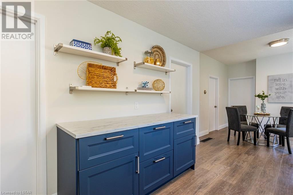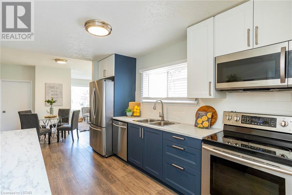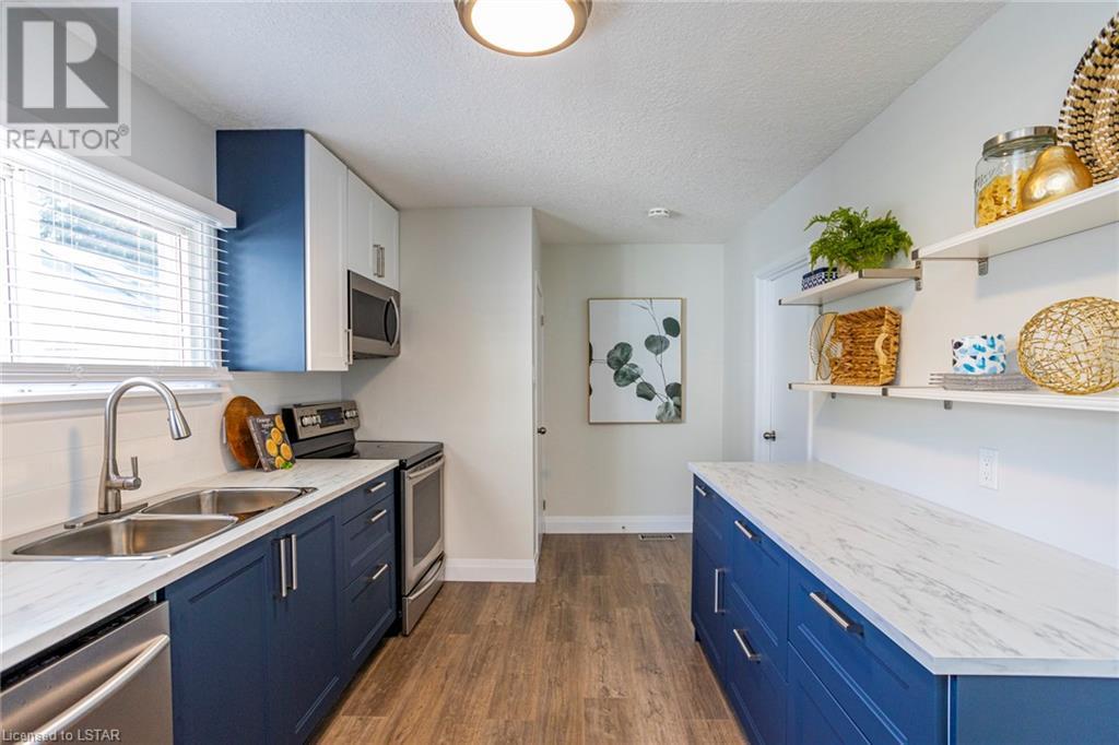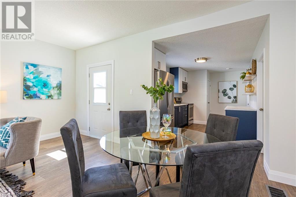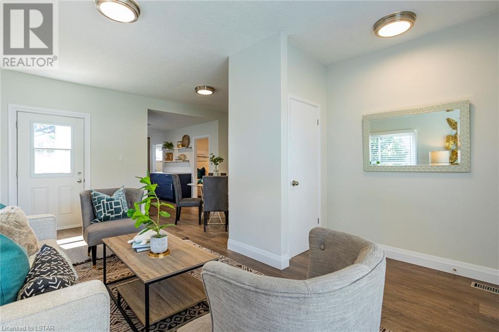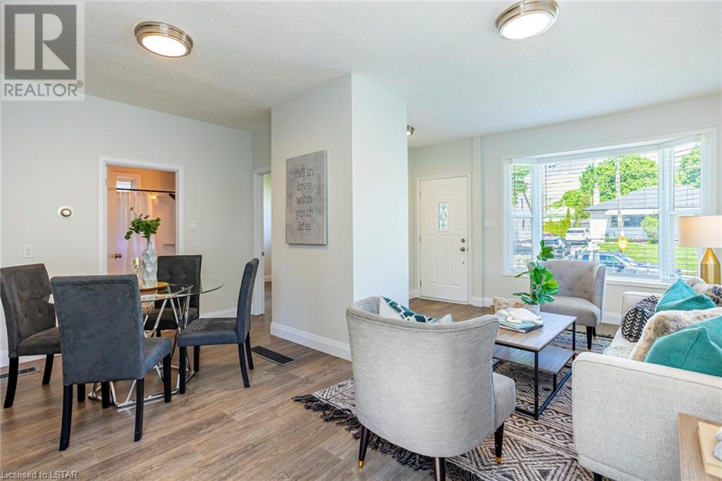 TURN-KEY! A perfect condo alternative, first time buyer or down sizer option or simply for anyone looking for an immaculate, trendy bungalow on a tree lined street! This home has undergone a meticulous transformation with attention to detail and high-quality updates top to bottom including flooring, paint, trim, doors, light fixtures, textured ceilings, kitchen and bathroom. Easy main floor living with an open concept floor plan offering 3 bedrooms (primary bedroom with a walk-in closet), living room, dining area and a gorgeous modern kitchen with open shelving, wood and navy details and stainless-steel appliances (new in 2022). Four-piece bathroom with beautiful, practical finishes, and storage. Lots of natural light. Basement has been fully waterproofed/wrapped with a new sump pump leaving it dry and unspoiled with a 20-year warranty transferable with the property via Waltech Drainage. Updated 100 AMP panel service. Owned water heater. Central air 2023. Updated roof, furnace and vinyl windows. Exterior features a detached, single car garage with auto door opener and huge asphalt driveway redone in 2022. Impressive lot measuring 50 X 132 feet with mature trees and grass space. Located close to great amenities including shopping, restaurants, and transit. Drive to Fanshawe College in 5 minutes and Downtown London in 10 minutes. This property offers a combination of attractive features, including recent updates, a spacious lot, mature trees, a convenient location and is not to be missed! (id:22211)