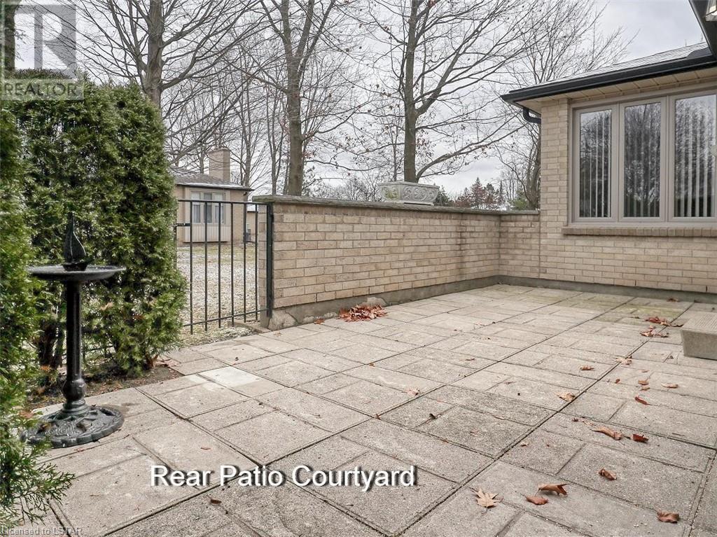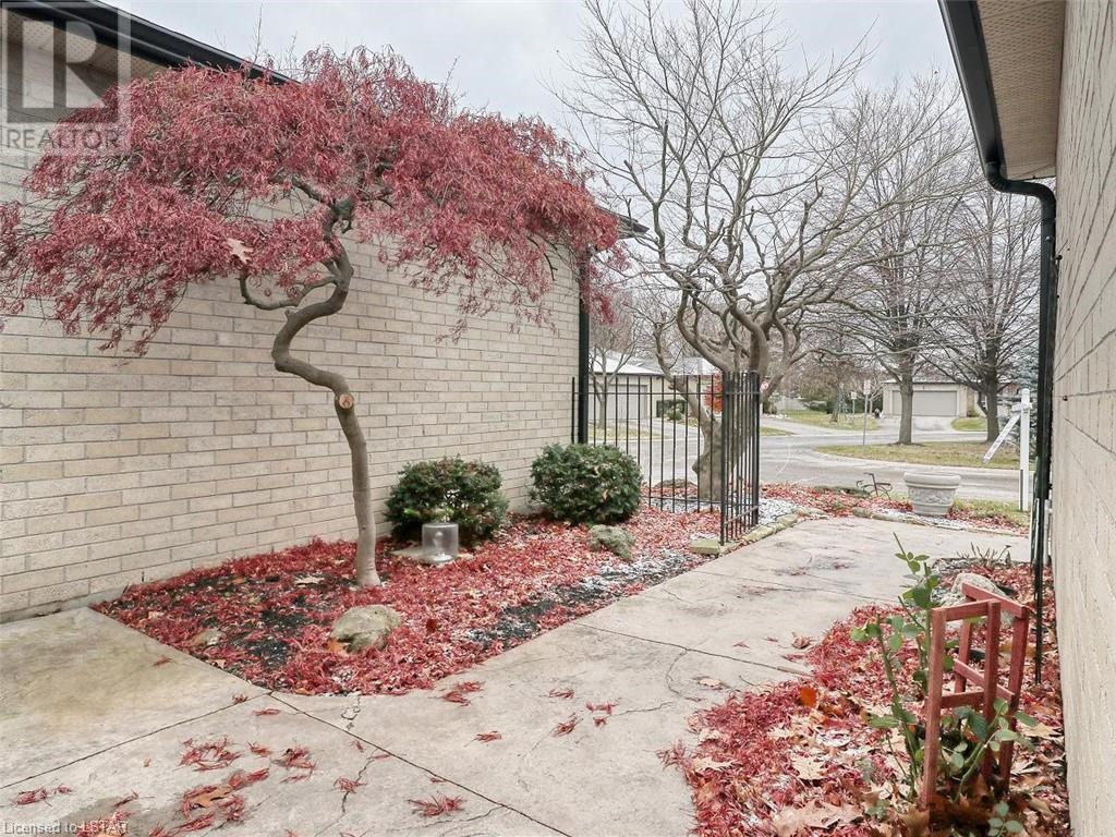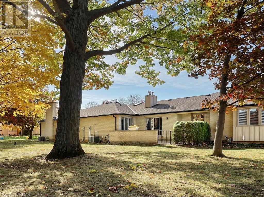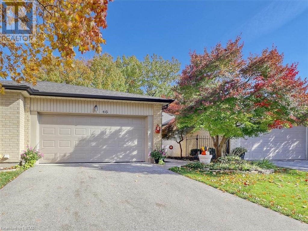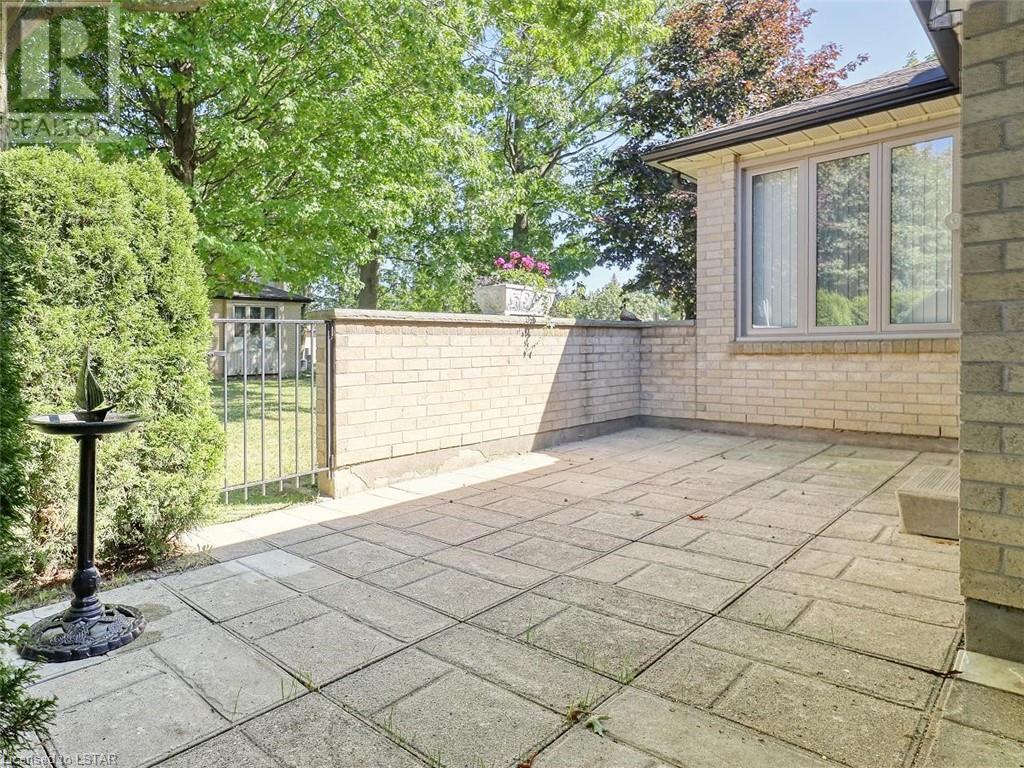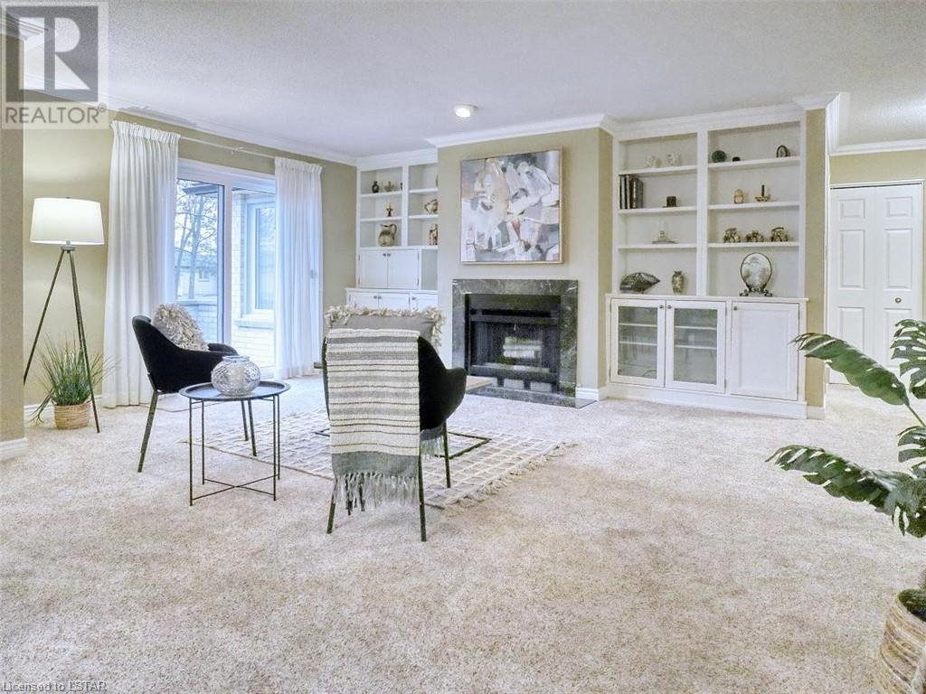 Beautiful Bungalow-Style Condominium in a mature treed setting with lots of greenspace and also walking distance to numerous amenities! BOTH a gorgeous landscaped front courtyard and a rear courtyard surrounded by trees! Inside Entry from the spacious garage and a generous double driveway. Elegant living dining room with a gas fireplace and attractive built-ins on both sides. Spacious kitchen with lots of counter space and extra pantry cupboards along with a very bright eating area looking out into one of the courtyards. Each of the generous bedrooms overlooks one of the outdoor patios as well. The two large bathrooms on the main level include a full ensuite. Extensively finished lower level with a huge family room, a bedroom, and a full bathroom. There are many extra large closets in the basement for storage as well as a large open workshop/utility room. This unit is in a special location in the complex on its own little cul-de-sac with large areas of greenspace in front and behind. An oasis in the city and great access to the 401/402! You will want to view this special home! Showings by appointment only – make yours today! (id:22211)