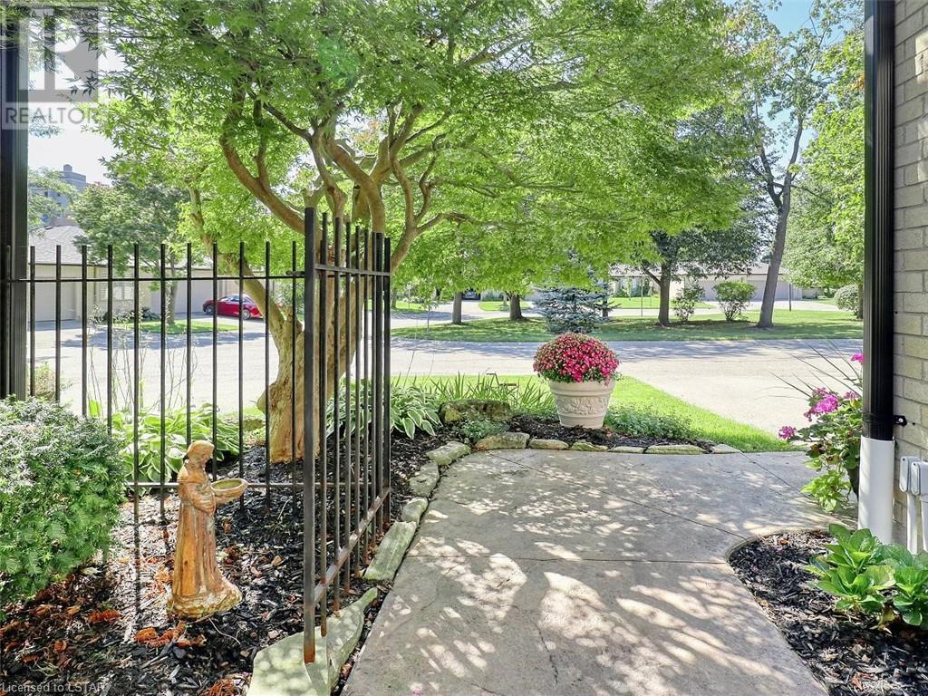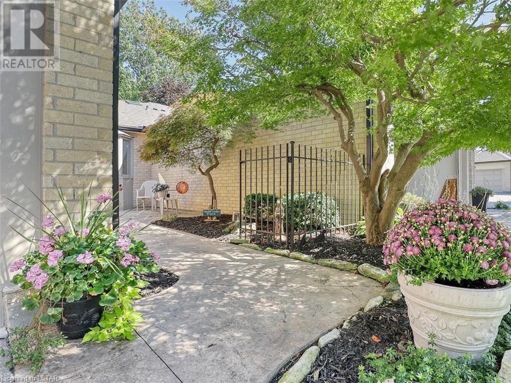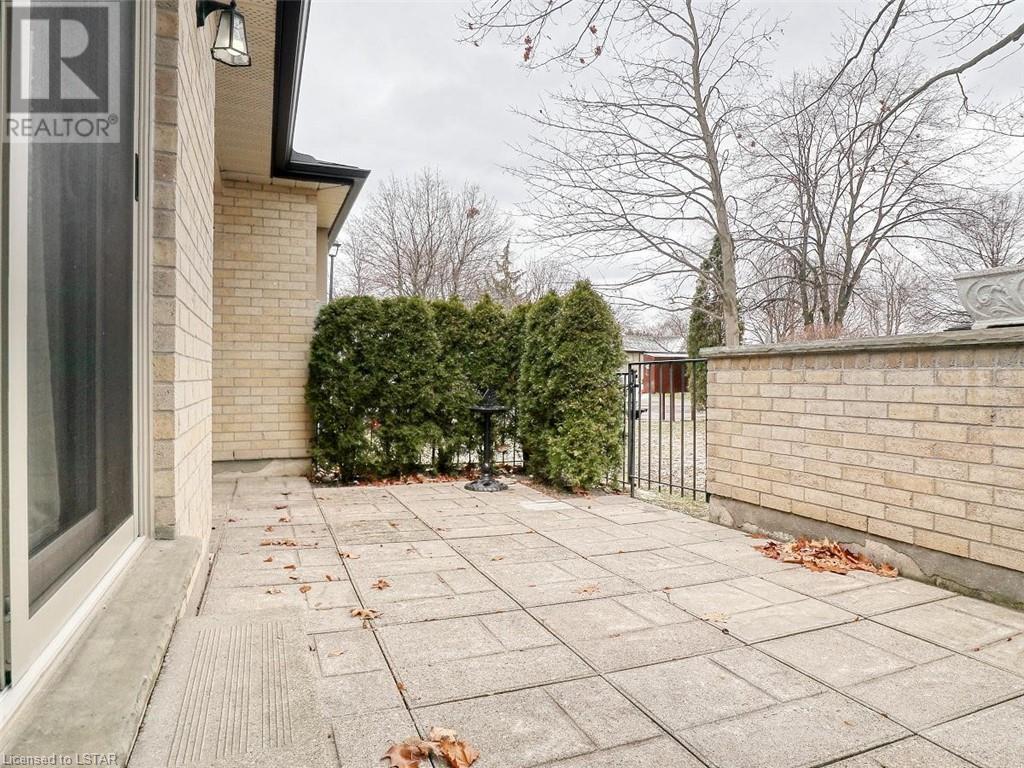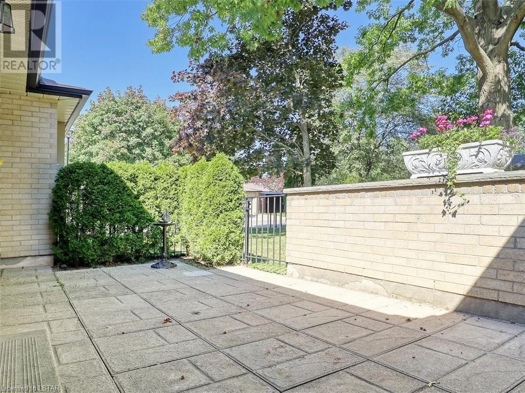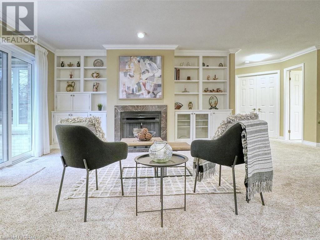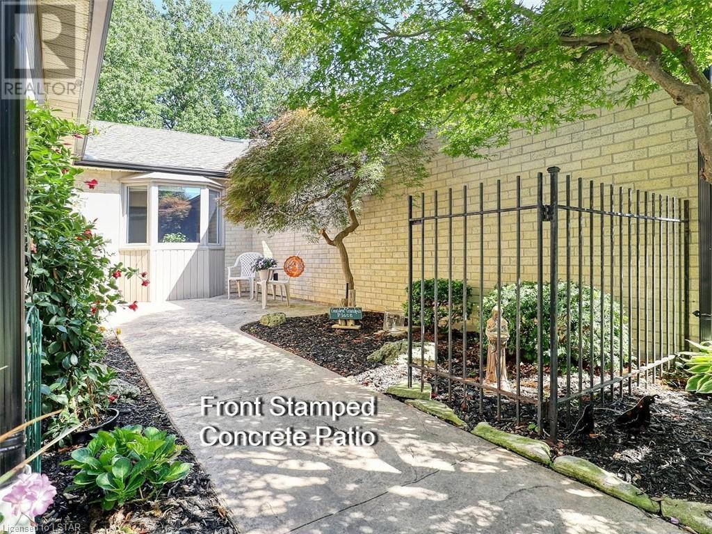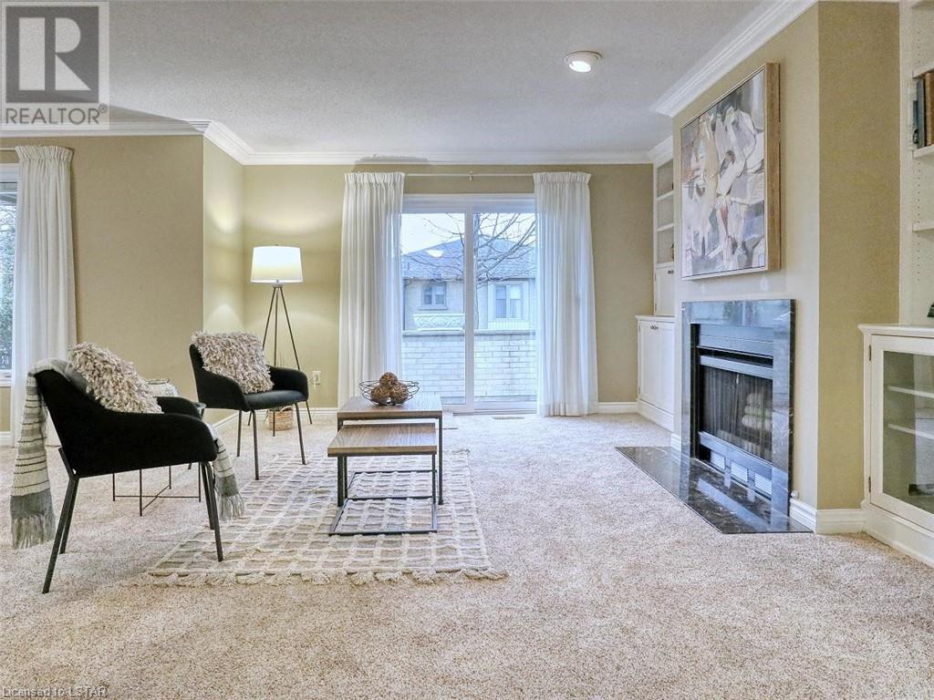 Beautiful Bungalow-Style Condominium in a mature treed setting with lots of greenspace and also walking distance to numerous amenities! BOTH a gorgeous landscaped front courtyard and a rear courtyard surrounded by trees! Inside Entry from the spacious garage and a generous double driveway. Elegant living dining room with a gas fireplace and attractive built-ins on both sides. Spacious kitchen with lots of counter space and extra pantry cupboards along with a very bright eating area looking out into one of the courtyards. Each of the generous bedrooms overlooks one of the outdoor patios as well. The two large bathrooms on the main level include a full ensuite. Extensively finished lower level with a huge family room, a bedroom, and a full bathroom. There are many extra large closets in the basement for storage as well as a large open workshop/utility room. This unit is in a special location in the complex on its own little cul-de-sac with large areas of greenspace in front and behind. An oasis in the city and great access to the 401/402! You will want to view this special home! Showings by appointment only – make yours today! (id:22211)