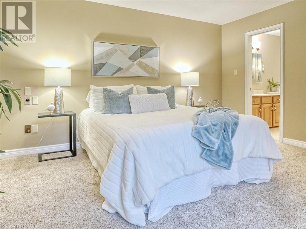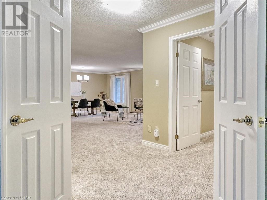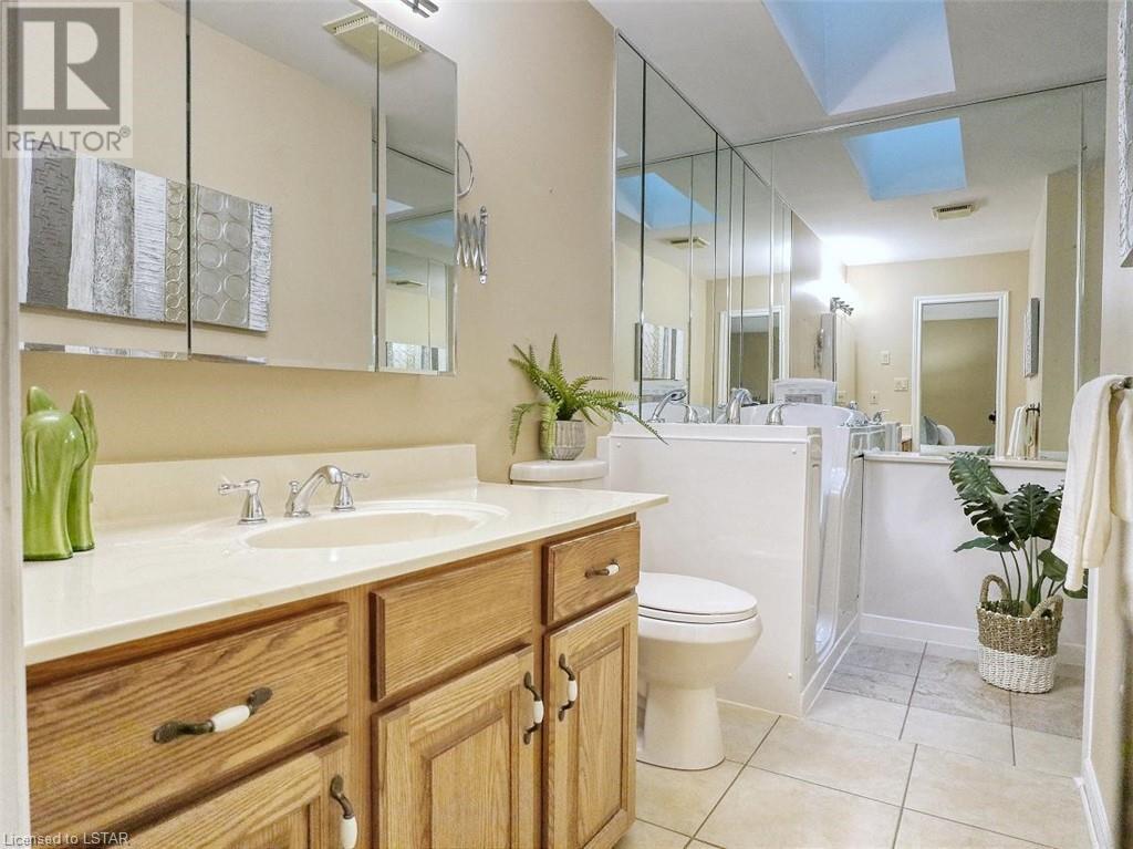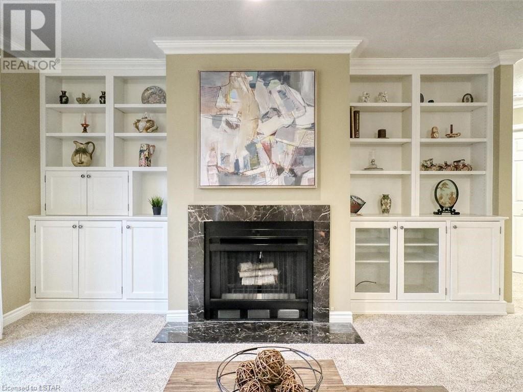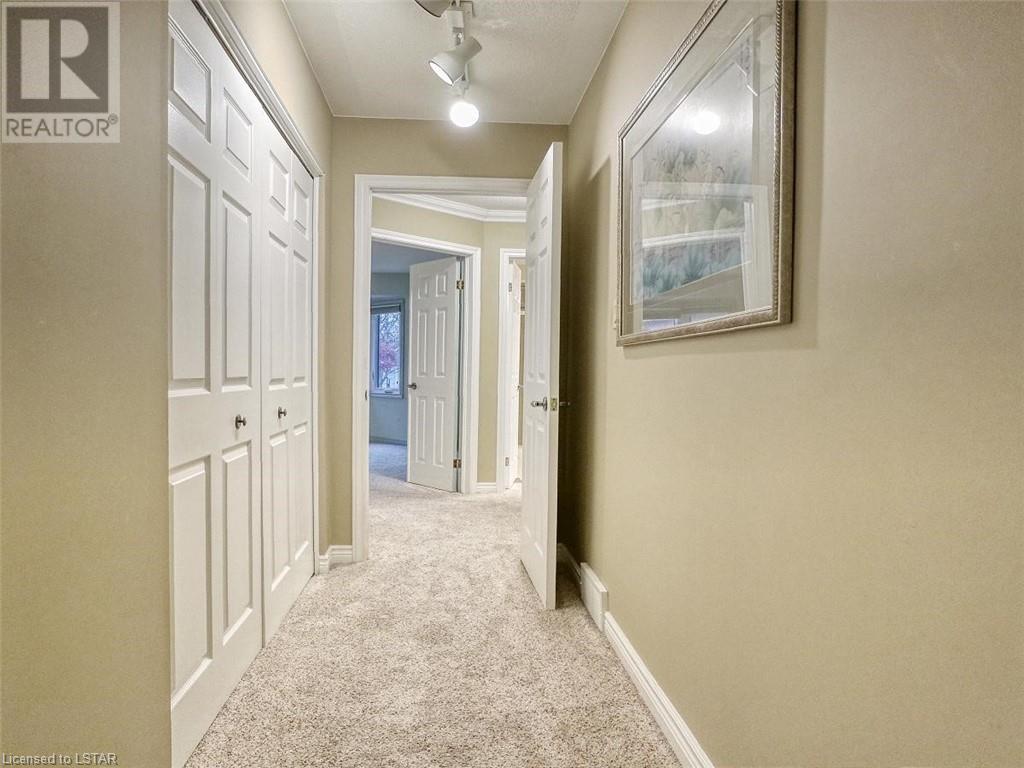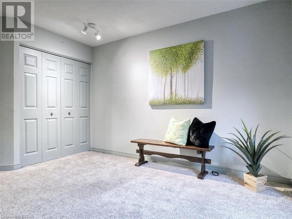 Beautiful Bungalow-Style Condominium in a mature treed setting with lots of greenspace and also walking distance to numerous amenities! BOTH a gorgeous landscaped front courtyard and a rear courtyard surrounded by trees! Inside Entry from the spacious garage and a generous double driveway. Elegant living dining room with a gas fireplace and attractive built-ins on both sides. Spacious kitchen with lots of counter space and extra pantry cupboards along with a very bright eating area looking out into one of the courtyards. Each of the generous bedrooms overlooks one of the outdoor patios as well. The two large bathrooms on the main level include a full ensuite. Extensively finished lower level with a huge family room, a bedroom, and a full bathroom. There are many extra large closets in the basement for storage as well as a large open workshop/utility room. This unit is in a special location in the complex on its own little cul-de-sac with large areas of greenspace in front and behind. An oasis in the city and great access to the 401/402! You will want to view this special home! Showings by appointment only – make yours today! (id:22211)