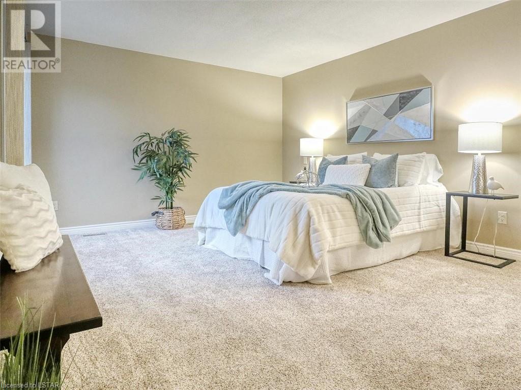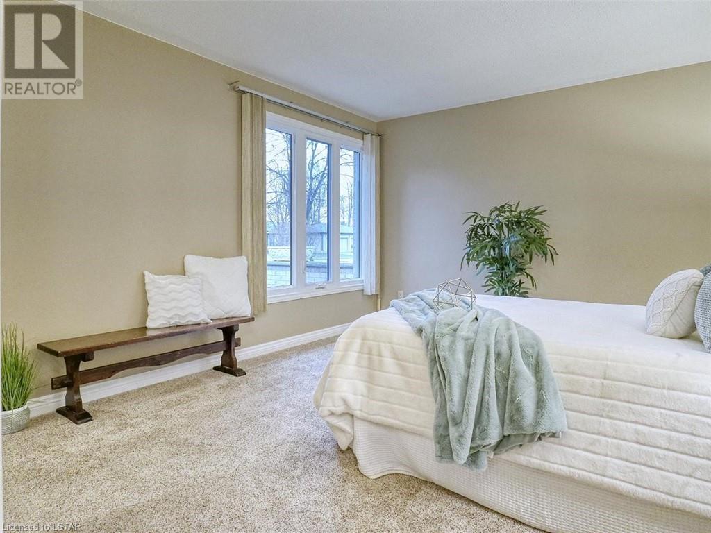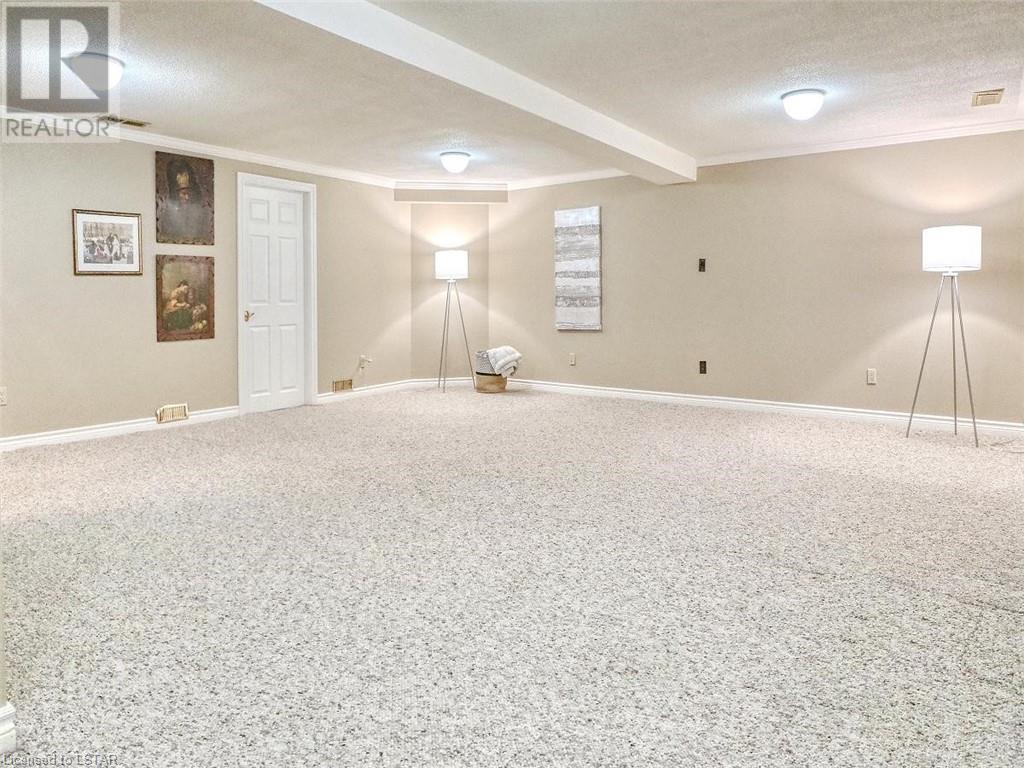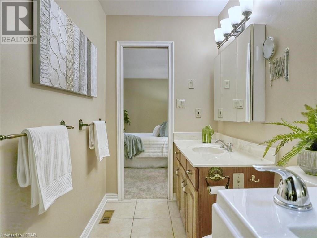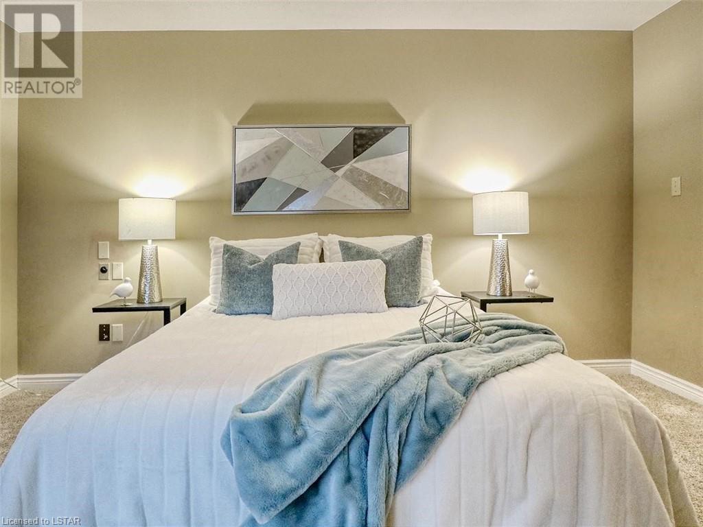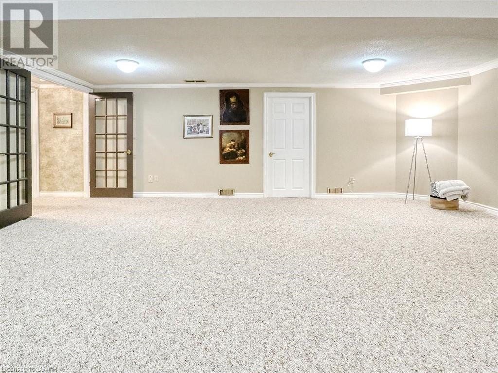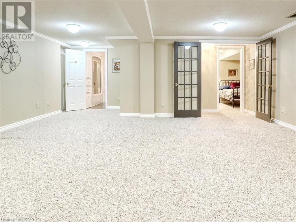 Beautiful Bungalow-Style Condominium in a mature treed setting with lots of greenspace and also walking distance to numerous amenities! BOTH a gorgeous landscaped front courtyard and a rear courtyard surrounded by trees! Inside Entry from the spacious garage and a generous double driveway. Elegant living dining room with a gas fireplace and attractive built-ins on both sides. Spacious kitchen with lots of counter space and extra pantry cupboards along with a very bright eating area looking out into one of the courtyards. Each of the generous bedrooms overlooks one of the outdoor patios as well. The two large bathrooms on the main level include a full ensuite. Extensively finished lower level with a huge family room, a bedroom, and a full bathroom. There are many extra large closets in the basement for storage as well as a large open workshop/utility room. This unit is in a special location in the complex on its own little cul-de-sac with large areas of greenspace in front and behind. An oasis in the city and great access to the 401/402! You will want to view this special home! Showings by appointment only – make yours today! (id:22211)