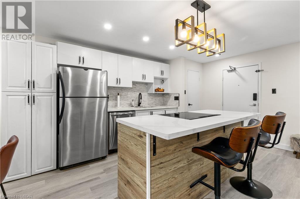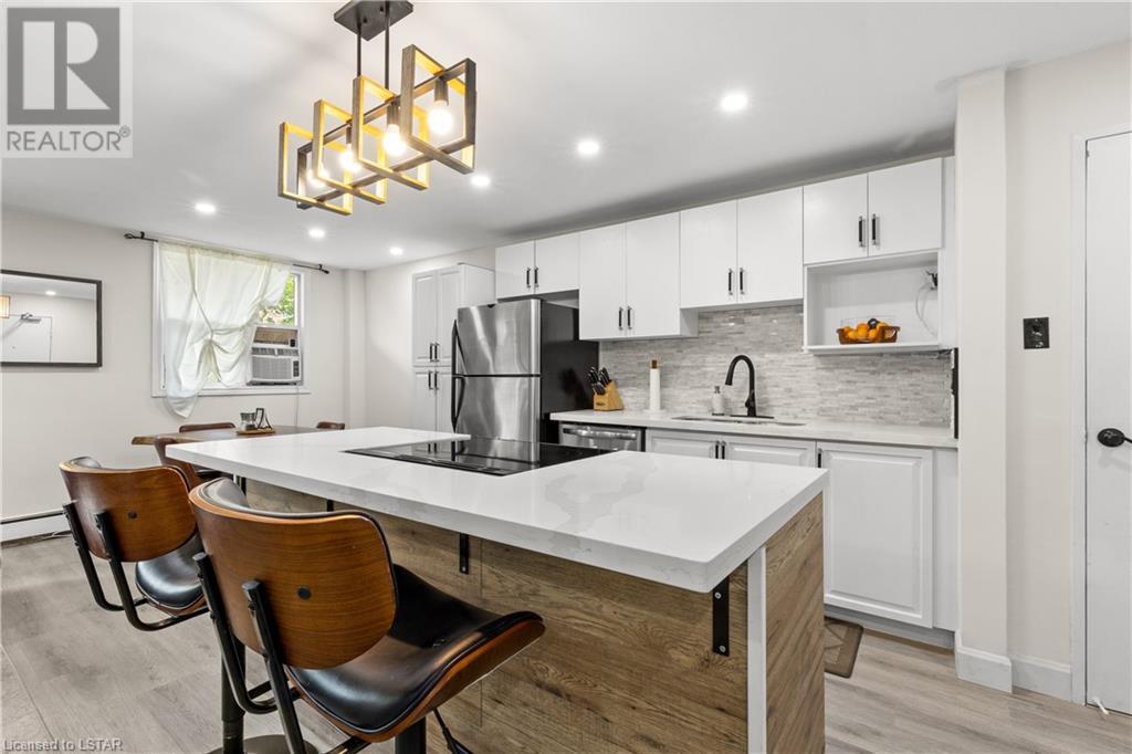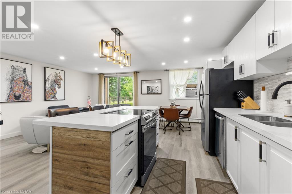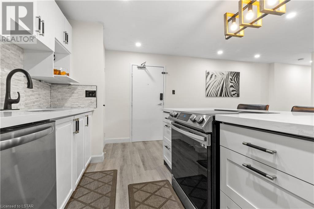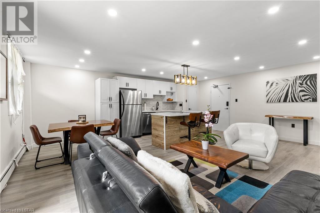Welcome to this two-bedroom Condo located in desirable Westmount! Note: The condo fee includes all utilities. The modern kitchen features an island with quartz countertops, pot lights, stainless steel appliances & loads of cupboards, and stainless steel appliances. Full Open concept with solid vinyl flooring & pot lights throughout. Lots of natural light, The large patio doors will take you out to your private covered balcony for you to sit back and relax. Freshly painted, all new baseboards, updated bathroom. Two good size bedrooms, one large enough to fit a king-size bed. The unit has a laundry closet and additional laundry services on the same floor. Secured entrance, easy-to-access unit, close to shopping, schools, restaurants, and public transportation. Access to pool, tennis courts, playground, and walking paths. Whether you are a first-time home buyer or Investor, look no further. Super close access to the 401, shopping, restaurant, western university, Victoria Hospital, parks, and schools. (id:22211)