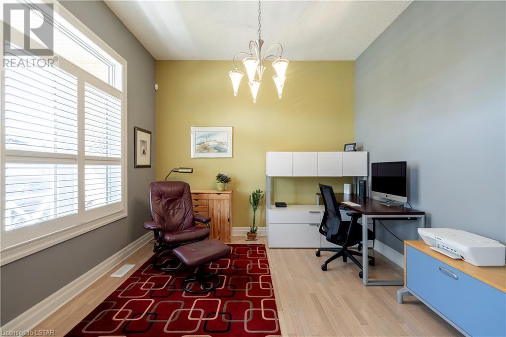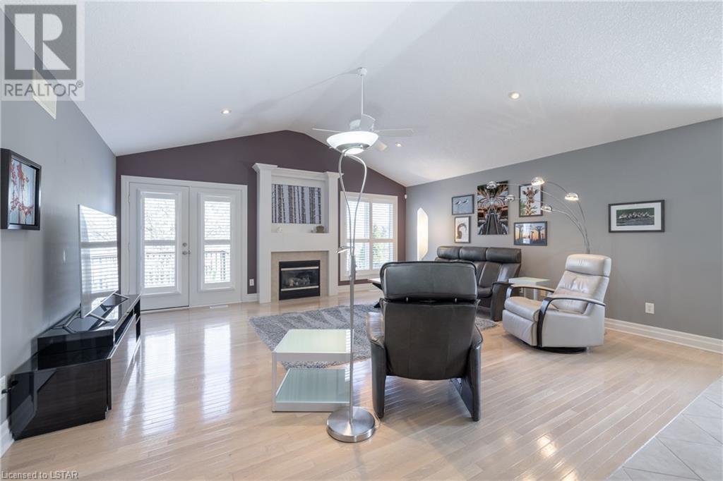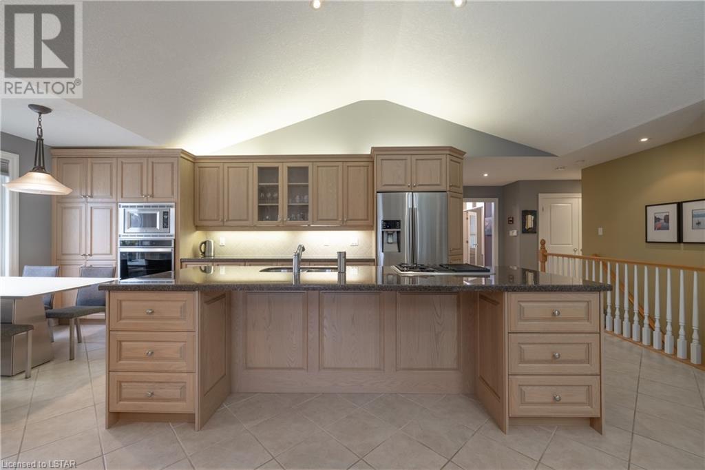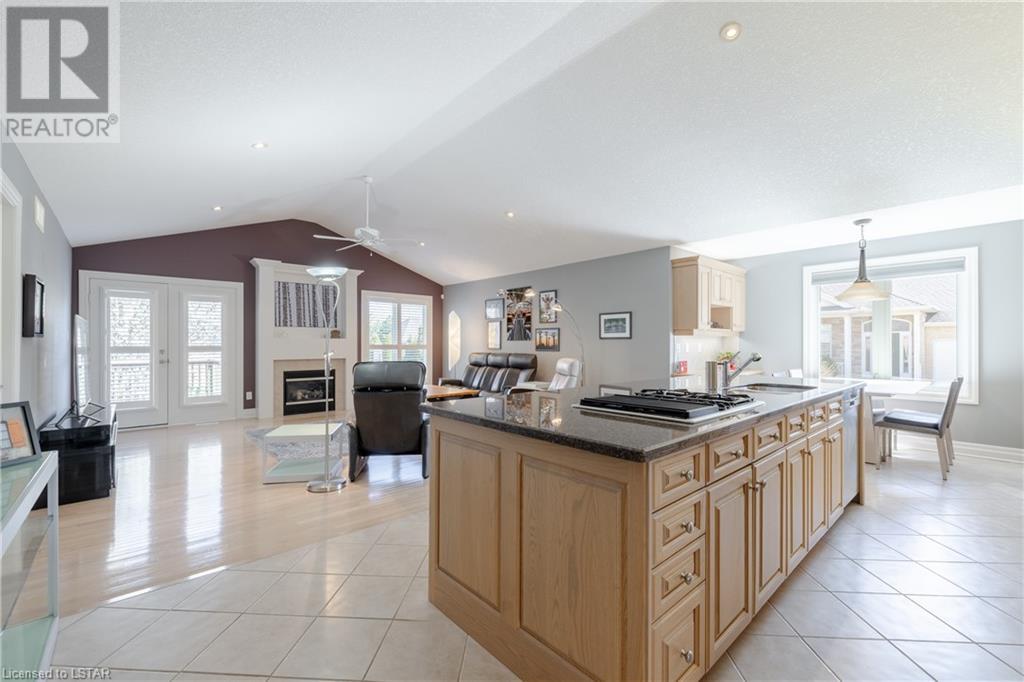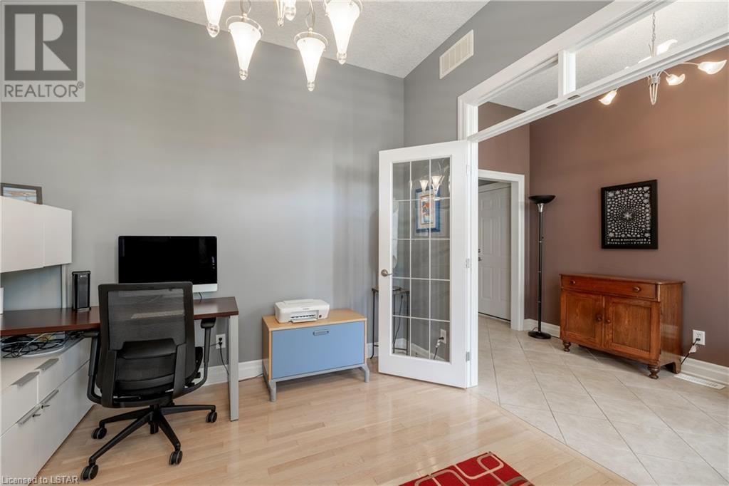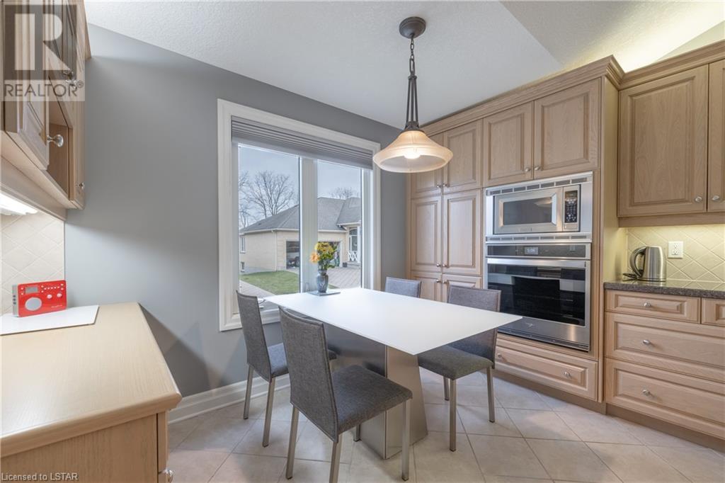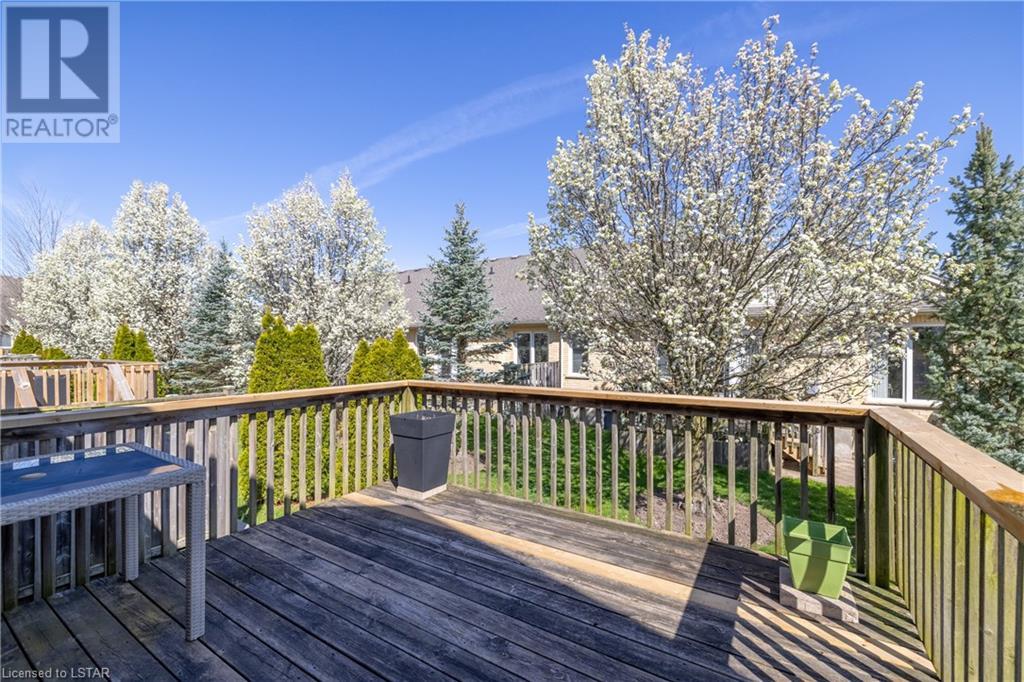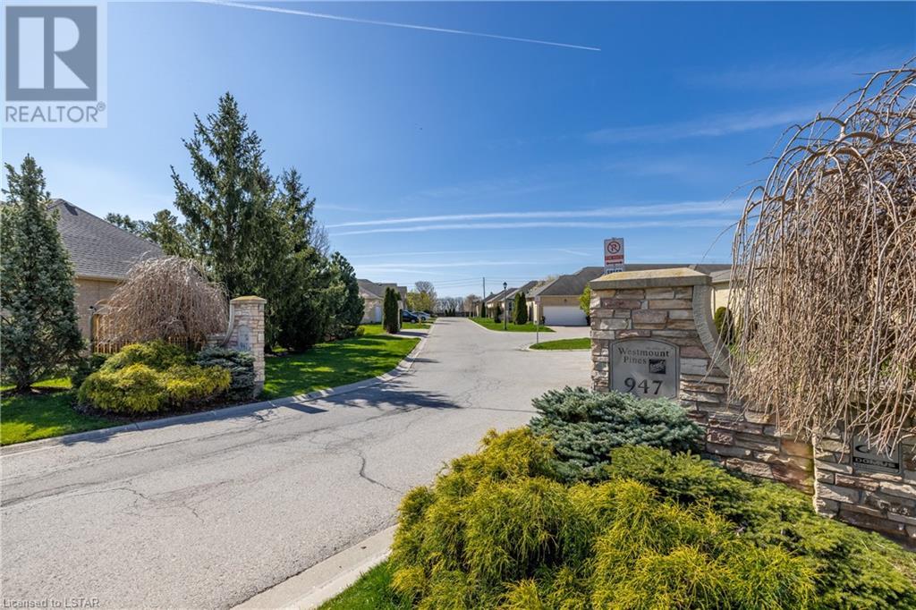 Welcome home to unit 8 at 947 Adirondack Road located in Westmount right on the edge of Byron, a rare offering in the highly sought after and quiet Westmount Pines complex. This home boasts attractive curb appeal with a large covered porch and double car garage. Step inside this beautiful end unit to an impressive open concept main floor. A large den that could also be a second bedroom or formal dining room greets you directly off of the large entrance foyer. Continuing into the home you will find gleaming hardwood and ceramic flooring throughout, 11 foot vaulted ceilings and plenty of windows with California shutters. A stunning kitchen with built in appliances and natural gas cooktop offers an immense amount of storage. The oversized granite island offers additional seating for three. This beautiful kitchen flows right into the bright great room featuring a gas fireplace, and patio doors opening to a private sun deck surrounded by many trees. The spacious main floor master bedroom has a large walk-in closet, trayed ceiling, and a four piece ensuite with jetted tub and oversized shower. The partly finished basement features a large lower level bedroom with a massive walk in closet and a newer full bathroom. The rest of the basement offers even more storage, or a blank canvas to finish how you wish. Equipped and ready for main floor laundry if you so desire with a substantial linen closet across from the laundry hookups. This home is in a fantastic location, only a few minutes drive or nice walk to all amenities including shopping, parks, restaurants, Bostwick YMCA and community centre, library, schools and more. Status Certificate is available. (id:22211)