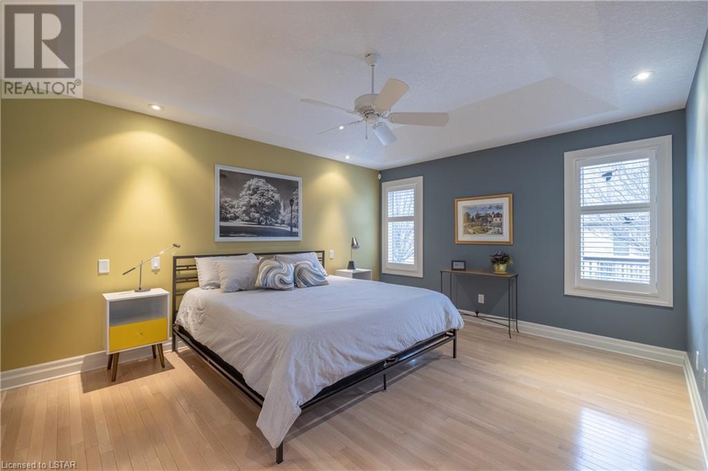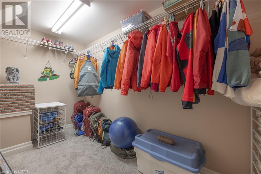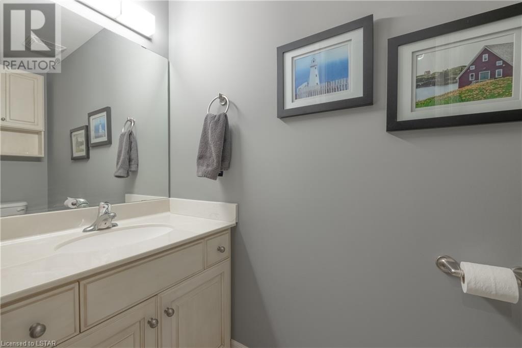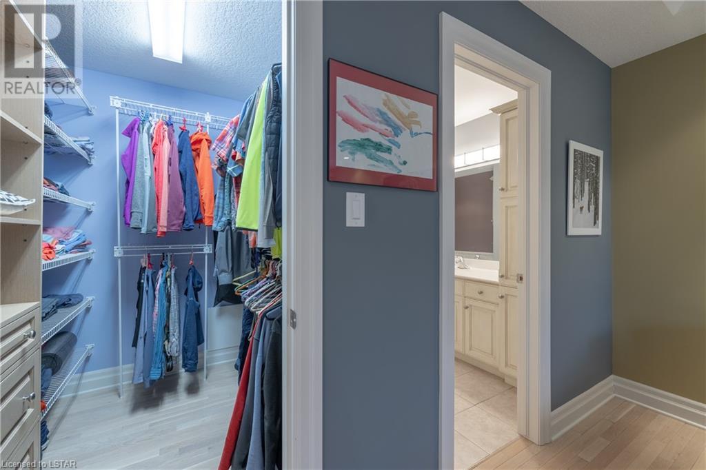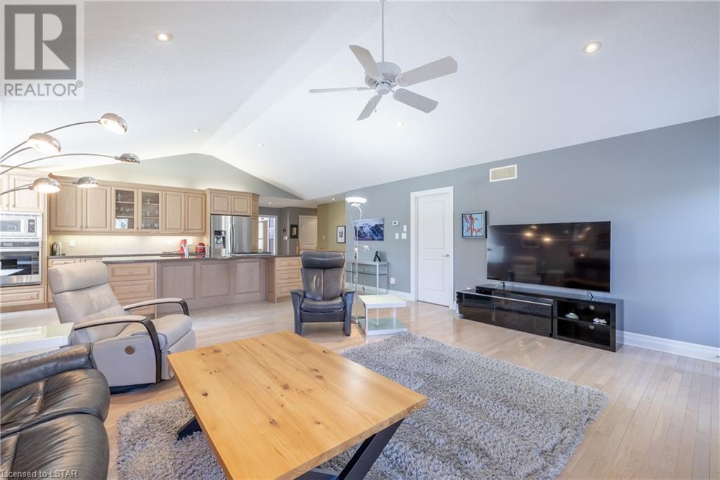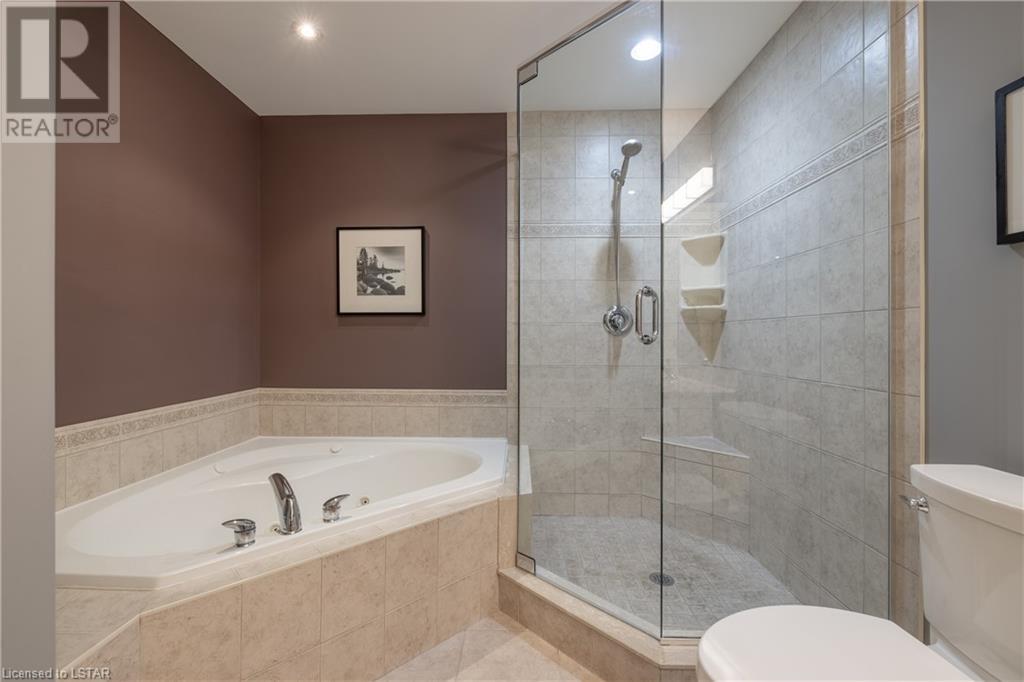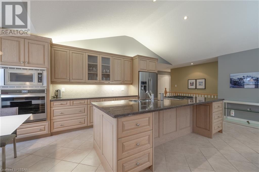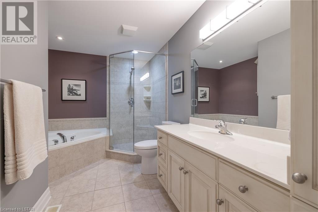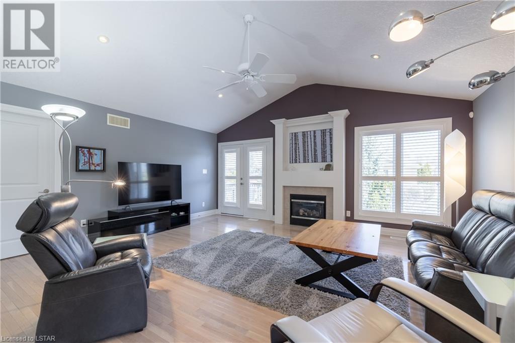 Welcome home to unit 8 at 947 Adirondack Road located in Westmount right on the edge of Byron, a rare offering in the highly sought after and quiet Westmount Pines complex. This home boasts attractive curb appeal with a large covered porch and double car garage. Step inside this beautiful end unit to an impressive open concept main floor. A large den that could also be a second bedroom or formal dining room greets you directly off of the large entrance foyer. Continuing into the home you will find gleaming hardwood and ceramic flooring throughout, 11 foot vaulted ceilings and plenty of windows with California shutters. A stunning kitchen with built in appliances and natural gas cooktop offers an immense amount of storage. The oversized granite island offers additional seating for three. This beautiful kitchen flows right into the bright great room featuring a gas fireplace, and patio doors opening to a private sun deck surrounded by many trees. The spacious main floor master bedroom has a large walk-in closet, trayed ceiling, and a four piece ensuite with jetted tub and oversized shower. The partly finished basement features a large lower level bedroom with a massive walk in closet and a newer full bathroom. The rest of the basement offers even more storage, or a blank canvas to finish how you wish. Equipped and ready for main floor laundry if you so desire with a substantial linen closet across from the laundry hookups. This home is in a fantastic location, only a few minutes drive or nice walk to all amenities including shopping, parks, restaurants, Bostwick YMCA and community centre, library, schools and more. Status Certificate is available. (id:22211)