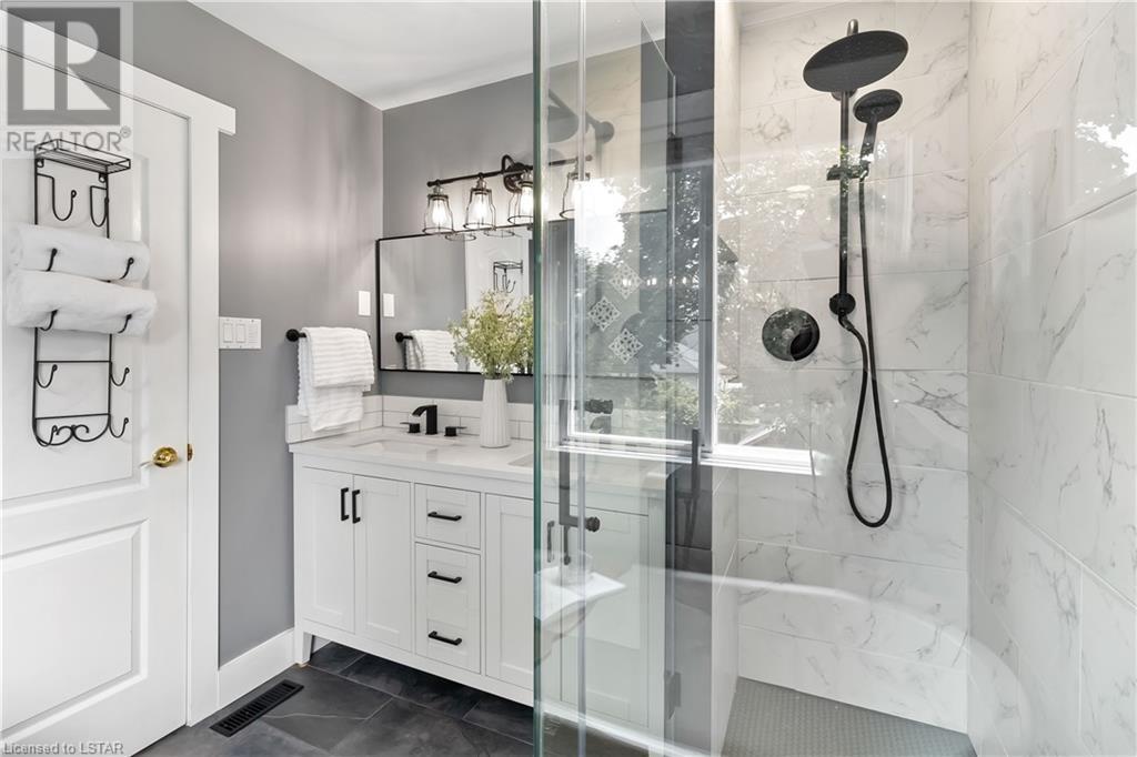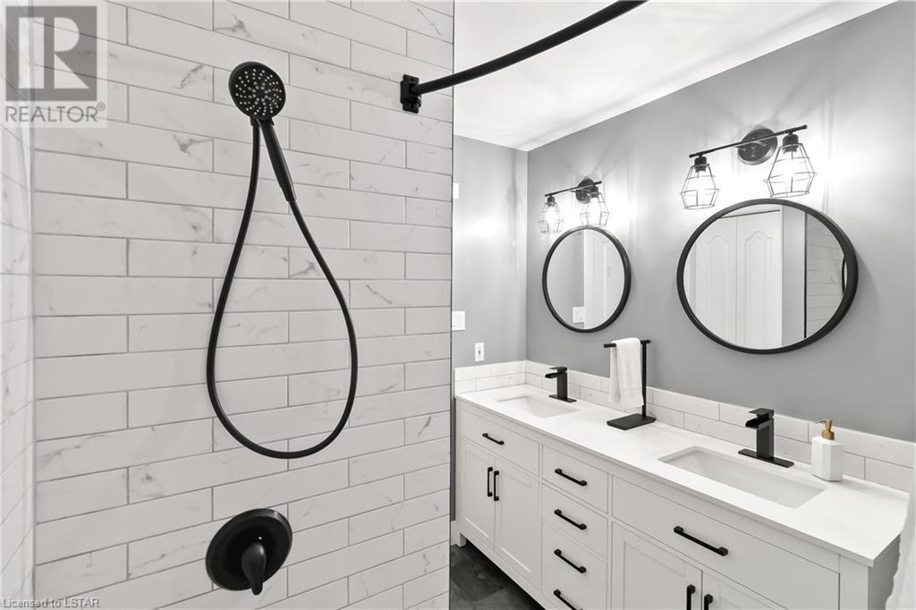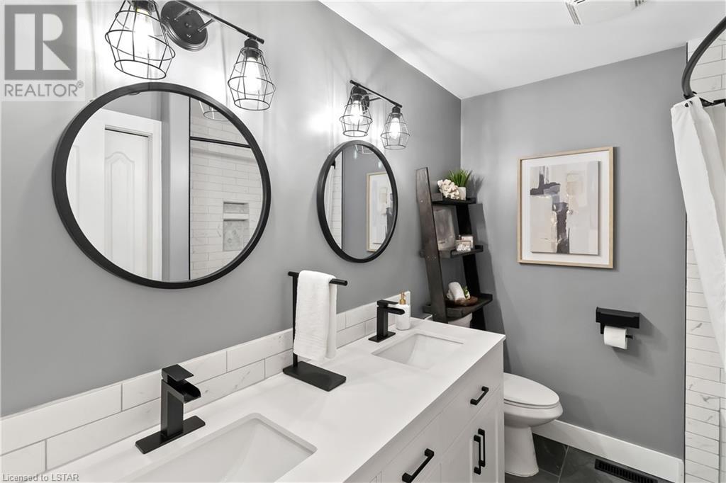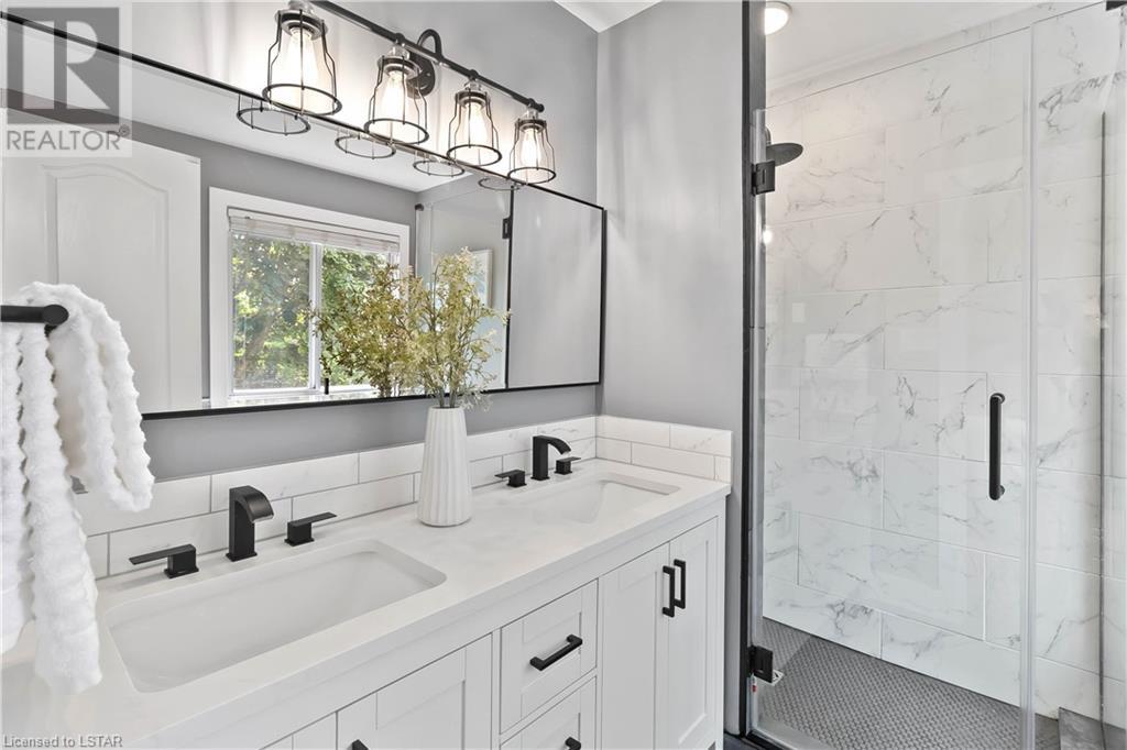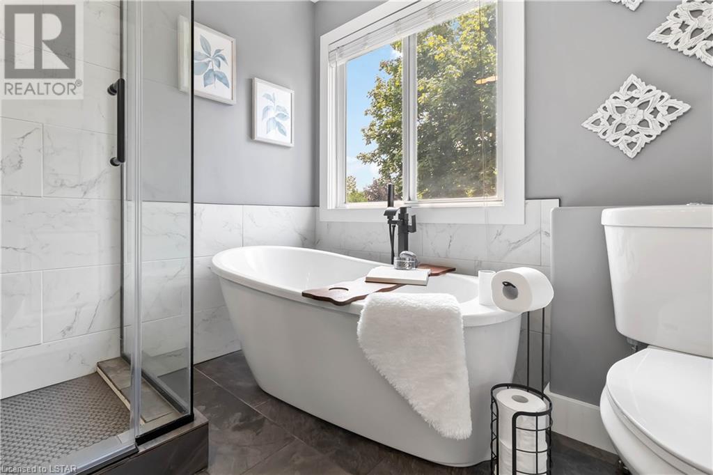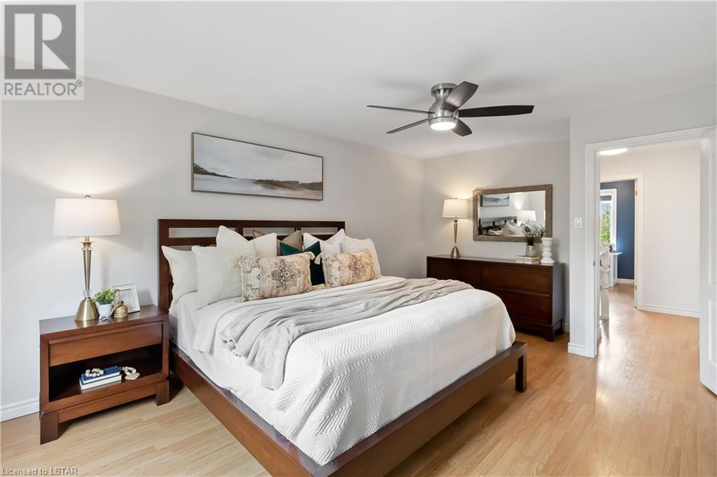 Stunning 2 storey home with nearly 1800 square feet of space on a very deep and fully fenced lot (148 feet deep!). Spacious main floor with 2 sitting areas and lovely kitchen with large work area and breakfast bar as well as quartz counter tops in kitchen. Rear access off kitchen to large patio and huge private lot which is fully fenced. Spacious second floor bedrooms including expansive Primary bedroom with full walk-in closet and gorgeous updated ensuite bath which features stand alone tub and separate shower. The other 4-piece bath on main floor has been beautifully updated as well. Partially finished lower level with finished den. Roofing shingles update in 2010. Easy access to Masonville, amenities and highway. EXCELLENT SCHOOL DISTRICT. Fantastic value! (id:22211)