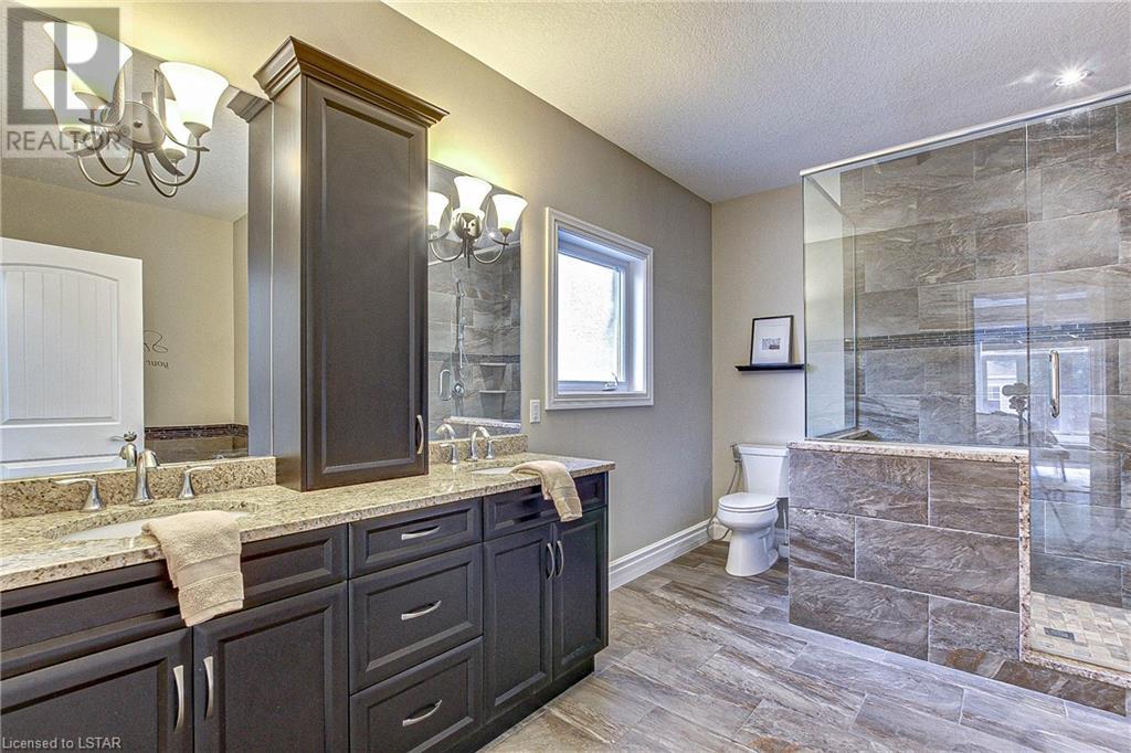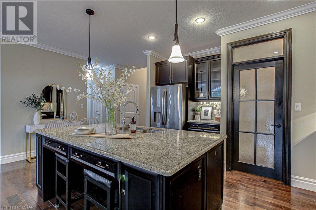 Welcome home to this lovely ranch style ( former ) Habib Model home in highly sought after North London. This home features porcelain and hardwood floors, granite counter tops, high end baseboards and crown molding. The home was constructed with 2 X 6 walls, offers a tankless water heater and a life breathe system. Water softener and reverse osmosis system are on a monthly rental which is transferrable. The beautiful chef like kitchen has a large walk-in pantry and comes with these top of the line stainless steel appliances . The master bedroom features a one of a kind tray ceiling with rope lighting along with his/her closets. The master ensuite will take your breathe away. The basement was fully developed by the builder and features 2 bedrooms, one of which offers dual French doors entrance and a 6 X 8 walk-in closet. New concrete driveway and walkway ( 2019 ) along with new slider patio door, master bedroom window and some living room windows ( 2020 ). The backyard oasis is a dream for sun and swim lovers. The 14 x 28 ( salt water pool) has been professionally opened and closed each year. There is plenty of space for your lounge chairs and outdoor furniture. Wiring is in place and complete for a hot tub! This home has so much to offer and is waiting for you, so call and make that appointment, you'll be sure to fall in love! (id:22211)