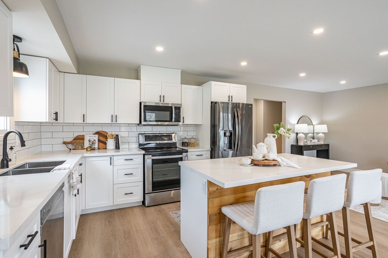 Fully Renovated Legal Duplex with Approved Plans for a Second Building Ideal for Mortgage Helper or Multi-Generational Living! Looking for a beautifully updated home with built-in income potential or room for extended family? Welcome to this exceptional 2-unit property, fully renovated in 2023/24 and loaded with value. The main (upper) unit offers 3 generous bedrooms and 1 stylish bathroom, featuring an open, modern layout with brand-new kitchen, upgraded bath, and updated finishes throughout. The lower unit includes 2 bedrooms and 1 bathroom, complete with its own new kitchen, bath, and private entrance perfect for in-laws, adult children, or rental income to help offset your mortgage. Renovations & upgrades include: New furnace & A/C (2023/24), Durable steel roof, Updated electrical & plumbing, All new windows in the lower unit, with several new on the main, Two hydro meters, with a third roughed-in for future use. Set on a massive lot, this home also comes with approved permits and drawings for a second 2-unit dwelling at the rear of the property giving you the rare opportunity to expand your living space or grow your investment over time. Whether you're looking for a smart way to get into the market or need space for family while maintaining privacy, this one-of-a-kind property offers flexibility, comfort, and future potential.