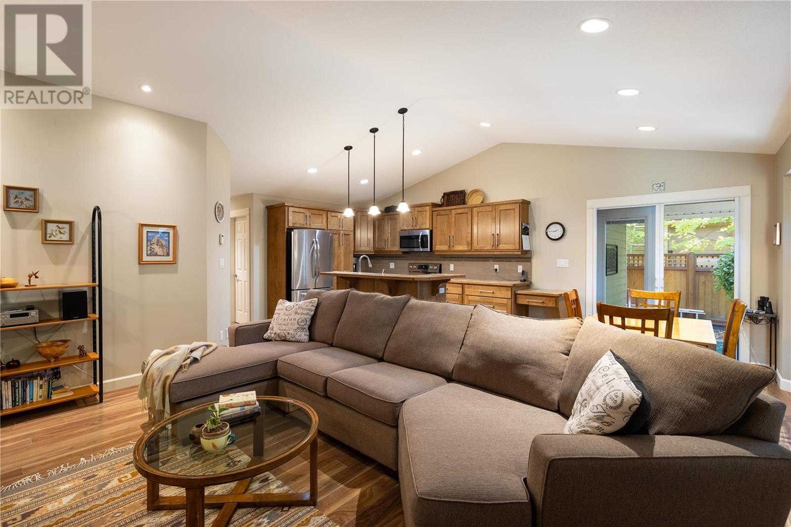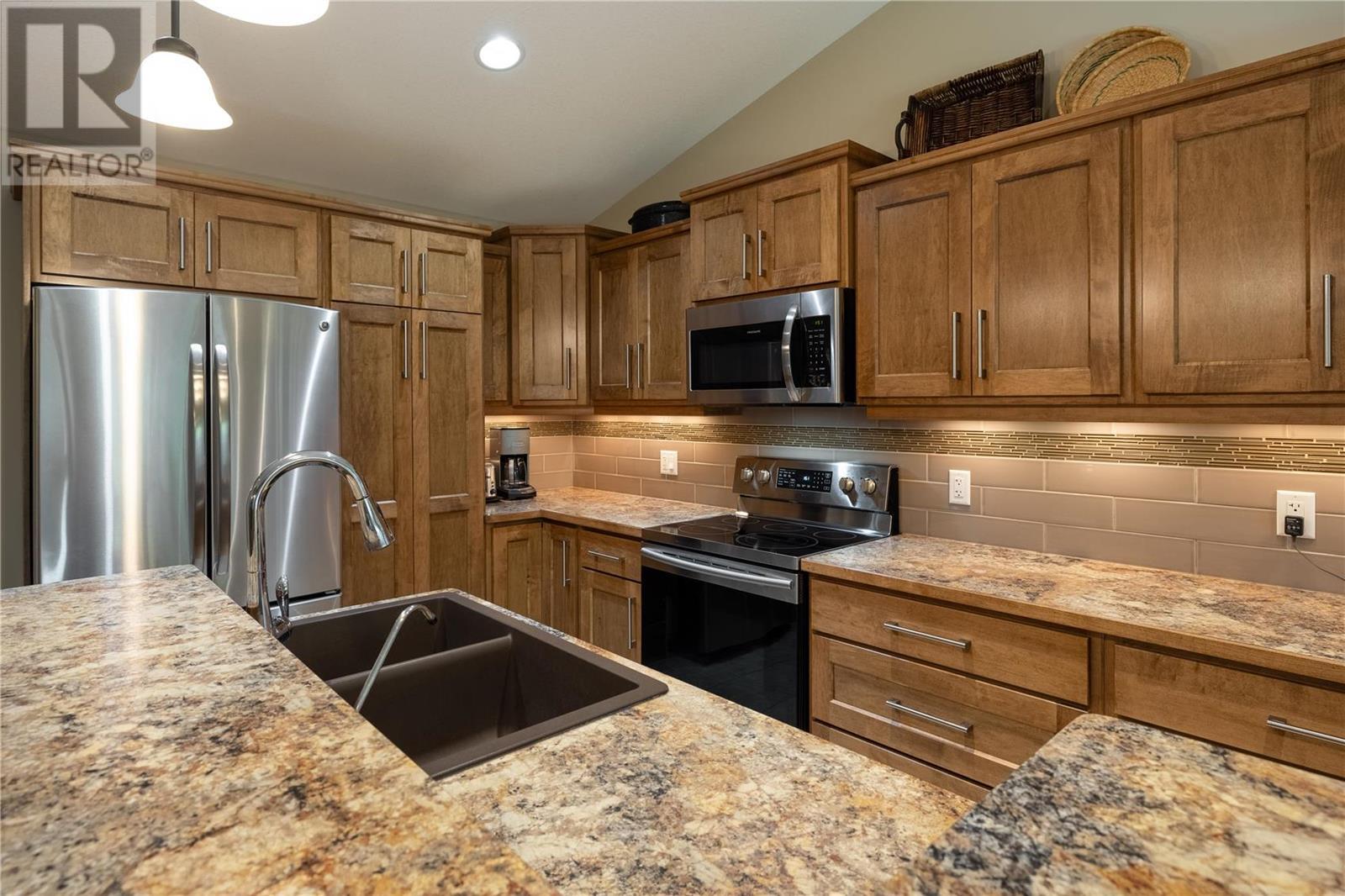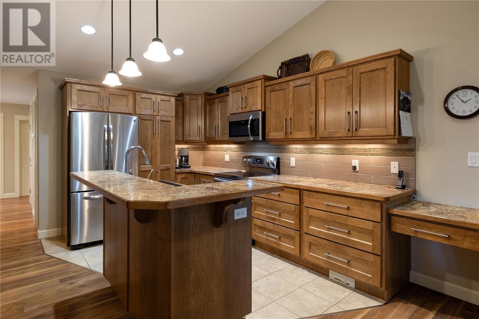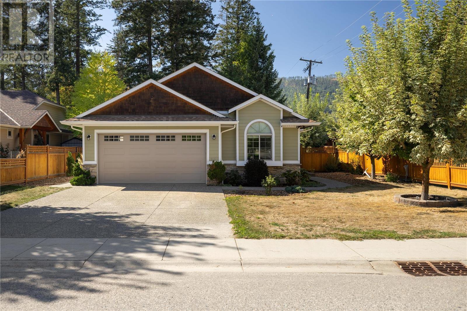 A fantastic 3 bedroom 3 bathroom one level rancher that provides an open concept living area, and offers a guest bedroom with its own ensuite for visitors. Vaulted ceilings and large windows provide lots of natural light. The high quality kitchen with wood cabinetry and island leads to the nicely landscaped backyard and patio area. Other features include gas fireplace in the living room, recently replaced hot water tank, 4' crawl space for storage, and a 18'x18'10" double garage. This is a great option to downsize from a large home but not ready for a strata yet. Location is steps to the community pool, park, museum, and shops, and about 20 minutes to Vernon. This home is move in ready! (id:22211)