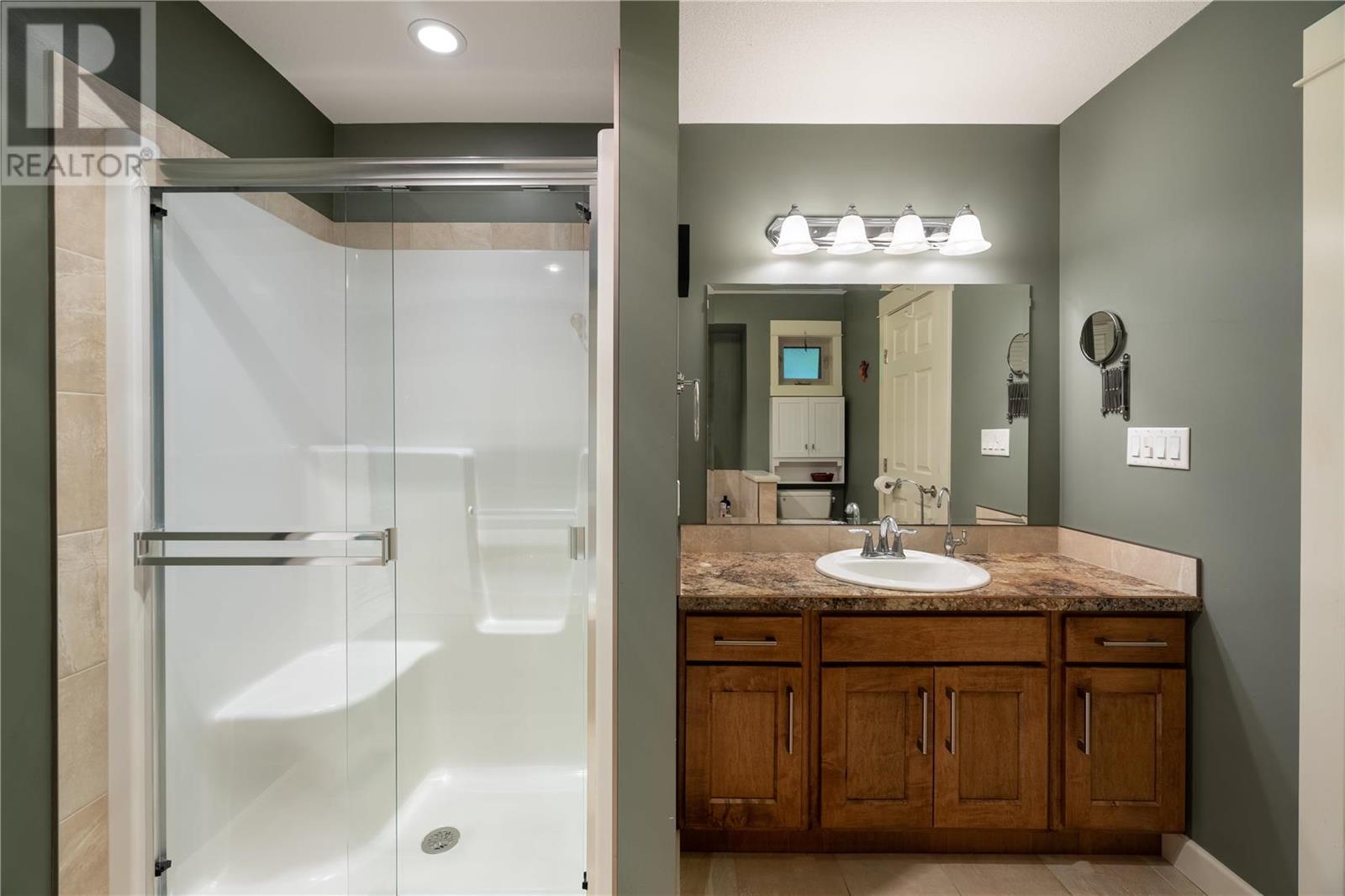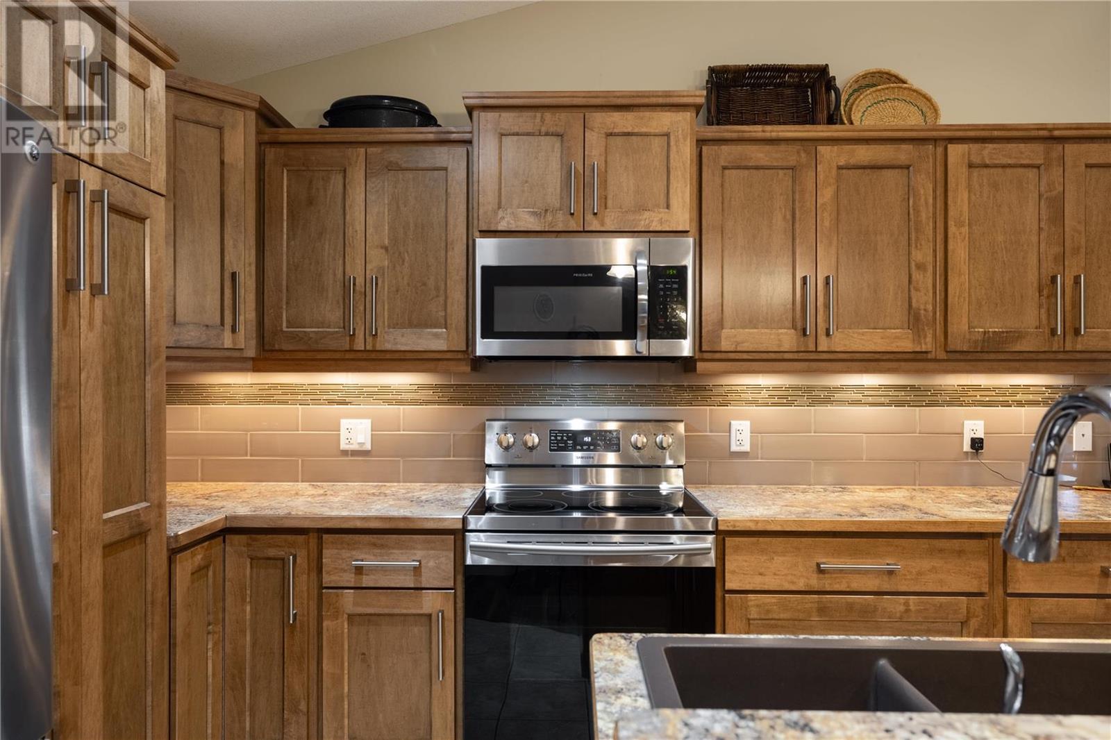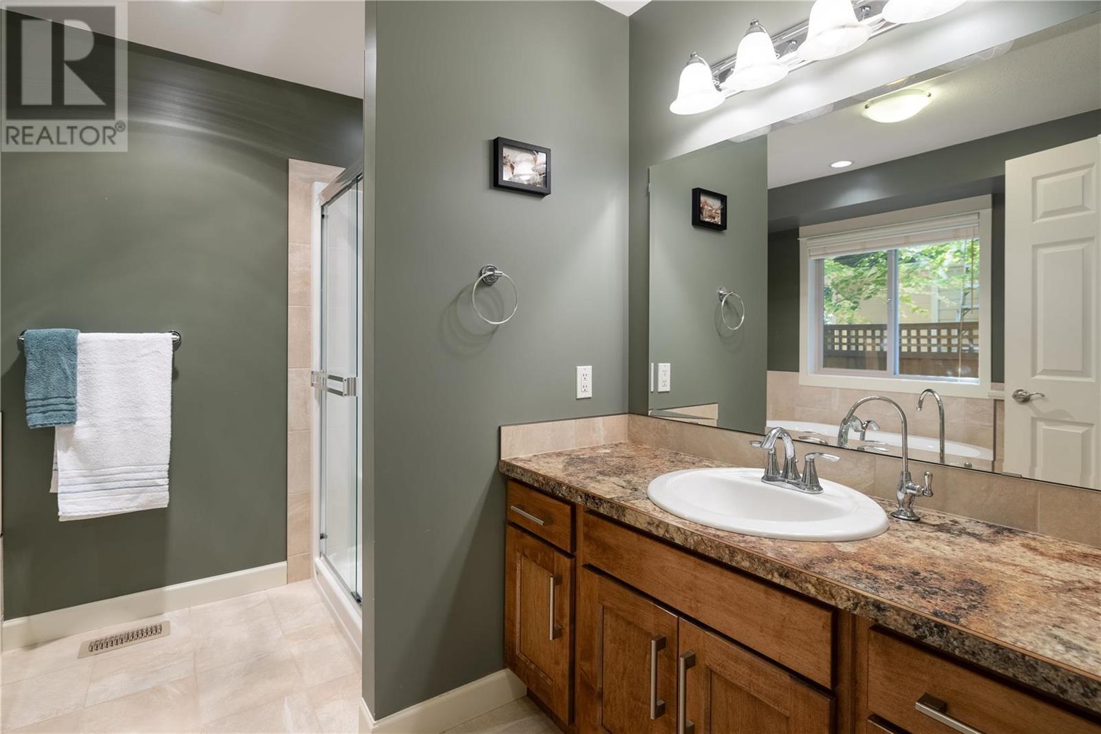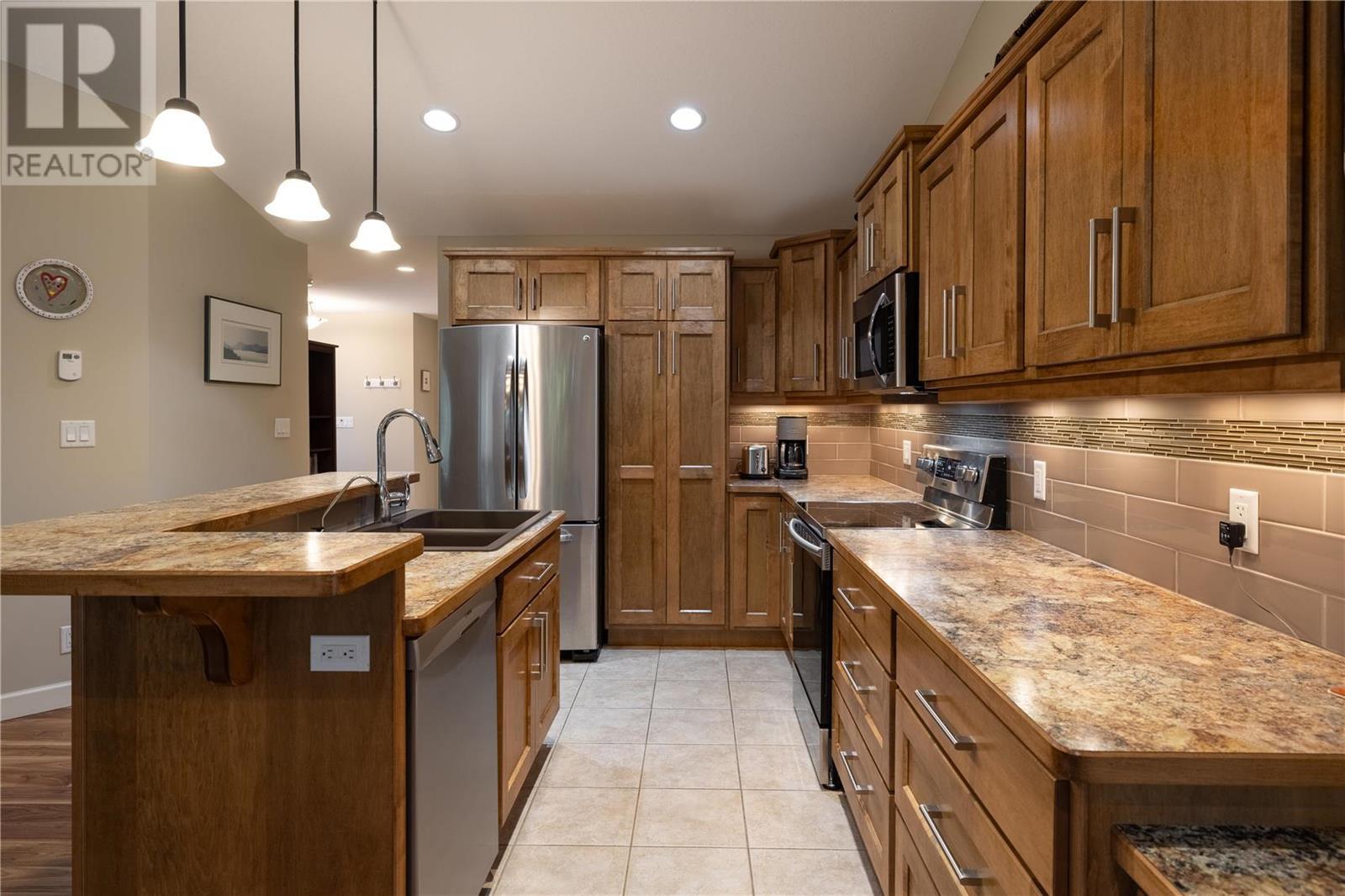 A fantastic 3 bedroom 3 bathroom one level rancher that provides an open concept living area, and offers a guest bedroom with its own ensuite for visitors. Vaulted ceilings and large windows provide lots of natural light. The high quality kitchen with wood cabinetry and island leads to the nicely landscaped backyard and patio area. Other features include gas fireplace in the living room, recently replaced hot water tank, 4' crawl space for storage, and a 18'x18'10" double garage. This is a great option to downsize from a large home but not ready for a strata yet. Location is steps to the community pool, park, museum, and shops, and about 20 minutes to Vernon. This home is move in ready! (id:22211)