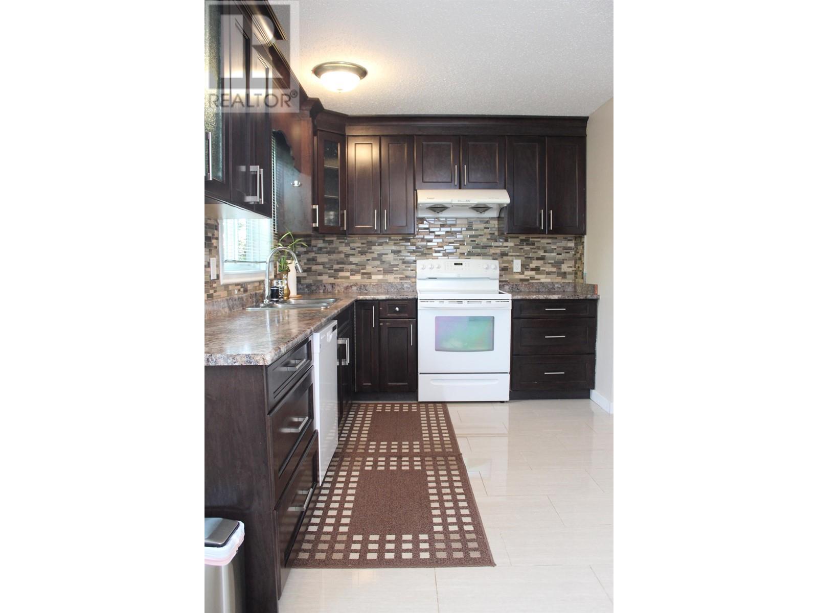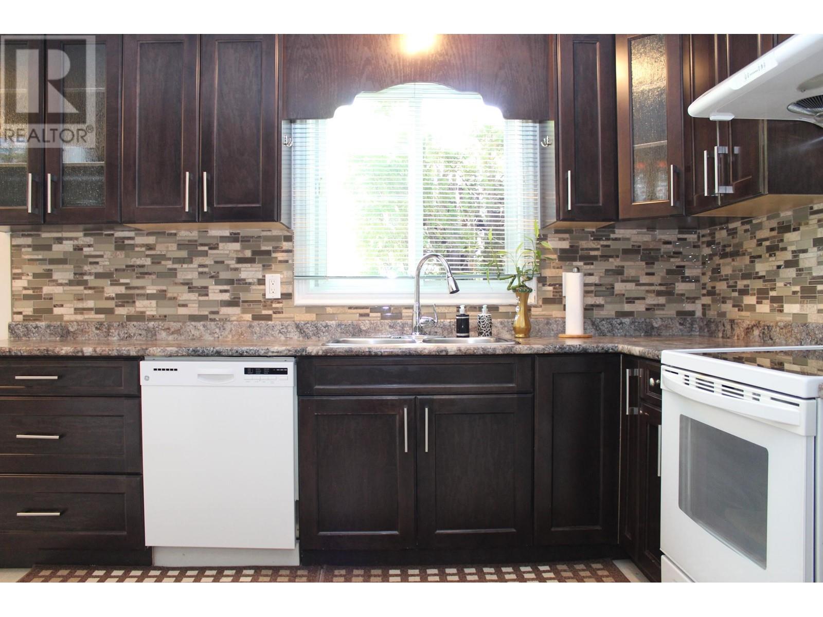 * PREC - Personal Real Estate Corporation. Lovely home looking out to elementary school and playground! The main floor of this house offers sunny living room which adjoins the renovated kitchen and dining room. Lots of cabinetry and storage! Three bedrooms on the main floor and updated 4 piece bathroom. Separate entrance from single garage. Downstairs with large family room with cabinetry and hook ups for kitchenette giving great in-law suite potential! One bedroom, large storage room, laundry/utility room and 4 pcs bathroom. Situated on large corner lot, there is a single enclosed garage and attached storage shed, fully fenced yard, and updates include vinyl windows up, roof 2022, HW tank 2020, furnace 2007. Well maintained home with affordable price tag! (id:22211)