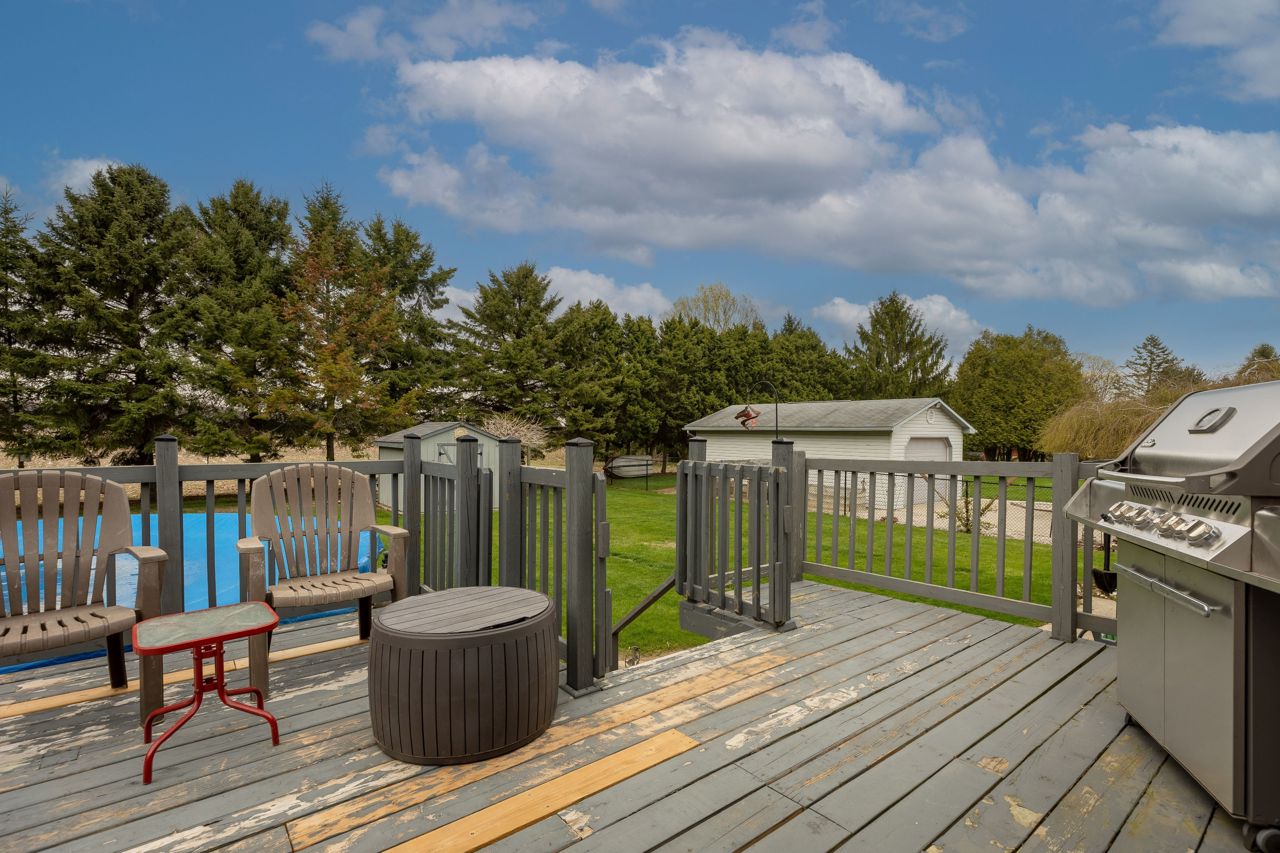 This raised ranch situated on .46 of an acre in the quiet village of Copenhagen is sure to impress. Entering the home you will find a bright living room over looking the front yard that leads to the large kitchen and dining room with a patio door off the back deck and a powder room to the side. Down the hall is 2 guest rooms, the primary bedroom with cheater access to the main bathroom. The lower level is very inviting with all the windows above grade to allow the natural light to pour in. First is a large family room with access to the garage allowing for in-law suite potential, coat closet and a laundry room. Finishing off the lower level is the unfinished utility/storage room, 2 guest bedrooms and a den that could be converted into another bedroom. The exterior has plenty to offer starting with the 27'x26' attached double garage with basement and backyard access, parking for 6+, an elevated back deck with above ground pool, 2 storage sheds and a large private yard with no rear neighbours.