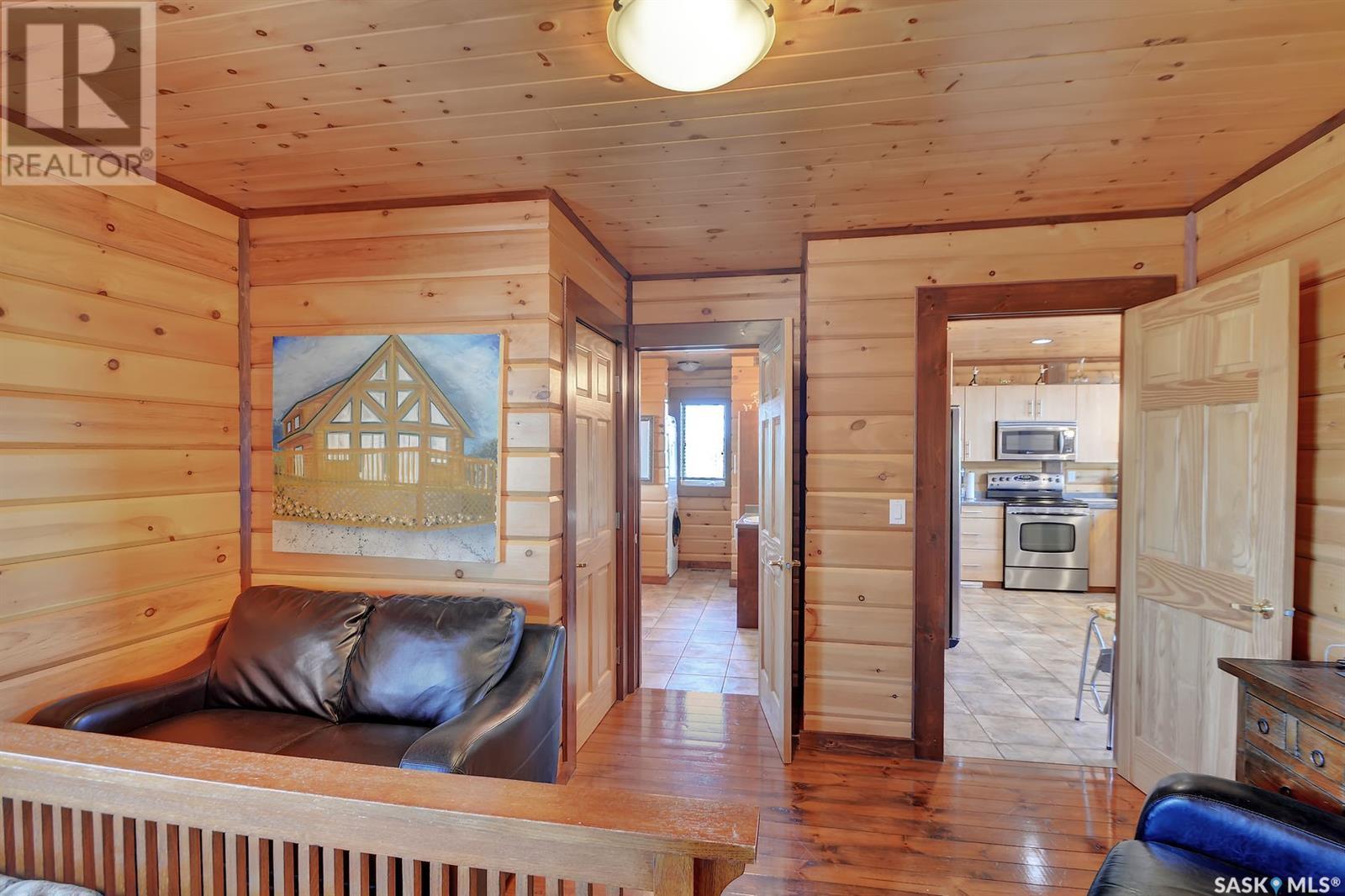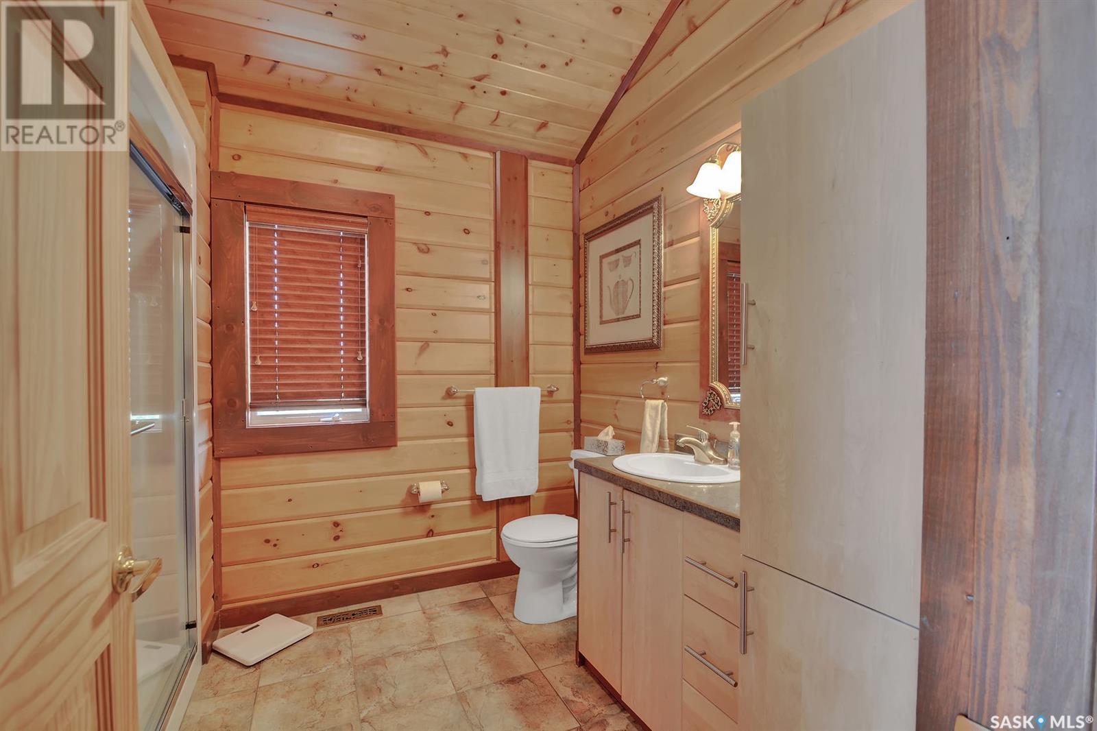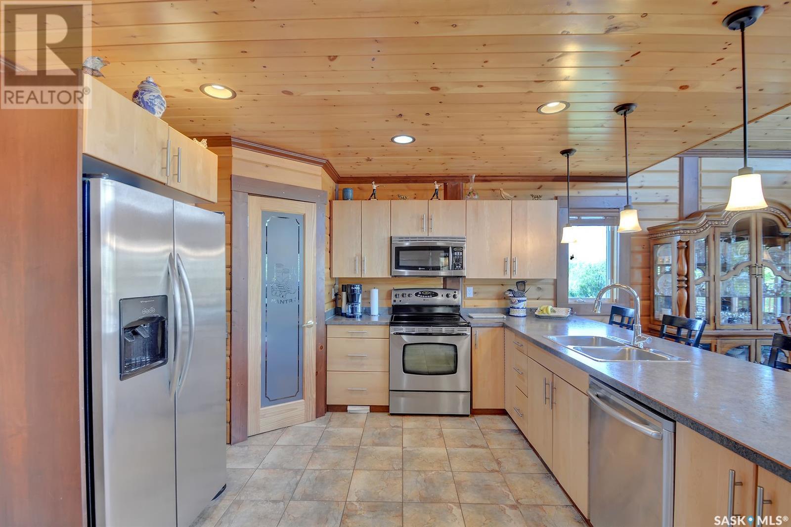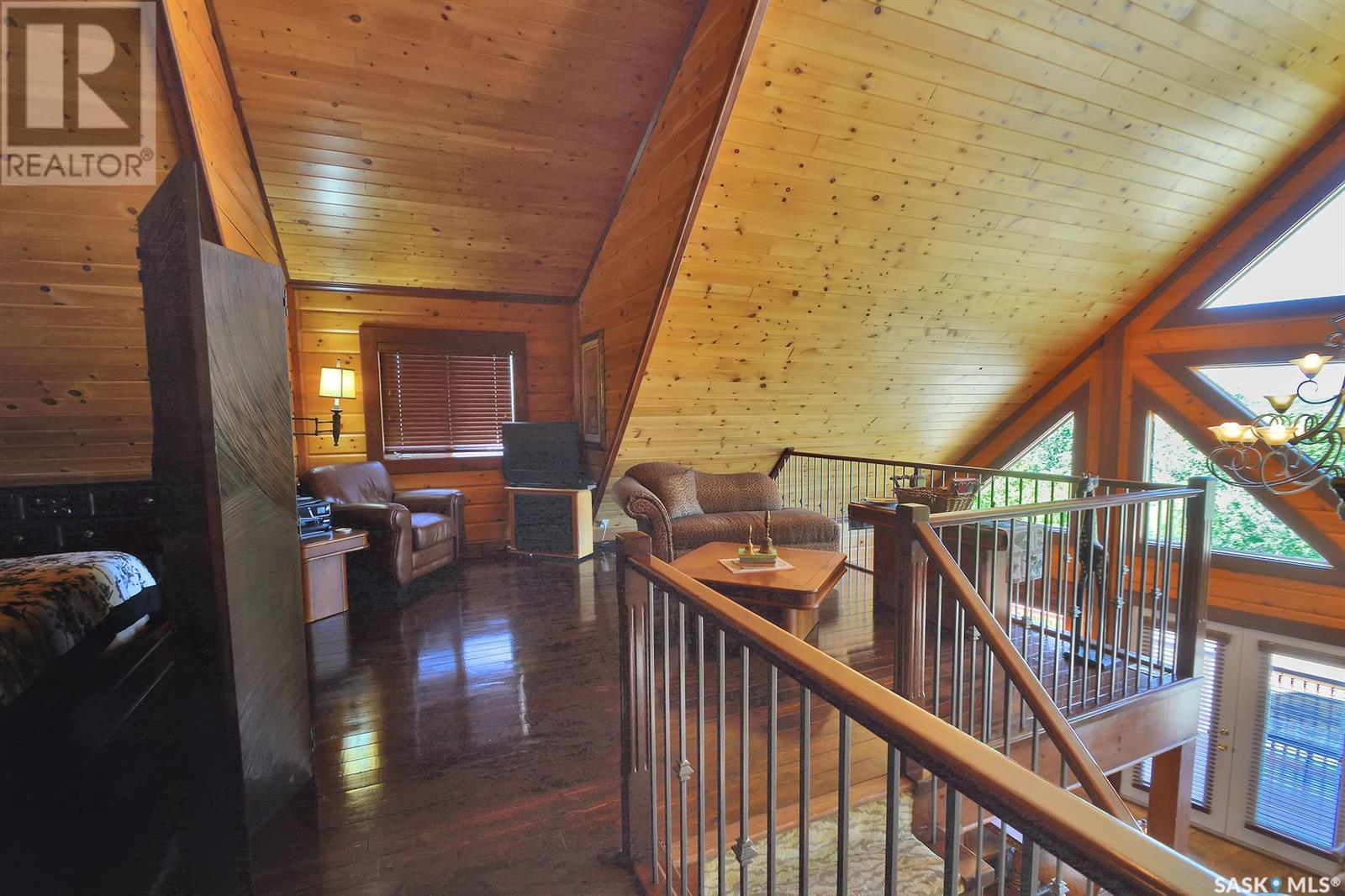 WOW! What else could you ask for? Fully furnished opulent home on double lot offering a 100ft frontage. This beautiful Timber Block engineered home is perched atop the hills of Manitou Beach and shines inside and out! Exceptional street appeal featuring a massive deck to enjoy overlooking lake view. Upon climbing the stairs you enter the foyer spilling into the open living, dining and kitchen spaces that is spellbinding! Featuring exceptional workmanship and the beauty of pine finishings and flooring throughout. The living and dining spaces run across the front of home and feature floor to ceiling doors and windows spilling beautiful natural light into the space. In the evening cozy up in front of the gas fireplace and watch the stars. And wait till you see the chandelier! Kitchen has a very large peninsula with seating and lots of counter space for food prep and entertaining. The master suite is on the main level and cleverly shares access to the main bath/laundry which has a walk in shower, show stopping deep soaker claw foot tub and tastefully concealed washer & dryer. The loft is a spacious 540 sq. ft. with shed dormers. This level offers a "swing space" (bedroom/media/ office) many options to make it your own haven with a magnificent view. There is a 3 piece bath on this level as well with a 2 person walk in shower. The basement has a large recreation room with wet bar and gas fireplace. Great space for family fun for kids and adults alike. This level is completed with 2 more large bedrooms, 3 piece bath and utility room. Floors on lower level with the exception of the bathroom are cork, soft and warm on the feet. So many details: R30 walls, R40 ceiling, metal roofing, triple concrete drive, custom Hunter Douglas blinds, natural gas BBQ hookup, central vac, air conditioning, stainless appliances, large pantry and the storage and closet space is exceptional! If you are looking for one of the nicest homes in one of the best locations at Manitou Beach this is it! (id:22211)