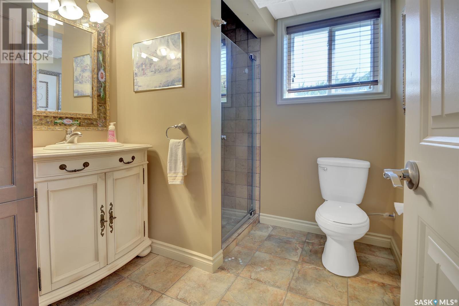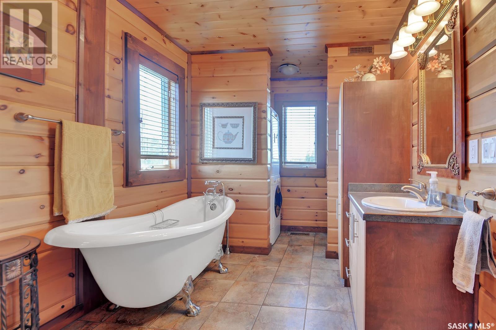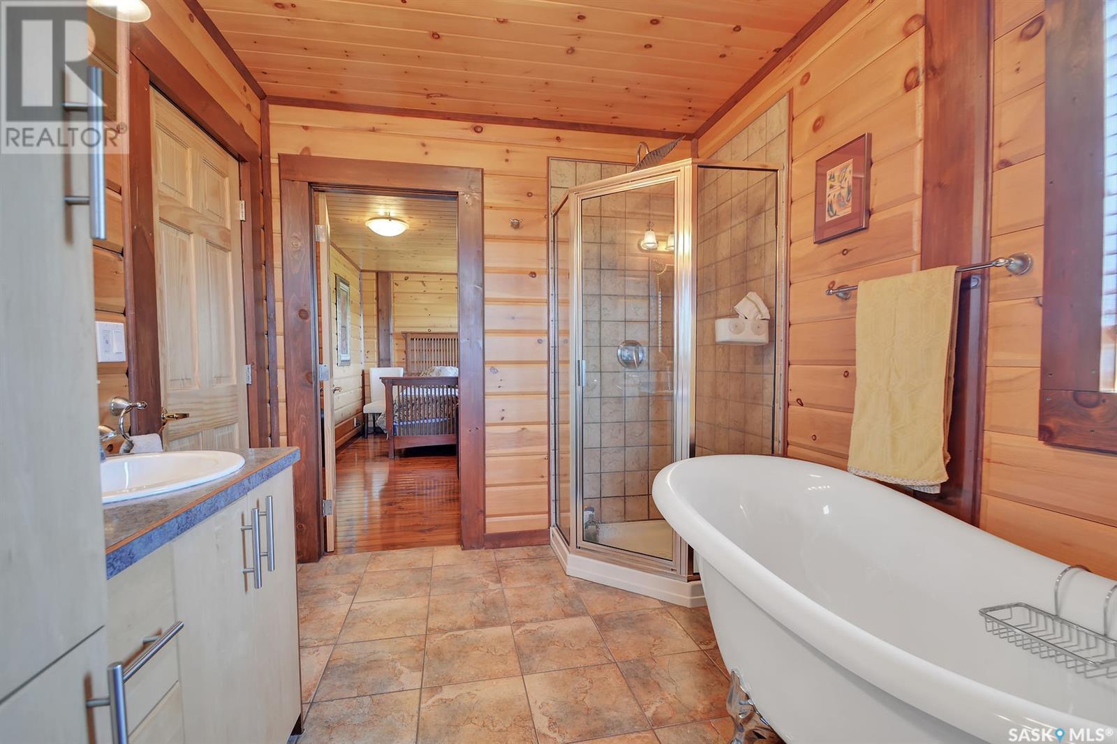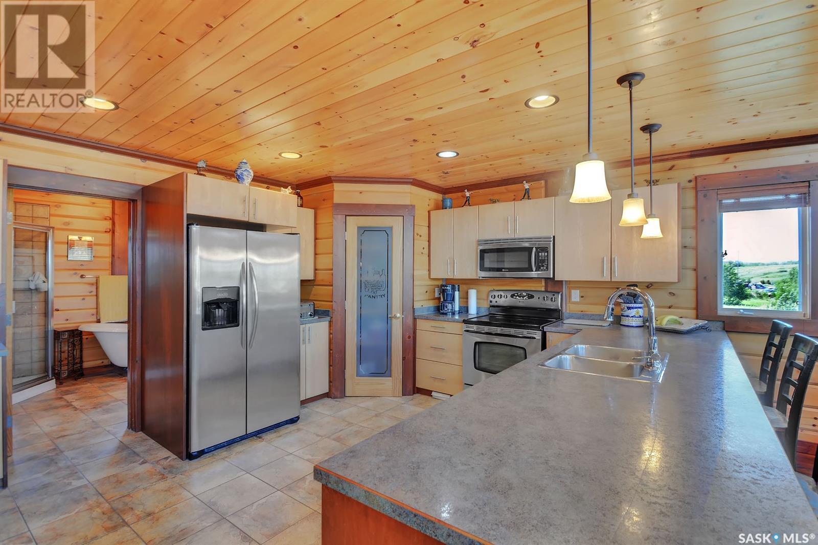 WOW! What else could you ask for? Fully furnished opulent home on double lot offering a 100ft frontage. This beautiful Timber Block engineered home is perched atop the hills of Manitou Beach and shines inside and out! Exceptional street appeal featuring a massive deck to enjoy overlooking lake view. Upon climbing the stairs you enter the foyer spilling into the open living, dining and kitchen spaces that is spellbinding! Featuring exceptional workmanship and the beauty of pine finishings and flooring throughout. The living and dining spaces run across the front of home and feature floor to ceiling doors and windows spilling beautiful natural light into the space. In the evening cozy up in front of the gas fireplace and watch the stars. And wait till you see the chandelier! Kitchen has a very large peninsula with seating and lots of counter space for food prep and entertaining. The master suite is on the main level and cleverly shares access to the main bath/laundry which has a walk in shower, show stopping deep soaker claw foot tub and tastefully concealed washer & dryer. The loft is a spacious 540 sq. ft. with shed dormers. This level offers a "swing space" (bedroom/media/ office) many options to make it your own haven with a magnificent view. There is a 3 piece bath on this level as well with a 2 person walk in shower. The basement has a large recreation room with wet bar and gas fireplace. Great space for family fun for kids and adults alike. This level is completed with 2 more large bedrooms, 3 piece bath and utility room. Floors on lower level with the exception of the bathroom are cork, soft and warm on the feet. So many details: R30 walls, R40 ceiling, metal roofing, triple concrete drive, custom Hunter Douglas blinds, natural gas BBQ hookup, central vac, air conditioning, stainless appliances, large pantry and the storage and closet space is exceptional! If you are looking for one of the nicest homes in one of the best locations at Manitou Beach this is it! (id:22211)