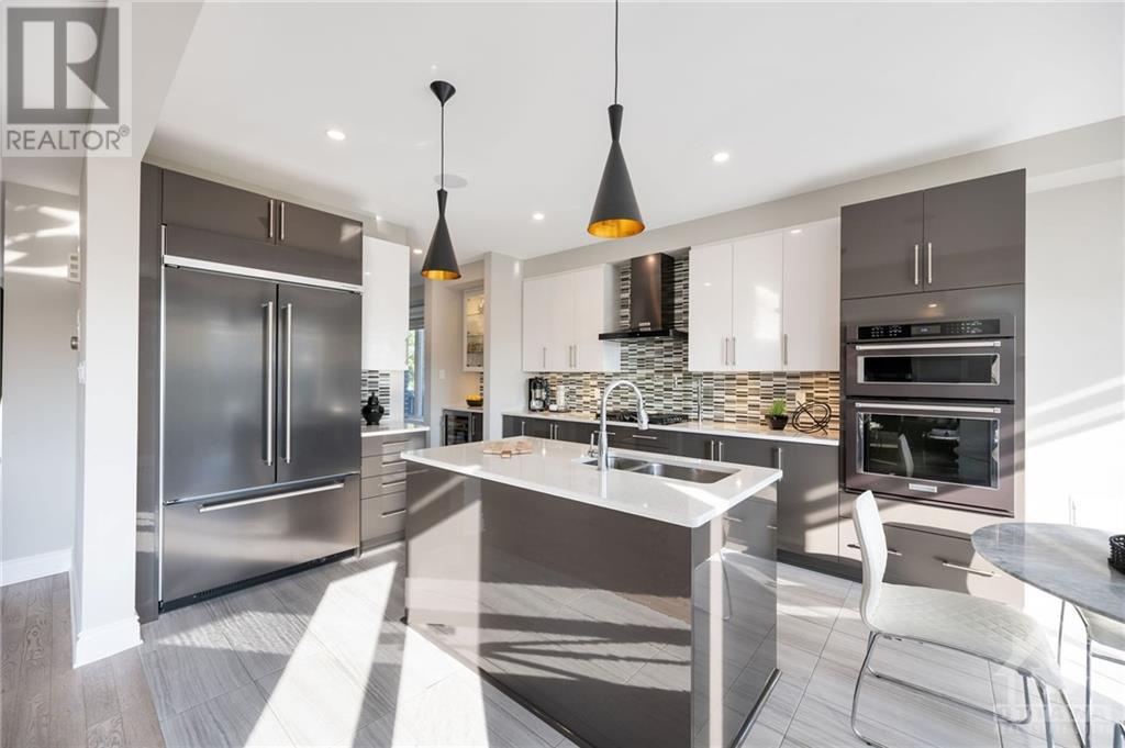Located in the sought-after Mahogany community in Manotick Village, this is a gem in a prestigious lifestyle community. Discover the essence of luxury living! Immaculate home boasting 74ft frontage on a premium lot! This stunning model features every upgrade including 9ft ceilings & 8ft doorways, over-sized windows with an airy open floor plan, custom blinds and a built-in sound system with ceiling speakers throughout. A chef's kitchen with KitchenAid built-ins including a 48" fridge, gas range top, double wall oven combo, and Sub-Zero wine cooler. Walk-in pantry adds to the allure. Great room showcases a Napoleon gas fireplace with custom mantle. Upstairs: 4 spacious bedrooms, two with ensuites, two sharing a Jack and Jill. Master bedroom showcases beautiful trim work and dual walk-in closets. Finished basement offers a 5th bedroom, full bath, and ample entertainment space. Step outside to paradise with your own automatic lawn sprinkler system. Begin making Manotick memories today! (id:22211)