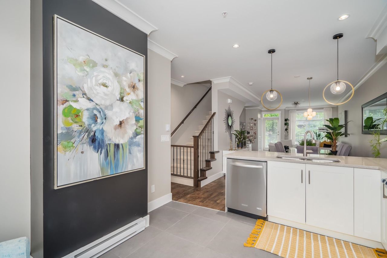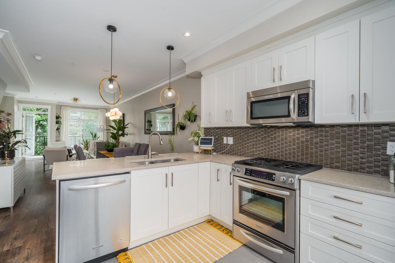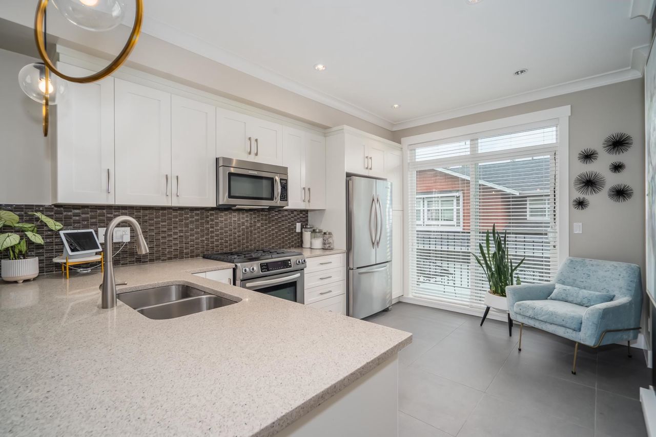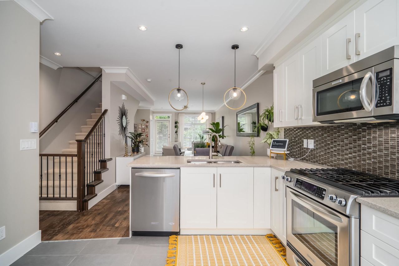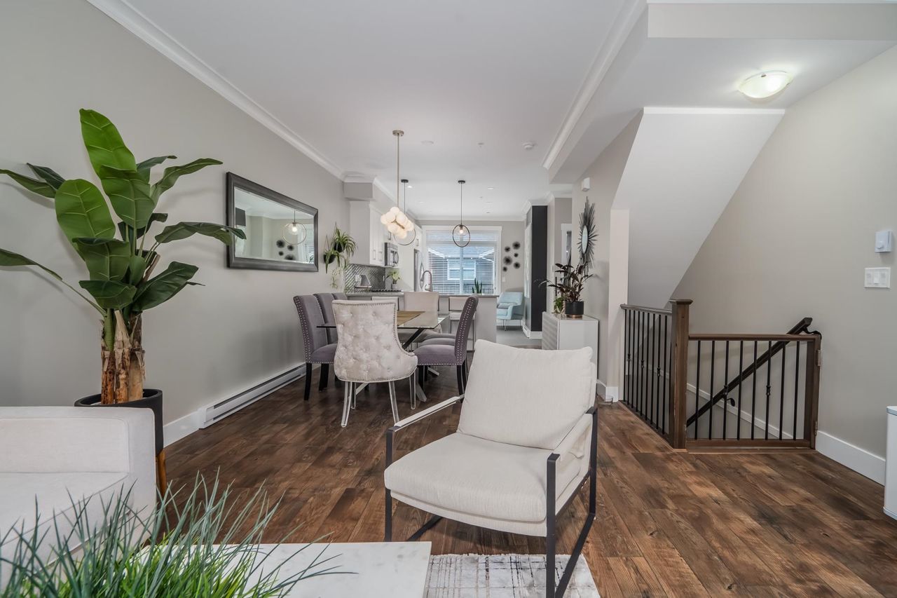 Gorgeous 1467 sq ft executive style townhome in "TWO BIRDS" complex built by Wallmark available for you! Features upgraded laminate floors & stainless steel appliances, open concept style, loads of kitchen cabinets, quartz counters, tiled backsplash, 3 bedrooms up, 2 piece powder on main floor and 2 baths up with master bedroom with 4 piece ensuite with double sinks and walk in shower. South facing deck and patio, fenced yard, ARTIFICIAL TURF, double tandem garage with DEN/OFFICE room and access to yard. Complex has a playground and ample visitor parking. Close proximity to Alexander Robinson & Kanaka Elementary School! Close to bus stop! Desirable residential area - Come check it out!