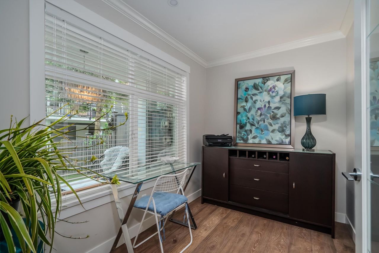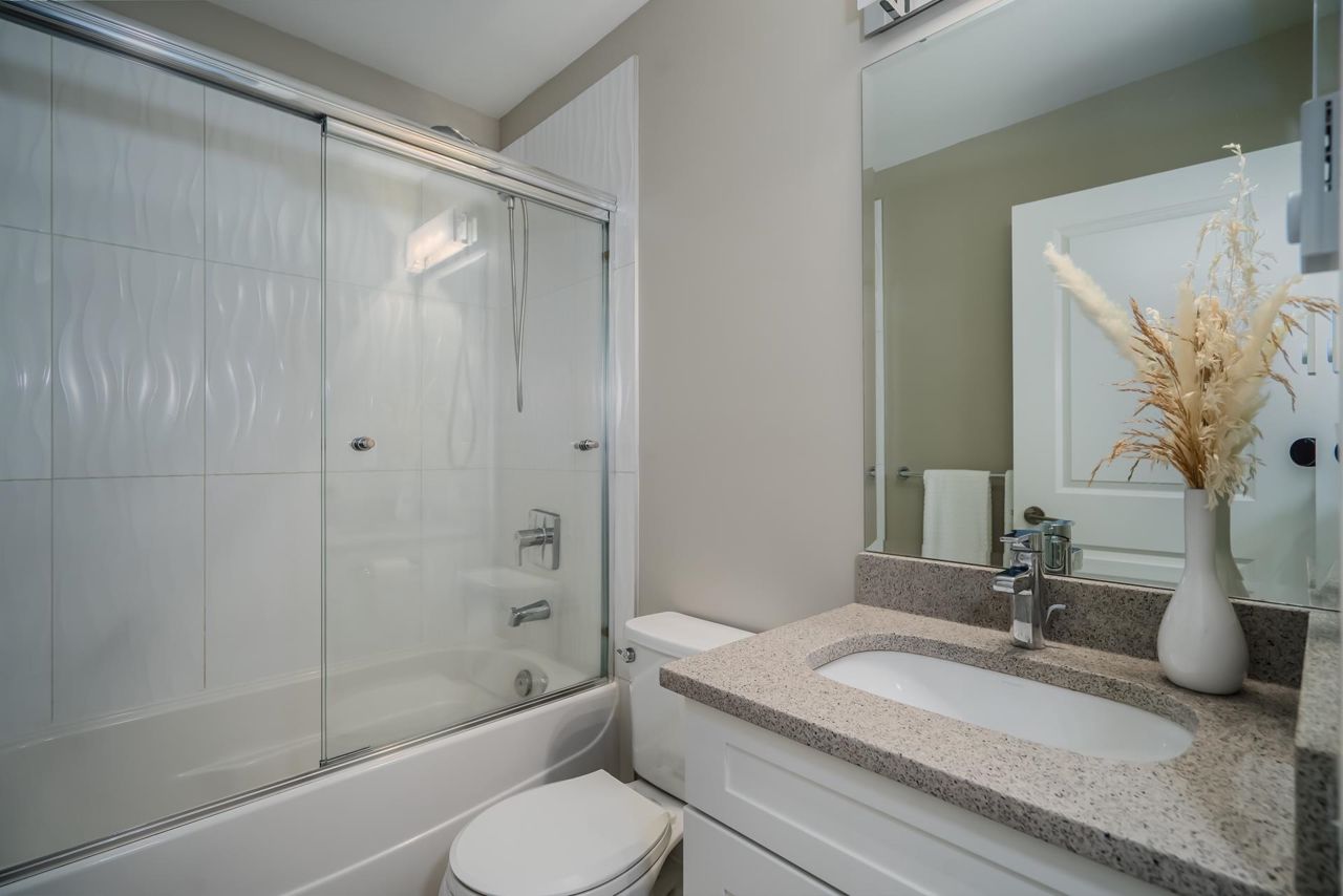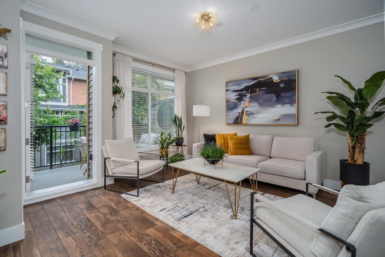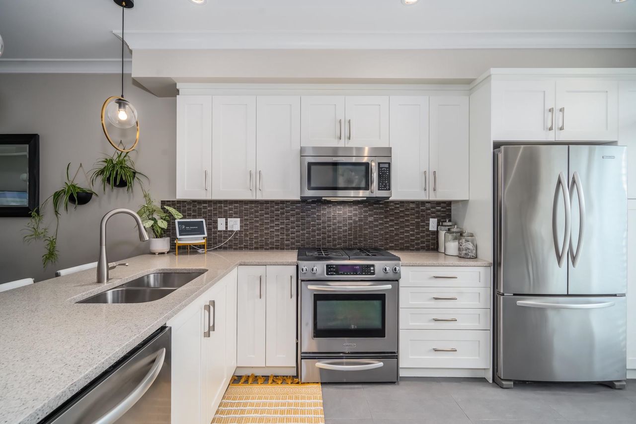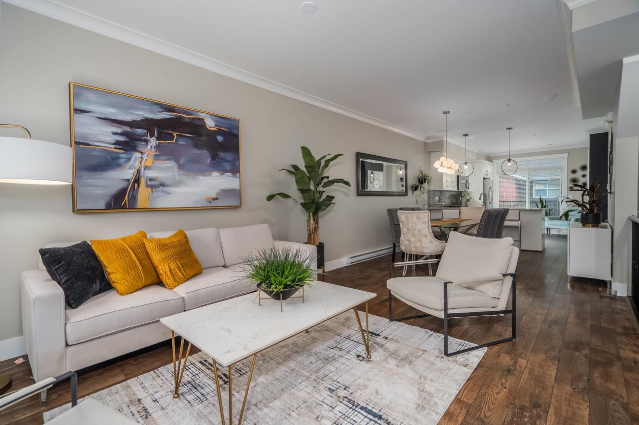 Gorgeous 1467 sq ft executive style townhome in "TWO BIRDS" complex built by Wallmark available for you! Features upgraded laminate floors & stainless steel appliances, open concept style, loads of kitchen cabinets, quartz counters, tiled backsplash, 3 bedrooms up, 2 piece powder on main floor and 2 baths up with master bedroom with 4 piece ensuite with double sinks and walk in shower. South facing deck and patio, fenced yard, ARTIFICIAL TURF, double tandem garage with DEN/OFFICE room and access to yard. Complex has a playground and ample visitor parking. Close proximity to Alexander Robinson & Kanaka Elementary School! Close to bus stop! Desirable residential area - Come check it out!