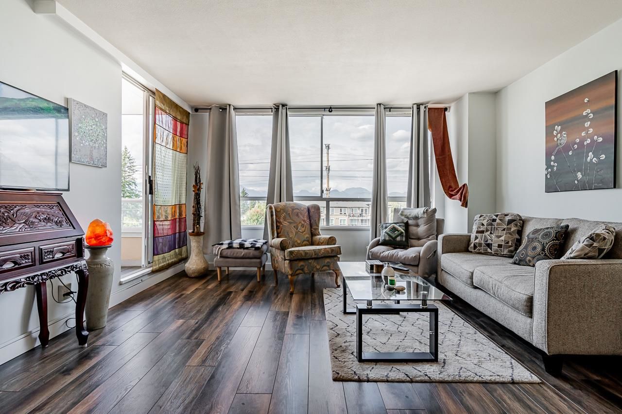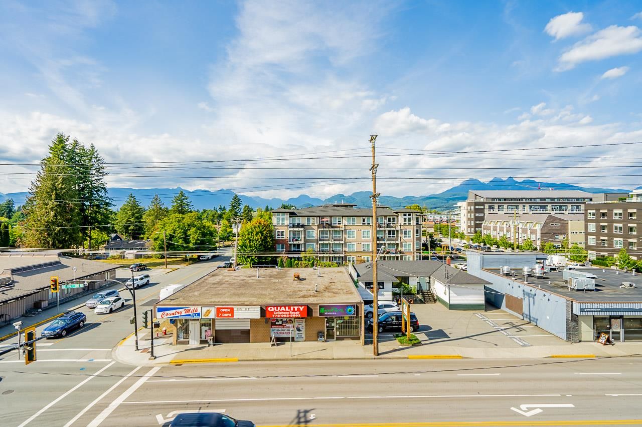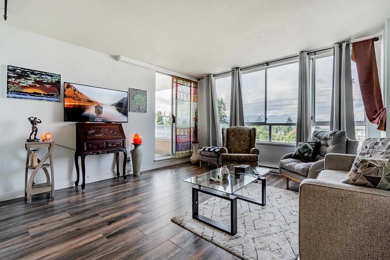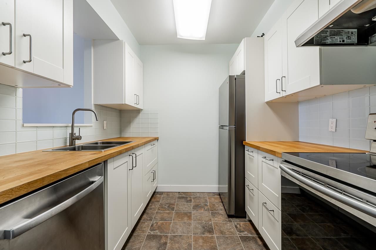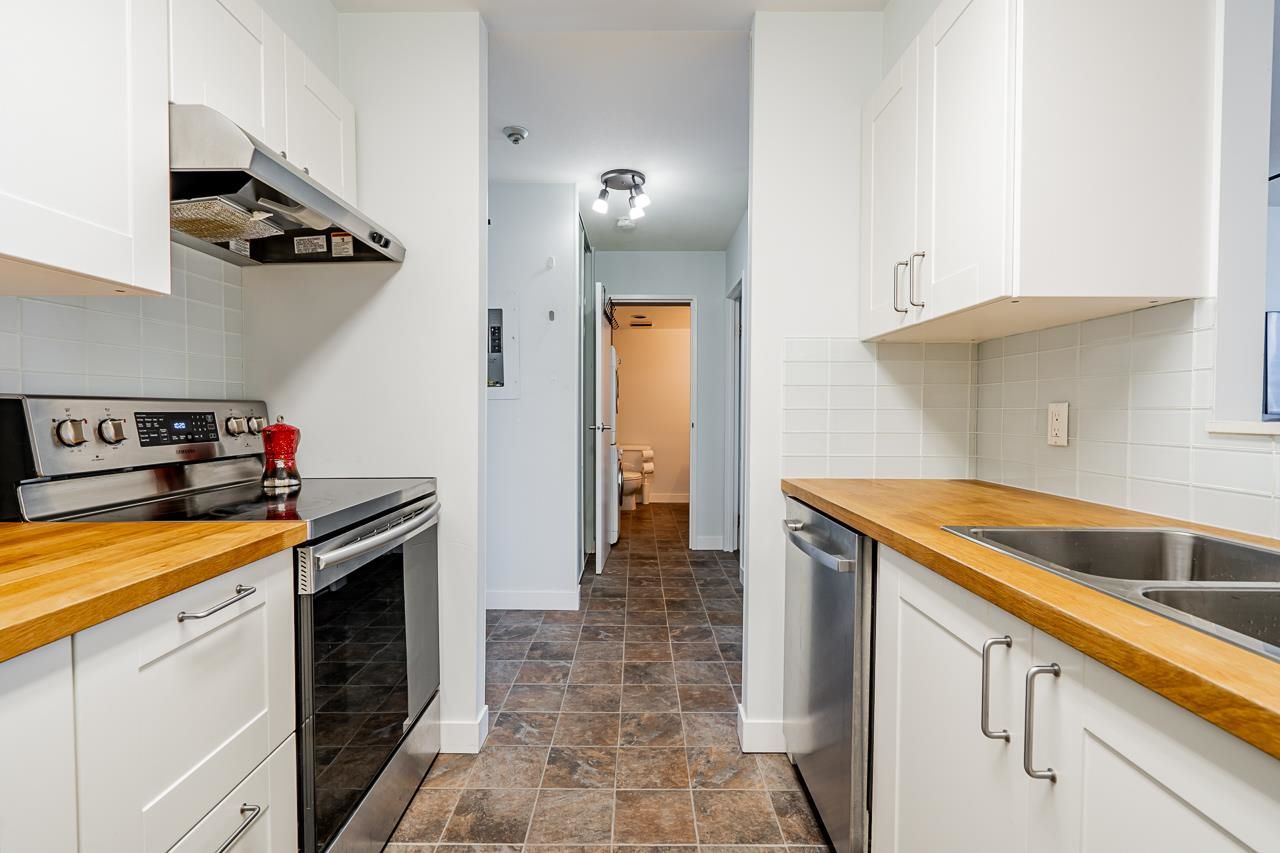WOW! UPDATED 4th floor unit in the CONCRETE Gordon Towers! NEW shaker style cabinets, NEW butcher block counter tops, NEW backsplash, NEW Stainless Steel kitchen appliances, NEW wide plank laminate floor, NEW paint, NEW light fixtures, NEW floor to ceiling closet doors! NOTHING to do here but move in and enjoy this SPACIOUS one bedroom home with a northern MOUNTAIN VIEW and covered deck! HOT WATER included in the LOW strata fee! WALK to the West Coast Express and all the amenities of downtown Maple Ridge!