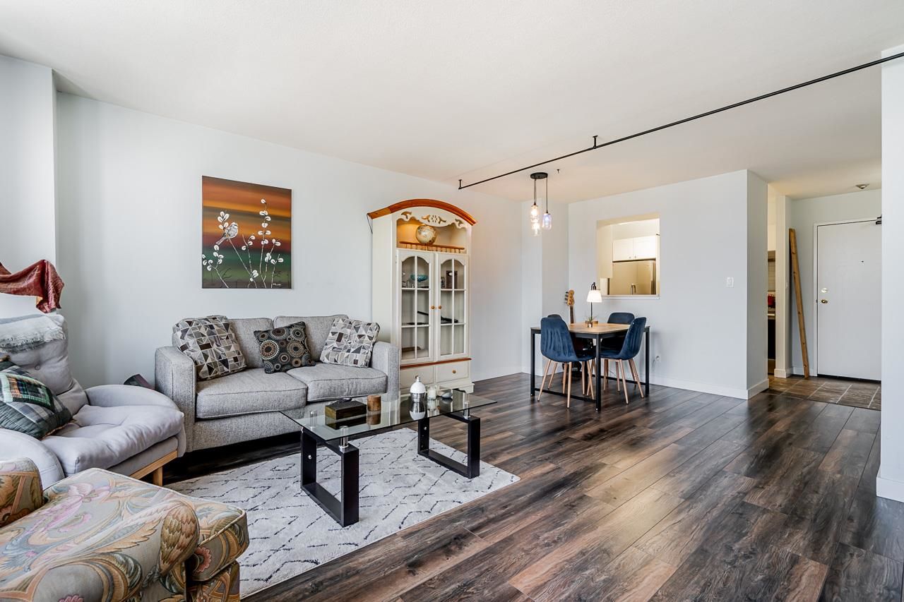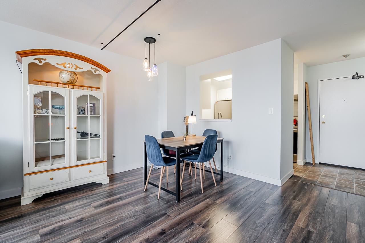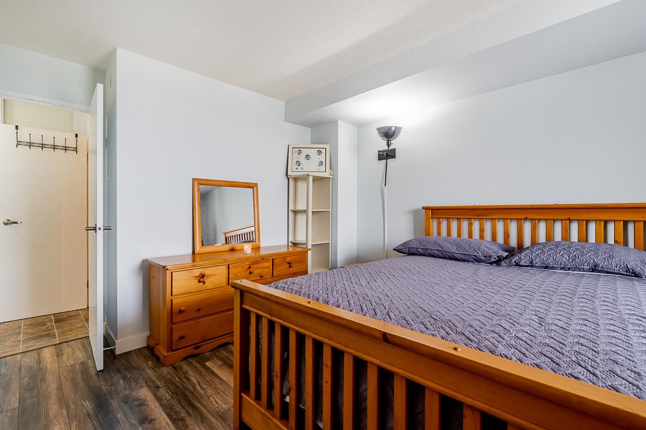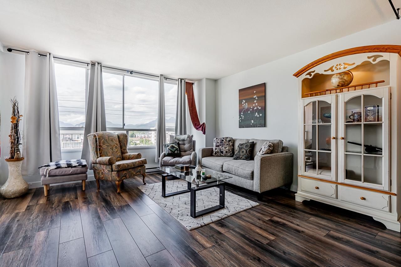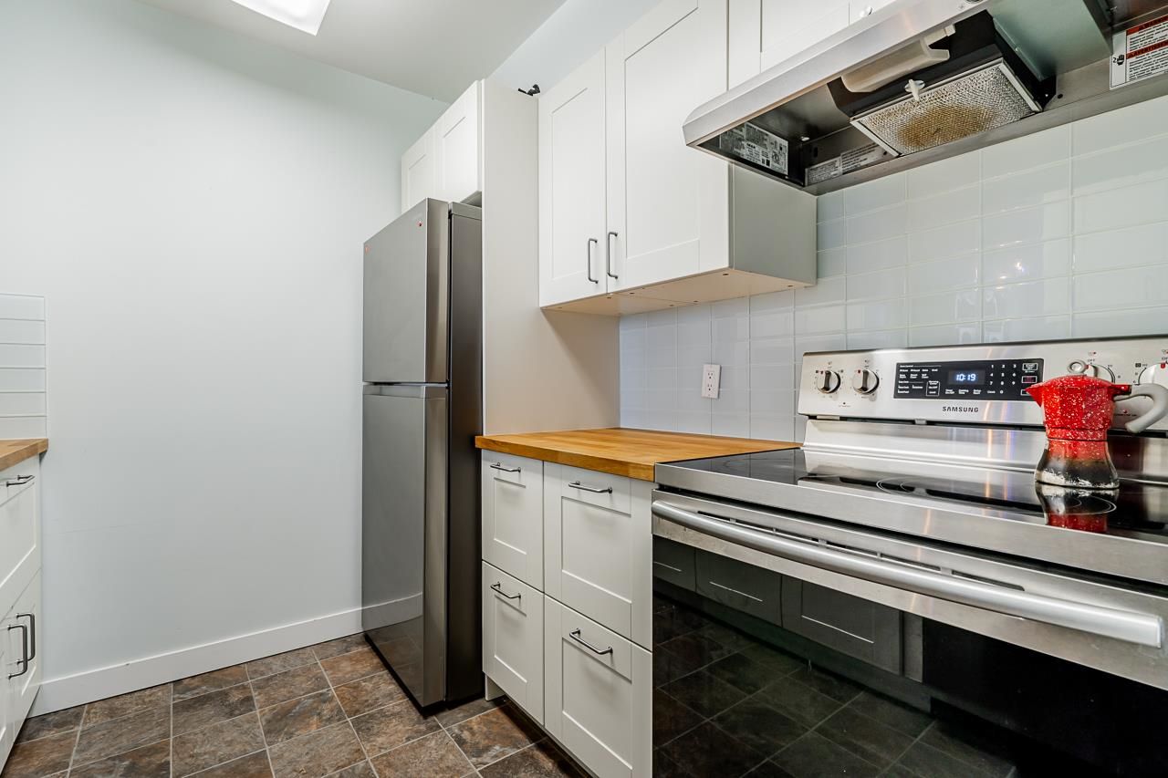 WOW! UPDATED 4th floor unit in the CONCRETE Gordon Towers! NEW shaker style cabinets, NEW butcher block counter tops, NEW backsplash, NEW Stainless Steel kitchen appliances, NEW wide plank laminate floor, NEW paint, NEW light fixtures, NEW floor to ceiling closet doors! NOTHING to do here but move in and enjoy this SPACIOUS one bedroom home with a northern MOUNTAIN VIEW and covered deck! HOT WATER included in the LOW strata fee! WALK to the West Coast Express and all the amenities of downtown Maple Ridge!