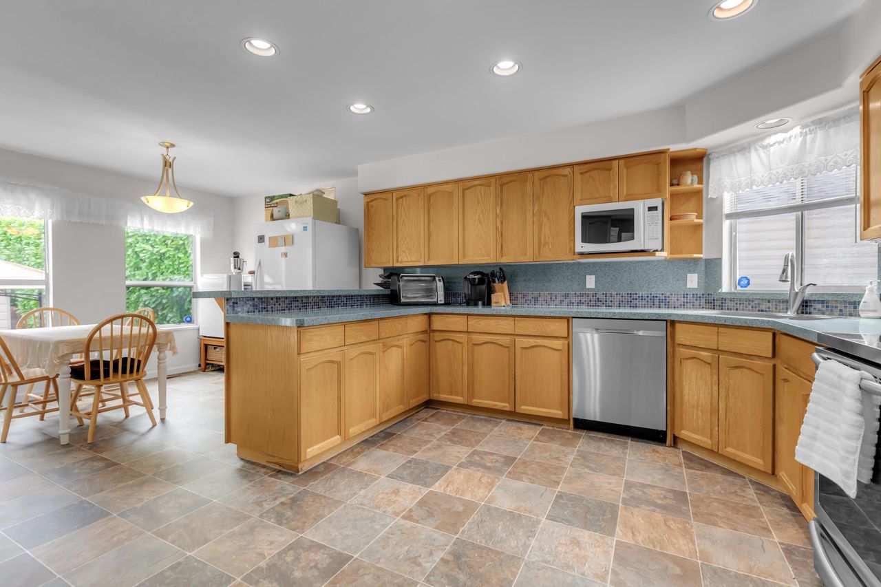WELCOME HOME TO THIS WONDERFUL FAMILY SIZED HOME, Lovely 2 Storey with Fully FINISHED Basement. Perfect for the Growing Family. Located in WEST MAPLE RIDGE close to Great Schools, PARKS, Endless Dykes & the PUMPKIN PATCH. Features include GRANITE COUNTERTOPS in Kitchen, Oak Cabinets, Stainless Appliances Plus Eating Bar & Separate Eating Area. 2 gas F/P, Large Family Room off kitchen open to totally private backyard. There are 3 large bedrooms upstairs plus one huge Bdrm in the basement (perfect for Guests, Teenagers or Inlaws). Home has been well cared for with upgrades that include new furnace & heat pump in 2013. All Poly B plumbing has been replace with Pex, newer hot water tank. AC roof is approx. 10 yrs old.