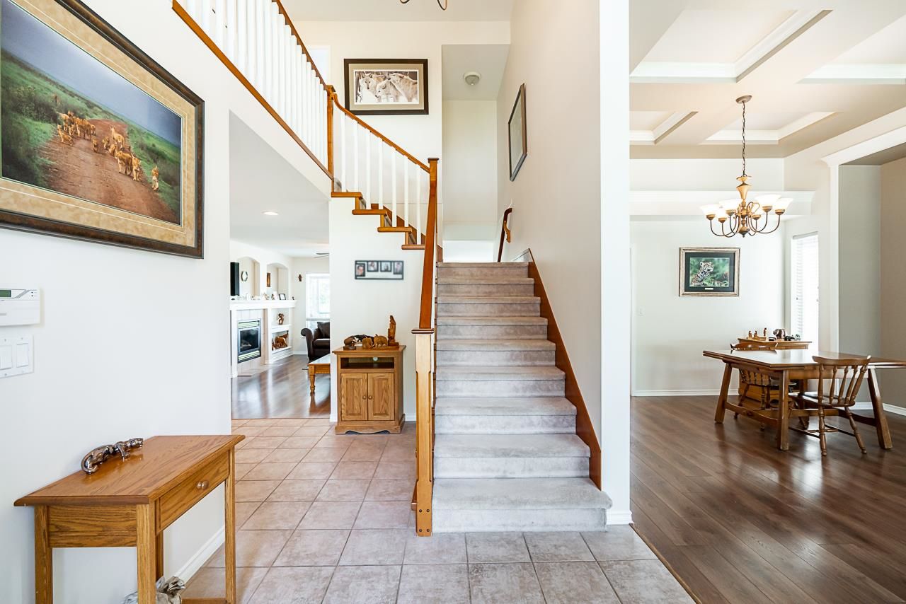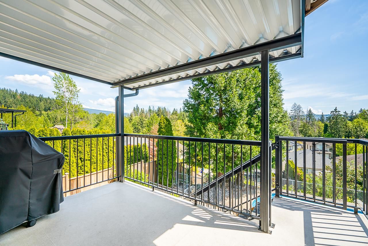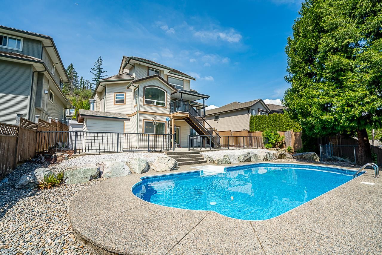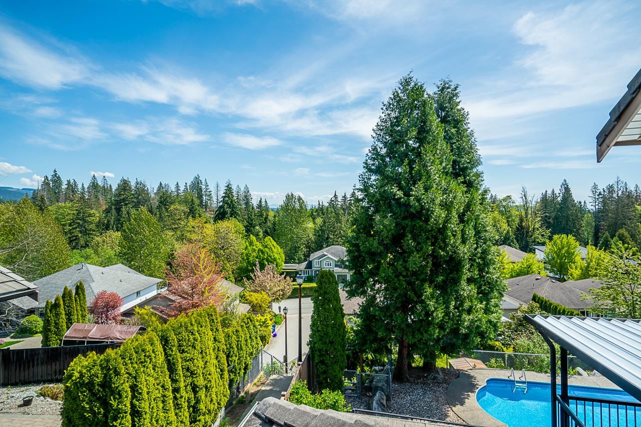 Silver Valley awaits you! In the desirable Rockridge neighbourhood, this is an absolutely BEAUTIFUL 3 storey home w/fully finished walk-out basement that leads out to a covered patio & large, low-maintenance backyard, featuring a 16 x 32' in-ground heated pool. This home boasts views of Mt. Baker & the Golden Ears mountains. Bright & open floor plan with tons of features which include split staircase, 12' ceiling in living room & dining room with custom designed coffered ceiling, 3 full baths and 2 piece powder room, tiled entry with 18' ceiling, built-in bookshelf in large family room, concrete tile roof - the list goes on! Basement can easily be converted into a suite, which currently has a wet-bar and massive rec room. This home has been meticulously maintained and it shows!