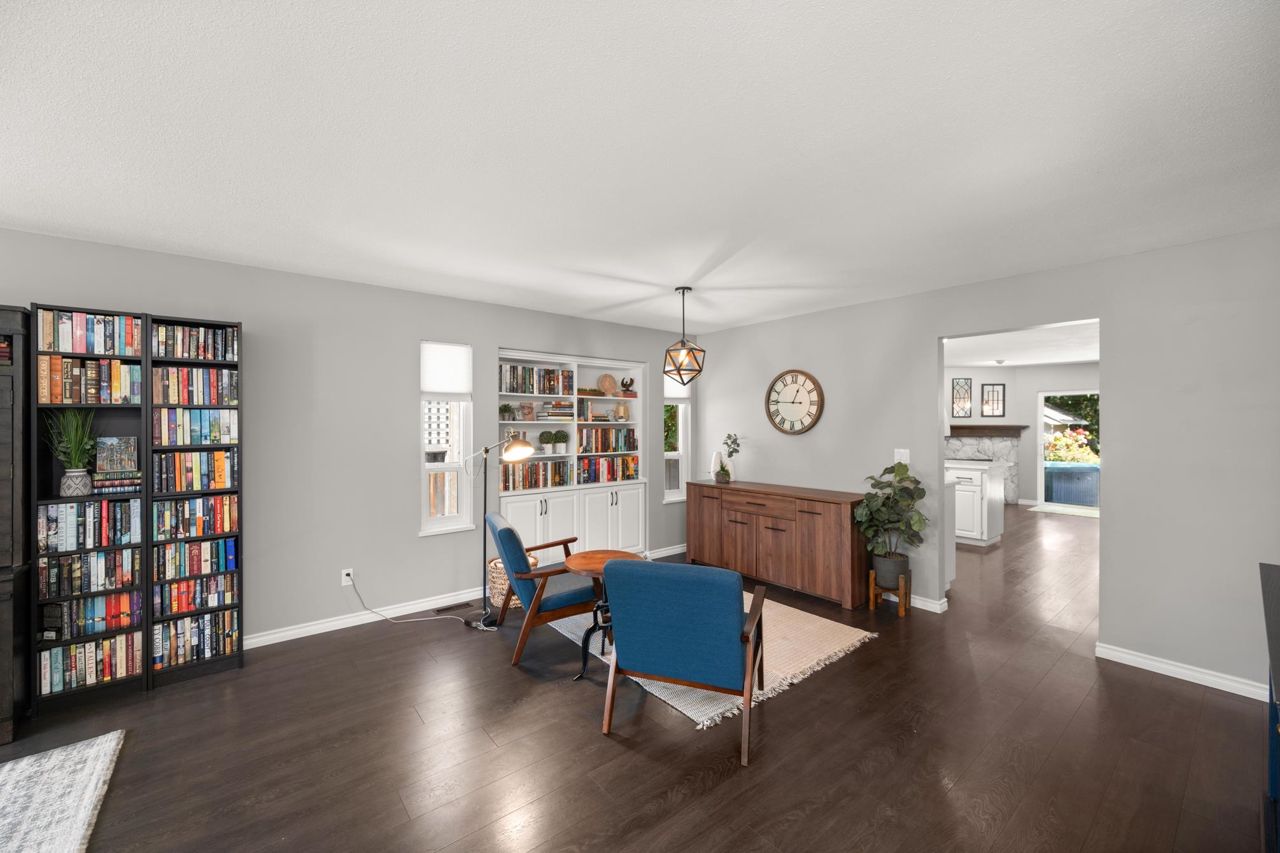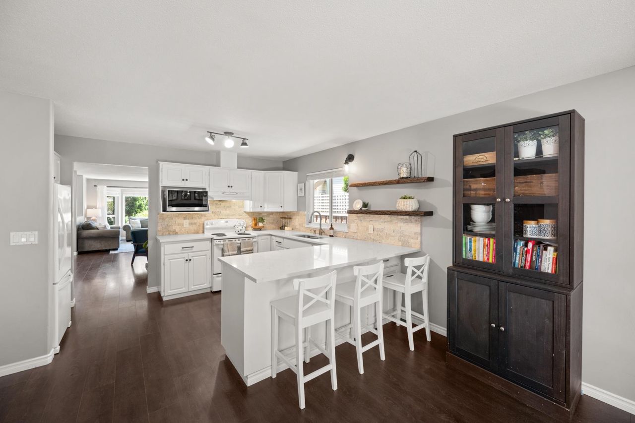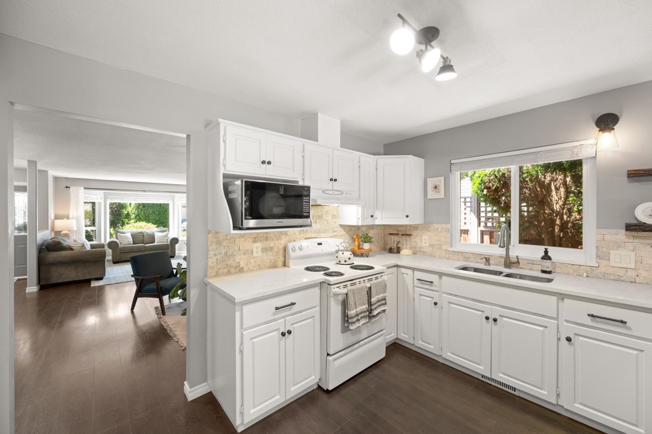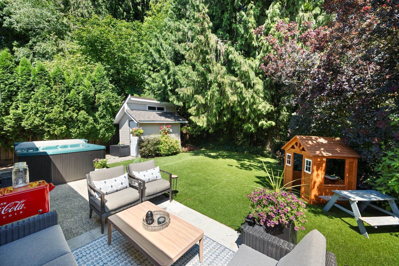 Welcome to the sought after neighbourhood of Kanaka Creek! This tastefully updated 3 bed 2 bath unique rancher style home with a bonus loft/media room sits on a 6003 Sqft lot backing onto the protected green space of Kanaka Creek. Featuring spacious single level living with laminate flooring throughout, updated kitchen with quartz countertops and updated backsplash, fully renovated bathrooms and updated laundry room with new appliances and built in cabinetry. Step out to the private backyard oasis surrounded by nature with recently installed high end no maintenance turf, hot tub and storage shed. Other highlights: massive bonus attic storage, EV charging, built in vacuum. Conveniently located mins from transit, parks, schools and shopping. Perfect home for upsizers and downsizers alike!