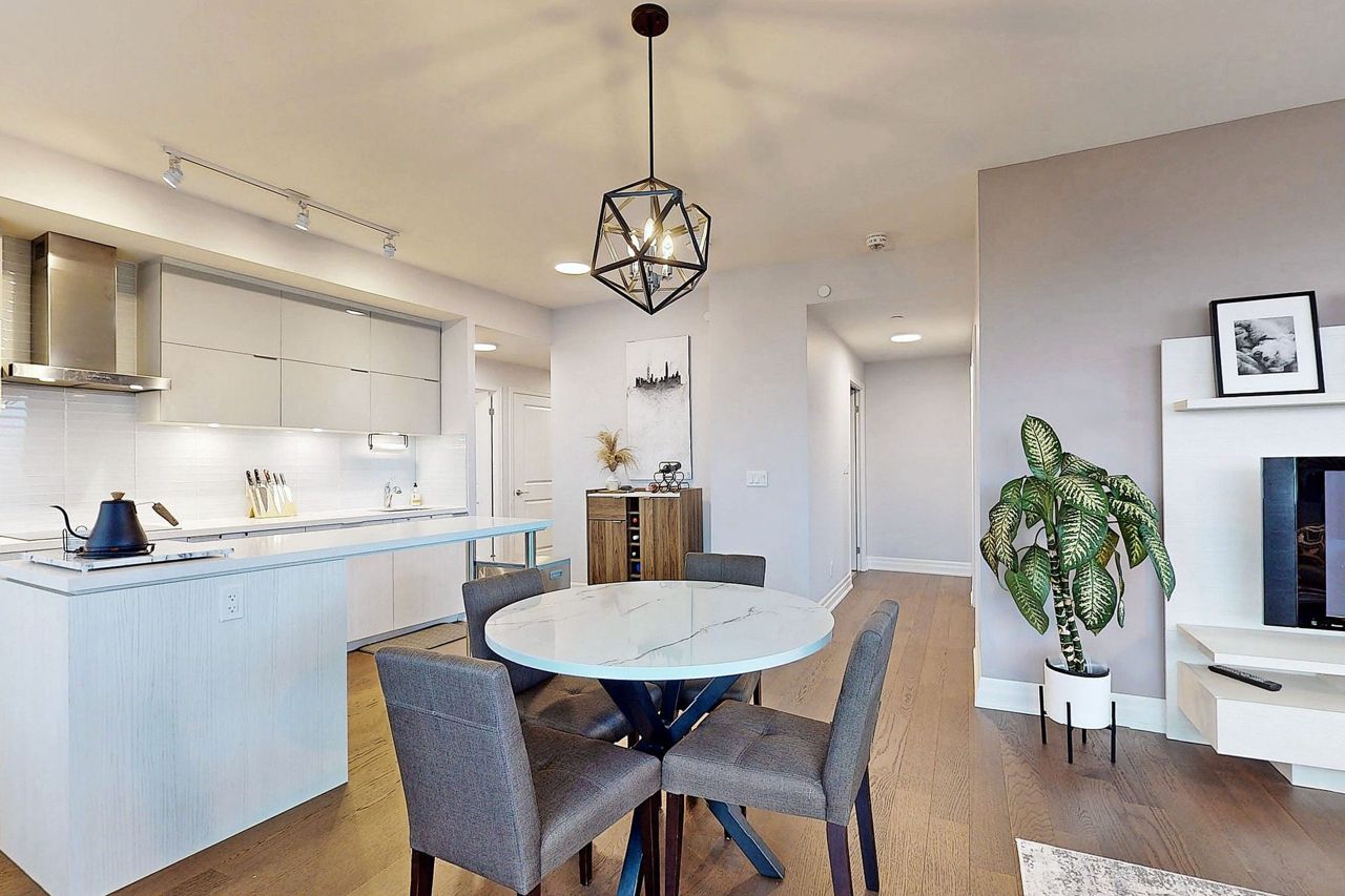 Luxury condo located in the heart of downtown Markham. Corner unit w/ lots of upgrade. Best layout with two split room plus den (can be 3br). Bright & spacious. 9’ ceiling with bright open concept. Floor To Ceiling Windows. Modern kitchen w/quartz counters, large center island & B/I appliances. Large private balcony. Well maintained. Truly move-in condition. 24 hours concierge. Great amenities. Public transit at the door steps & minutes to restaurants, retailers, cineplex, Go train, YMCA, Pan Am Ctr & York university campus. Easy access to hwy 7 & 407, 404.all existing electric light fixtures, Built-in fridge, cooktop, stainless steel oven, dishwasher, microwave & range hood, washer & dryer, all existing window coverings. One parking spot and one locker.