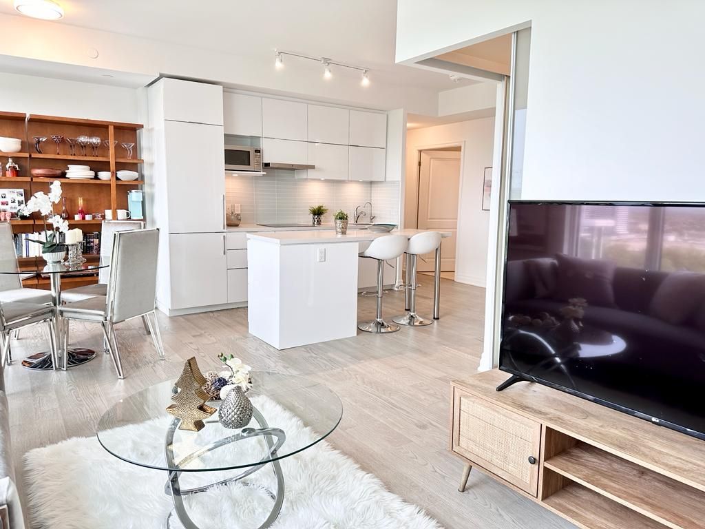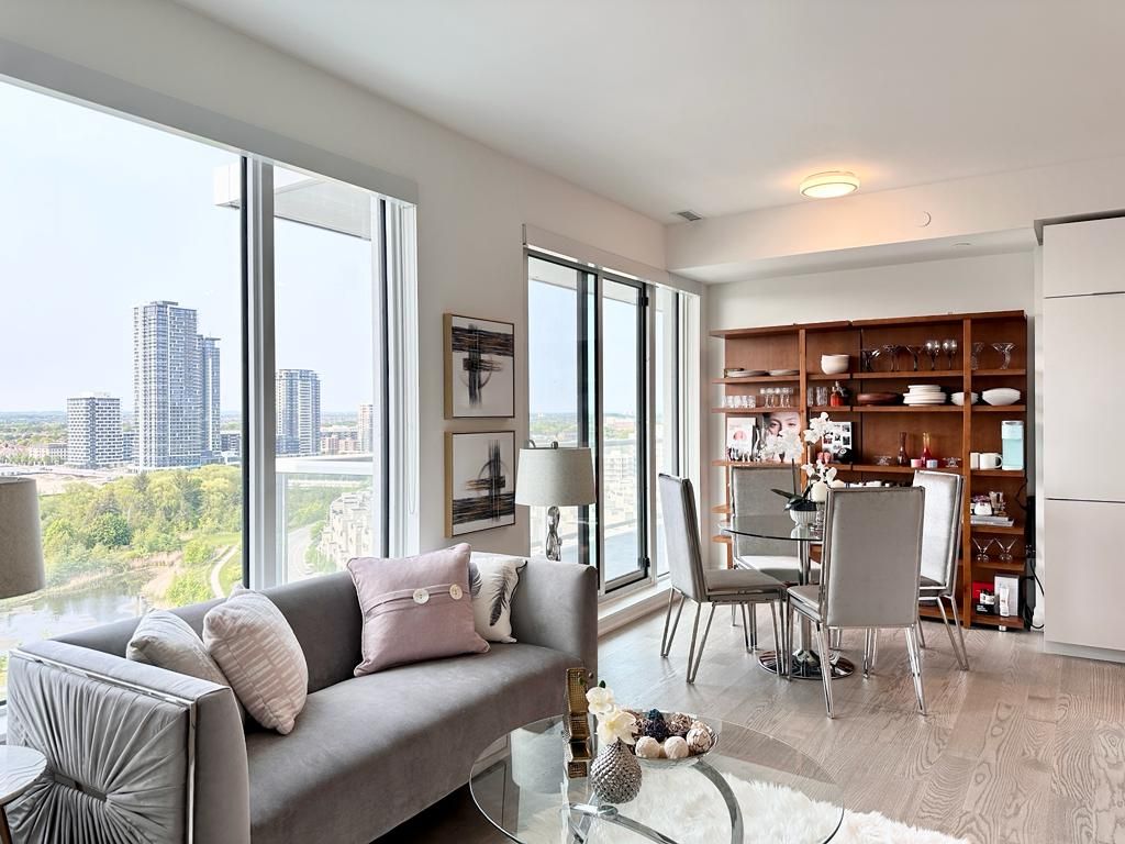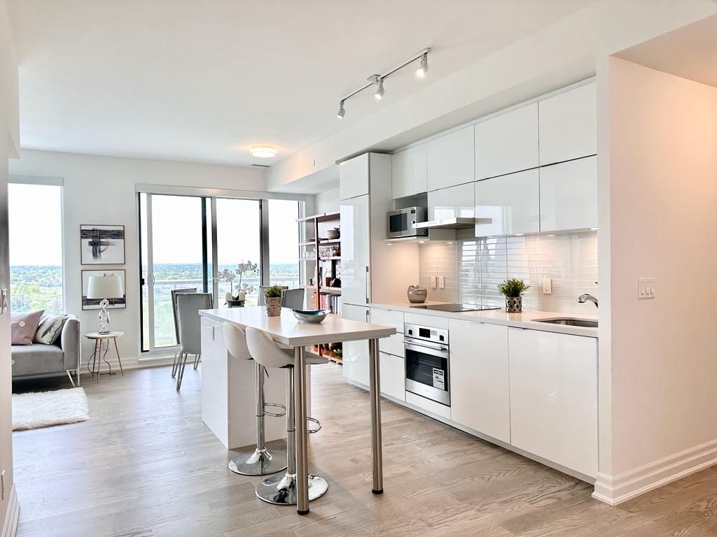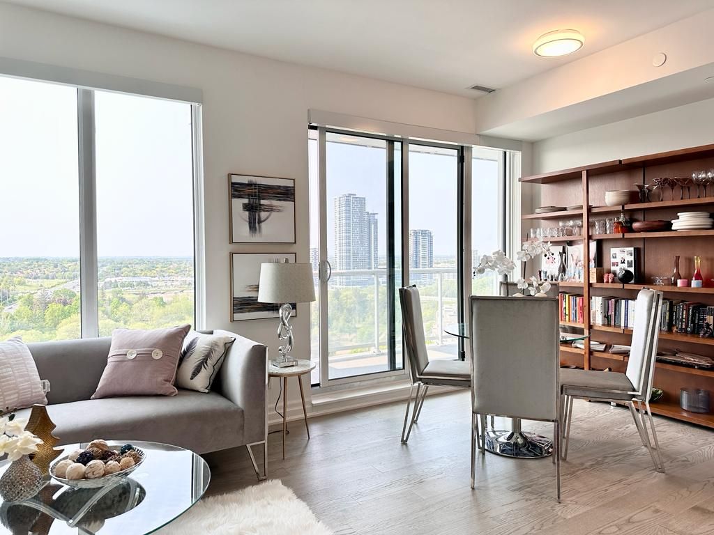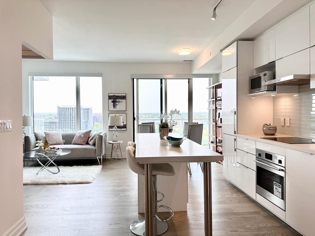 ** Luxury 2+Den & 2 Bath In The Heart Of Downtown Markham ** Fantastic Clear Corner Ravine View ** Bright Open Concept ** 9' Ceiling ** Functional Layout ** Den Has Sliding Door & Easily Converts To 3Rd Bedroom ** Smooth Ceiling ** Modern Kitchen With Quartz Countertop ** Built-In Appliances ** Centre Island ** Floor-To-Ceiling Window ** Luxury Amenities ** 24 Hrs Concierge ** Top Ranking Schools & Future York University ** Close To Unionville, Hwy 407 & 404, Go Train Viva Station At Your Doorstep **Built-In Fridge, Stove, Dishwasher, Microwave, Washer/Dryer, All Lighting Fixtures, All Window Covering. One Parking & Two Lockers Included. Buyer Has The option To Purchase Additional Parking & Locker.