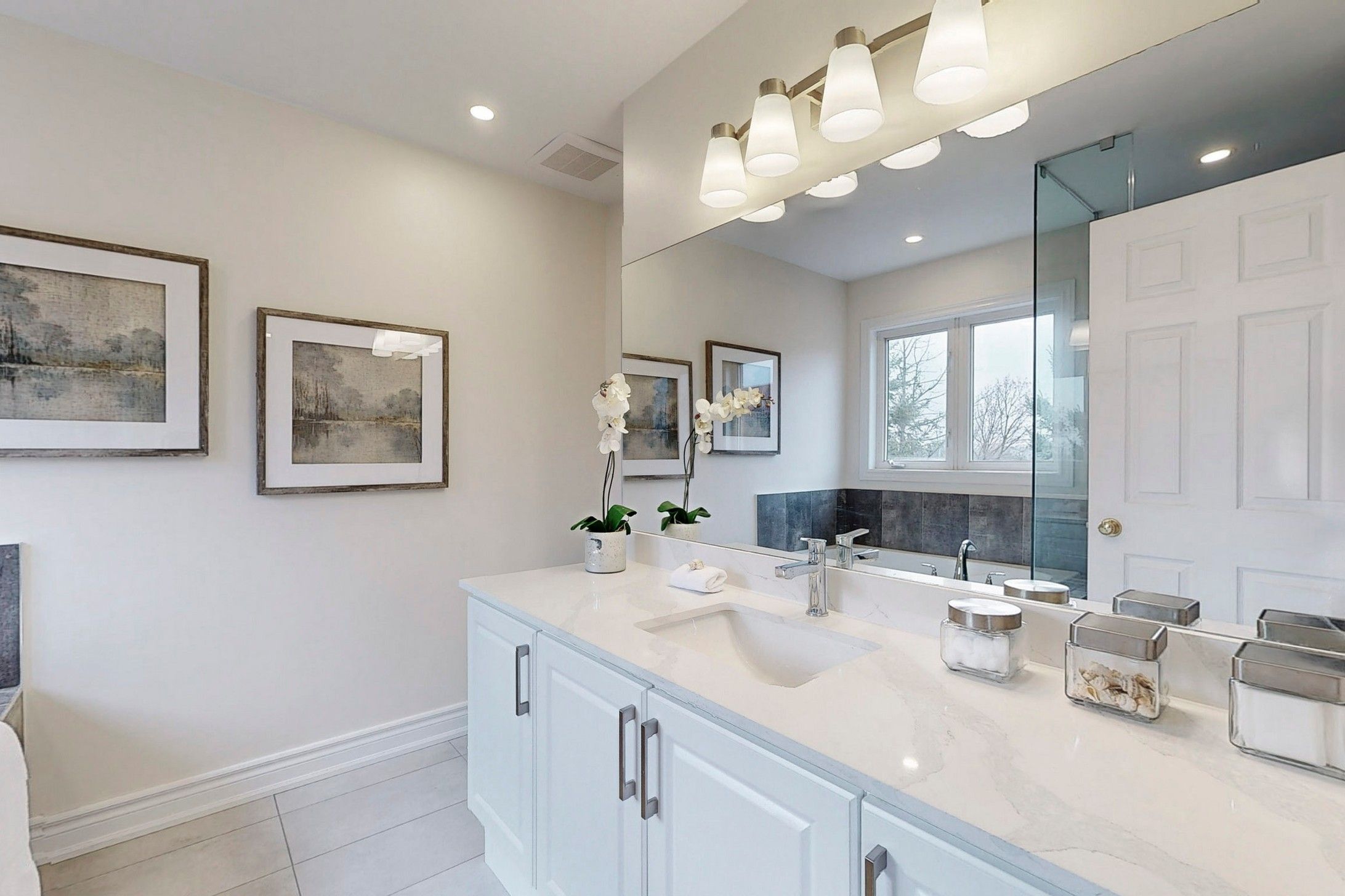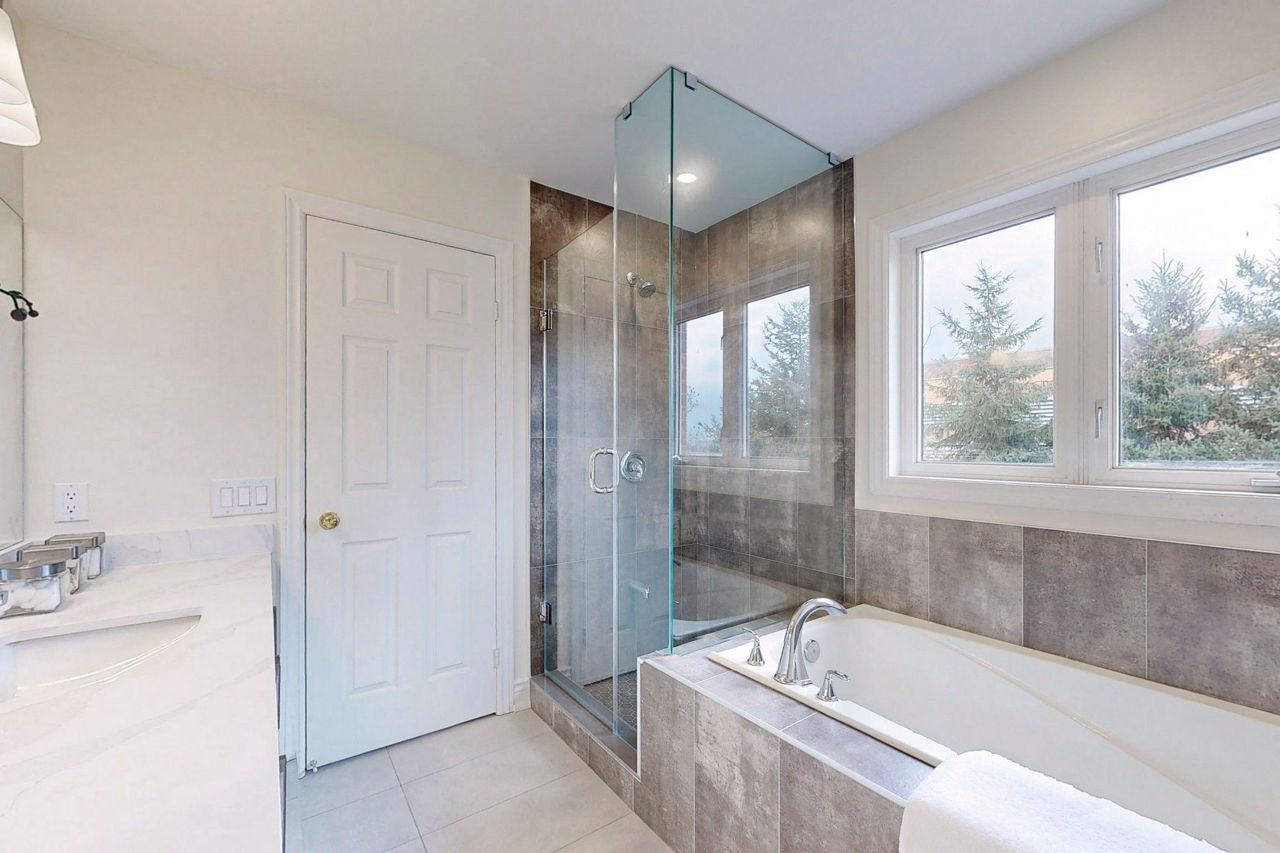 Rarely offer Move In Ready double garage 3 bedrooms Modern Trendy Bright & Spacious, with South facing backyard with open concept, Hardwood and 9 feet ceiling on main floor. recently renovated Kitchen with Brand new Appliances, Lots Of Pot Lights, Eat-In Kitchen w walkout To backyard. House has direct Access to garage, Master en-suite with Brand new reno modern Glass Shower, walk in closet. Close to supermarket, public transportation, malls, food. top ranking School: markvile SS