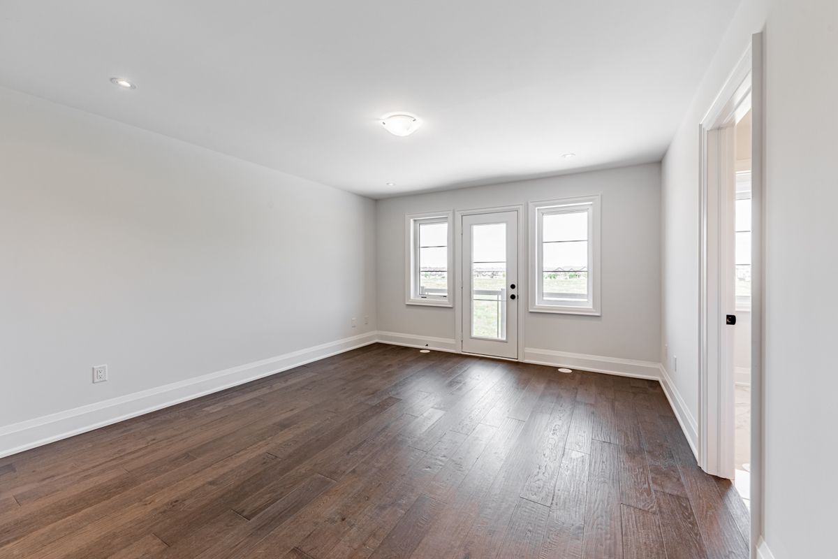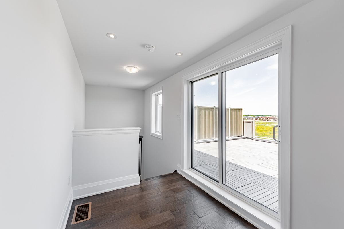 Brand new, never lived in 4 Bedroom, 2,369 sqft freehold townhouse by Ballantry Homes. 9' ceilings on ground and main floor, 8' on third floor. 6" wide premium hard flooring throughout (no carpet). Upgraded quartz countertops in kitchen and all bathrooms. Upgraded cabinetry. Double car garage. 12x24 Floor Tiles in all tiled areas. Upgraded black interior door hardware and hinges. Waterline fridge rough in. Close to 407, hospital & community centre. Tarion warranty.Humidifier & Stainless Steel hood range fan. Potlights throughout. Black Metal pickets with upgraded posts. Upgraded faucets in kitchen and all bathrooms with matching towel bars and toilet paper holders. Tile backsplash in kitchen